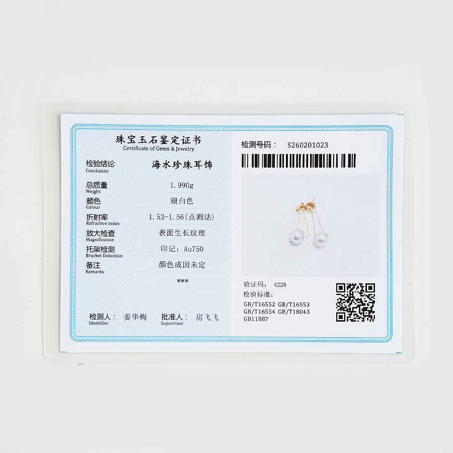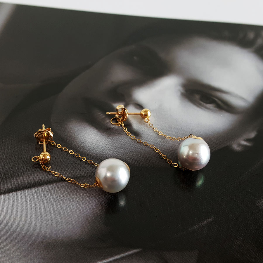 名称 | AU750黄金镶天然近圆约8.6MM真多麻海水珍珠耳坠 |