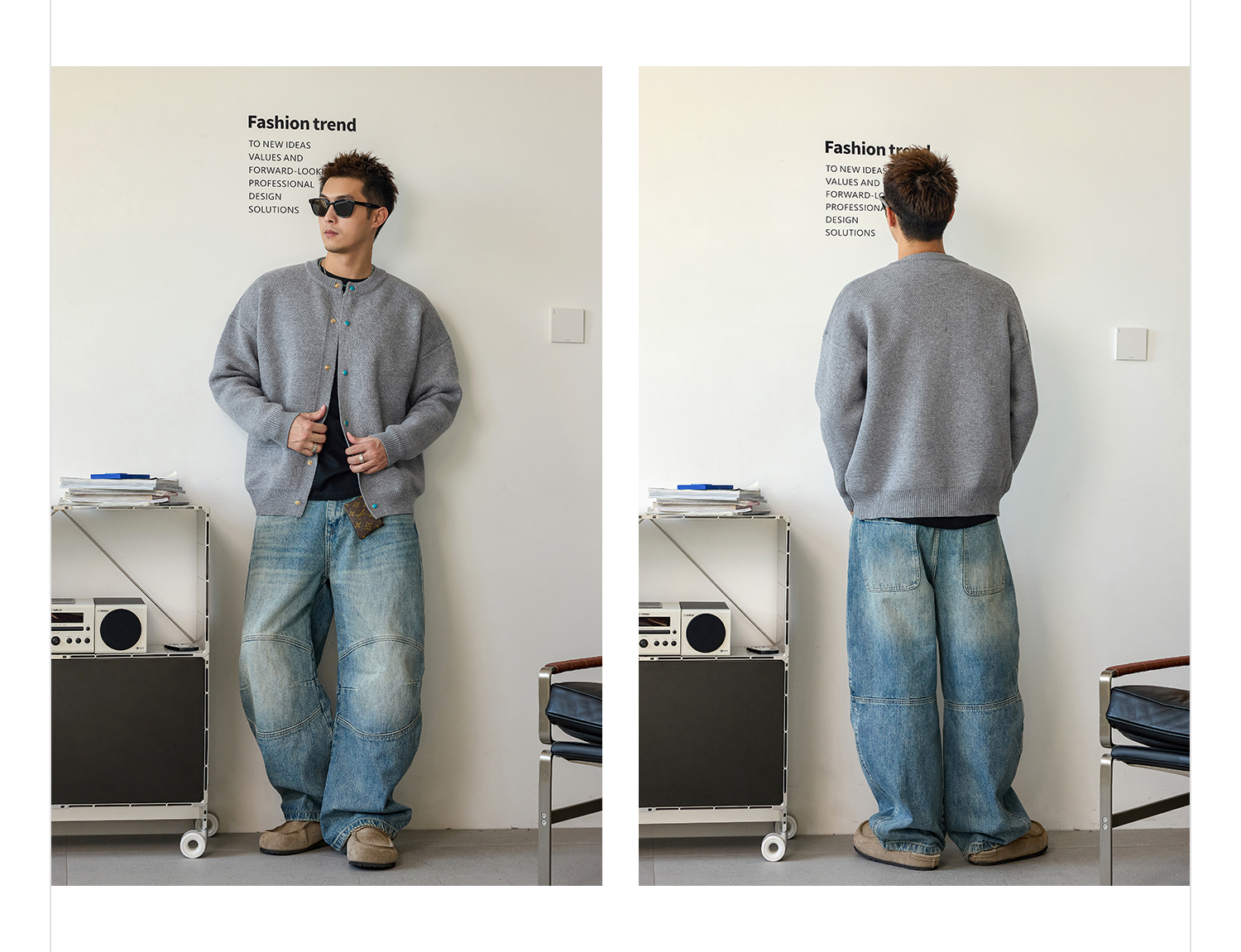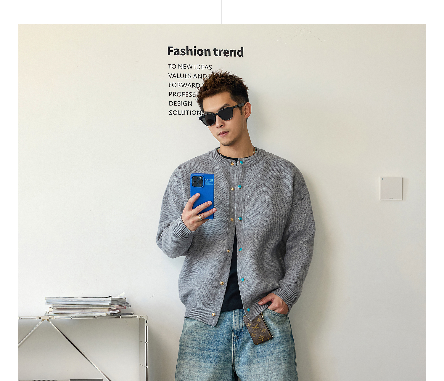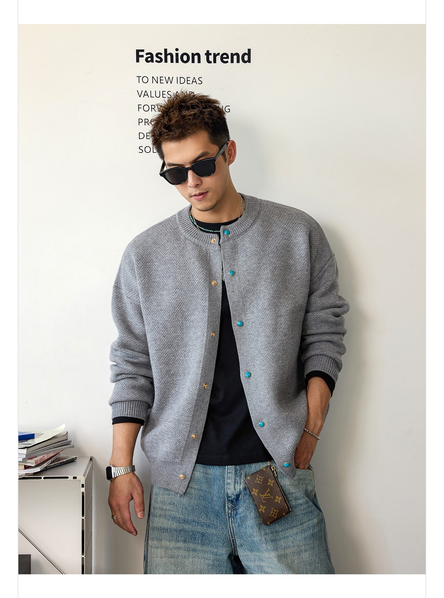 徐太浪【色彩按扣 cleanfit】灰色开衫毛衣男秋冬大码针织衫外套
