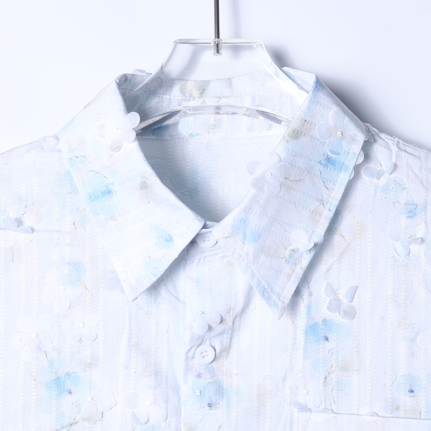 2773SDSA男士秋冬新款痞帅男装休闲长袖衬衫扎染立体花朵装饰设计百搭