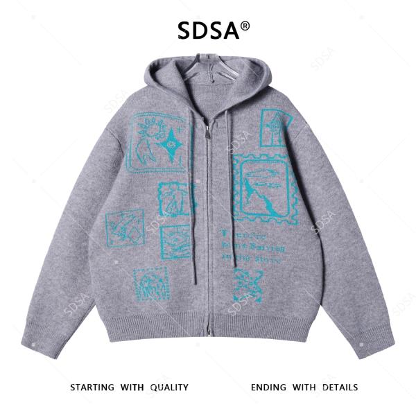 72633SDSA秋冬新款痞帅男装撞色趣味图案拉链连帽毛衣百搭开衫针织衫