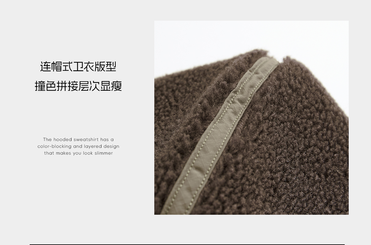 ROMI STUDIO“时尚复古”羊毛混纺梭织摇粒绒连帽卫衣 RWCAS65332