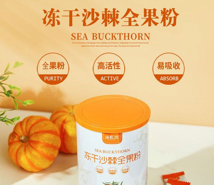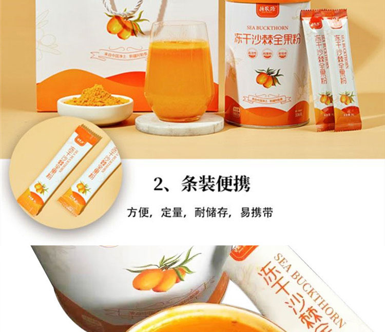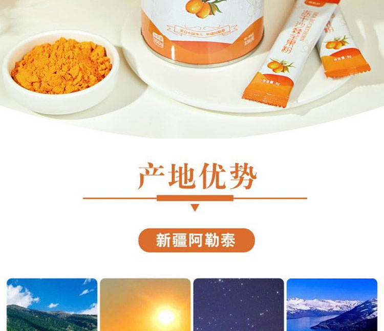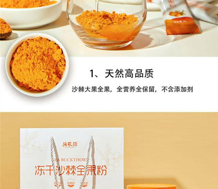 新疆阿勒泰疆农源沙棘全果冻干粉 沙棘油 大果沙棘 原浆正品 8g*20袋/罐 AWJM