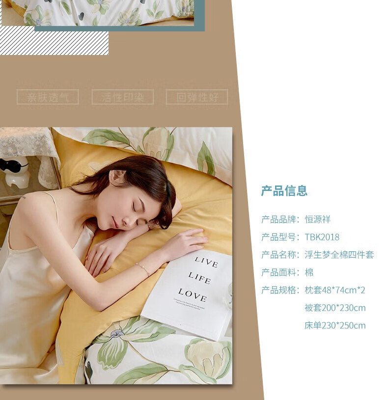 恒源祥(HYX)礼业TBK2018浮生梦全棉四件套 浮生梦