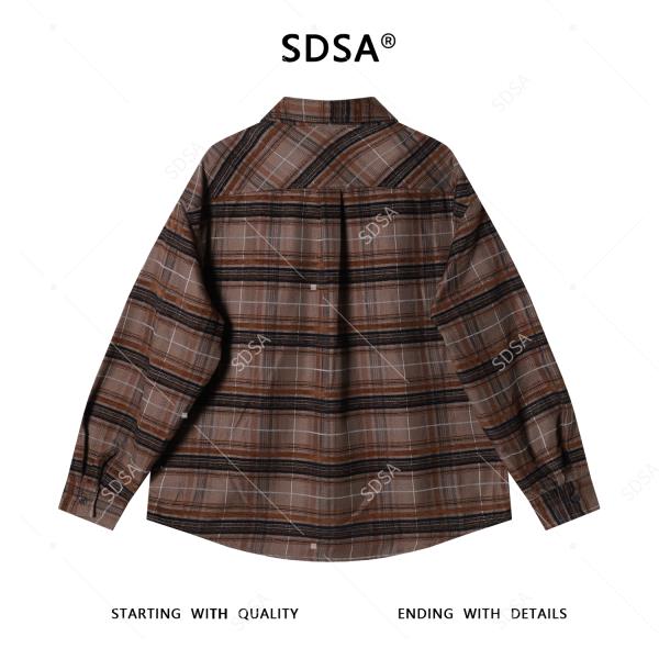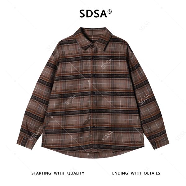 6503SDSA男士秋冬新款痞帅男装美式复古撞色格纹翻领长袖T恤时尚衬衣