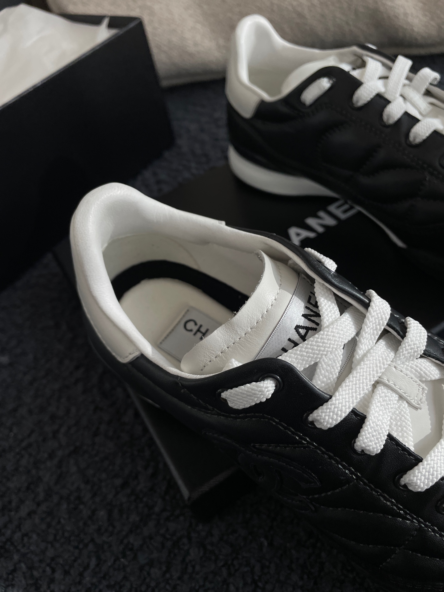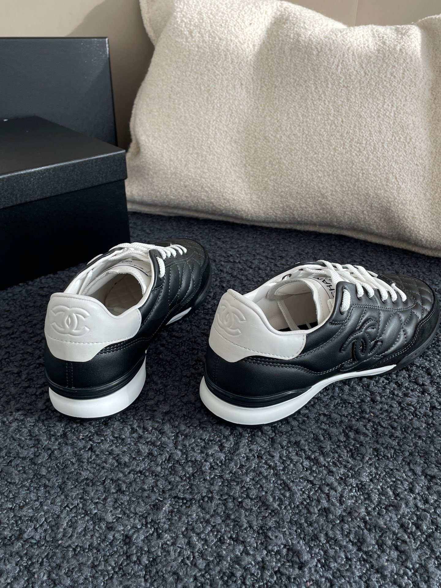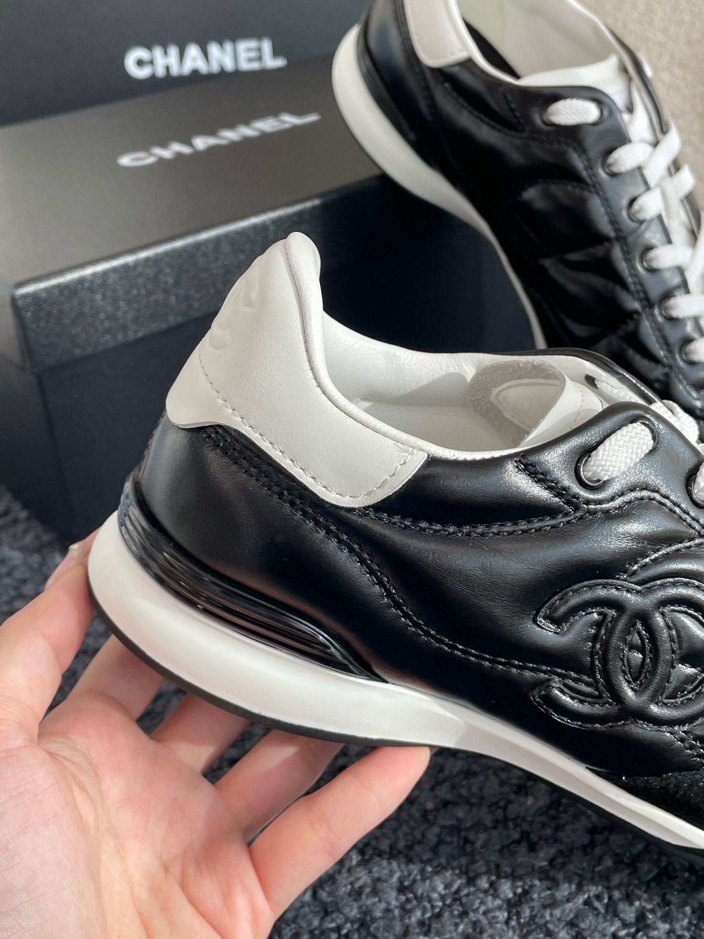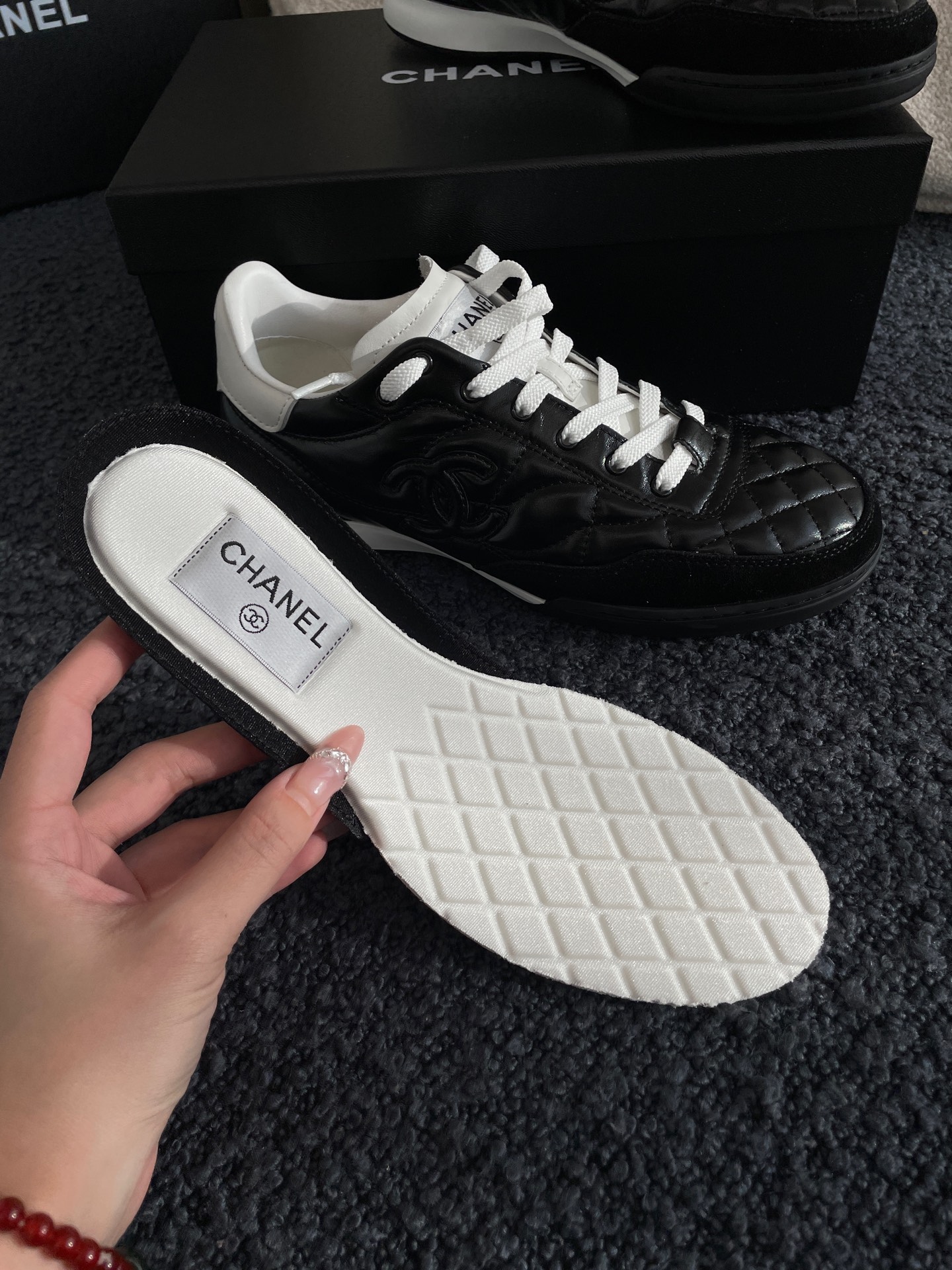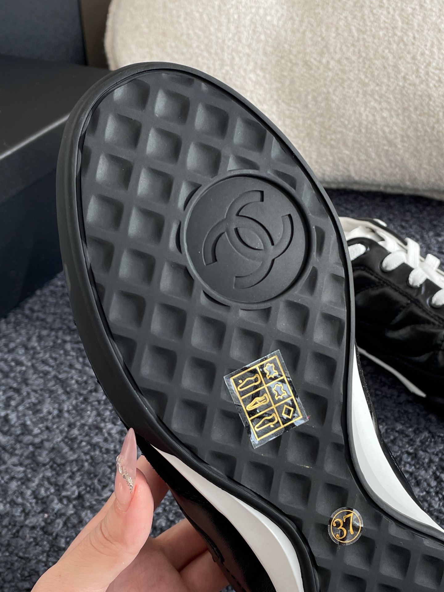搭配小香经典的运动鞋垫,前脚掌是菱格纹路,加强摩擦力按摩防滑作用,后脚跟有小香的logo标,⚠️注意脚跟位置周边一圈黑色并不是平面拼接的,凸起于鞋垫与鞋子内侧连接防磨脚穿着更舒适!