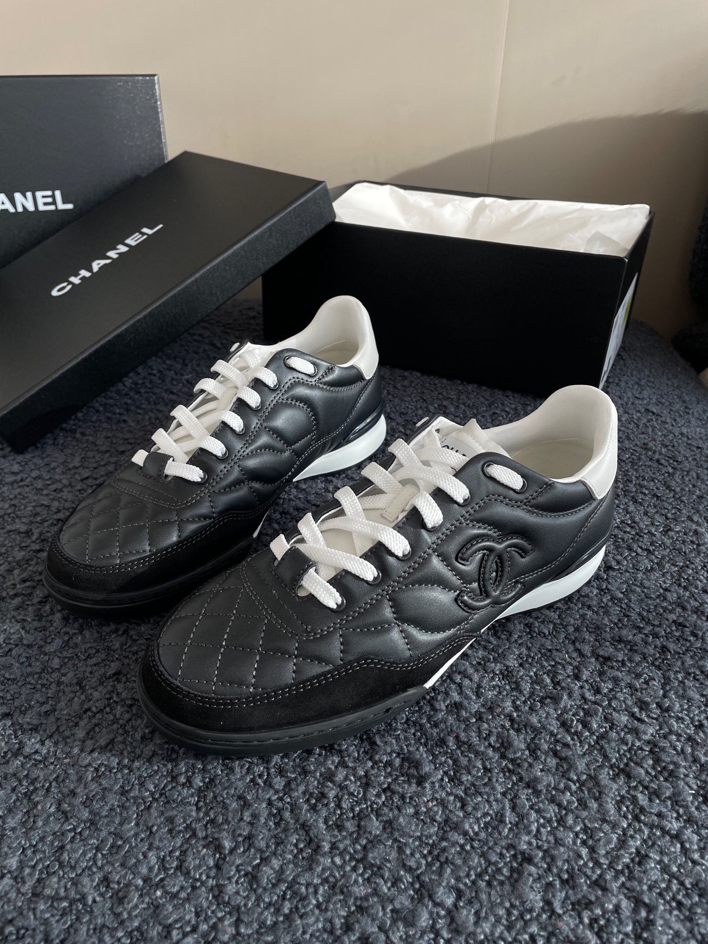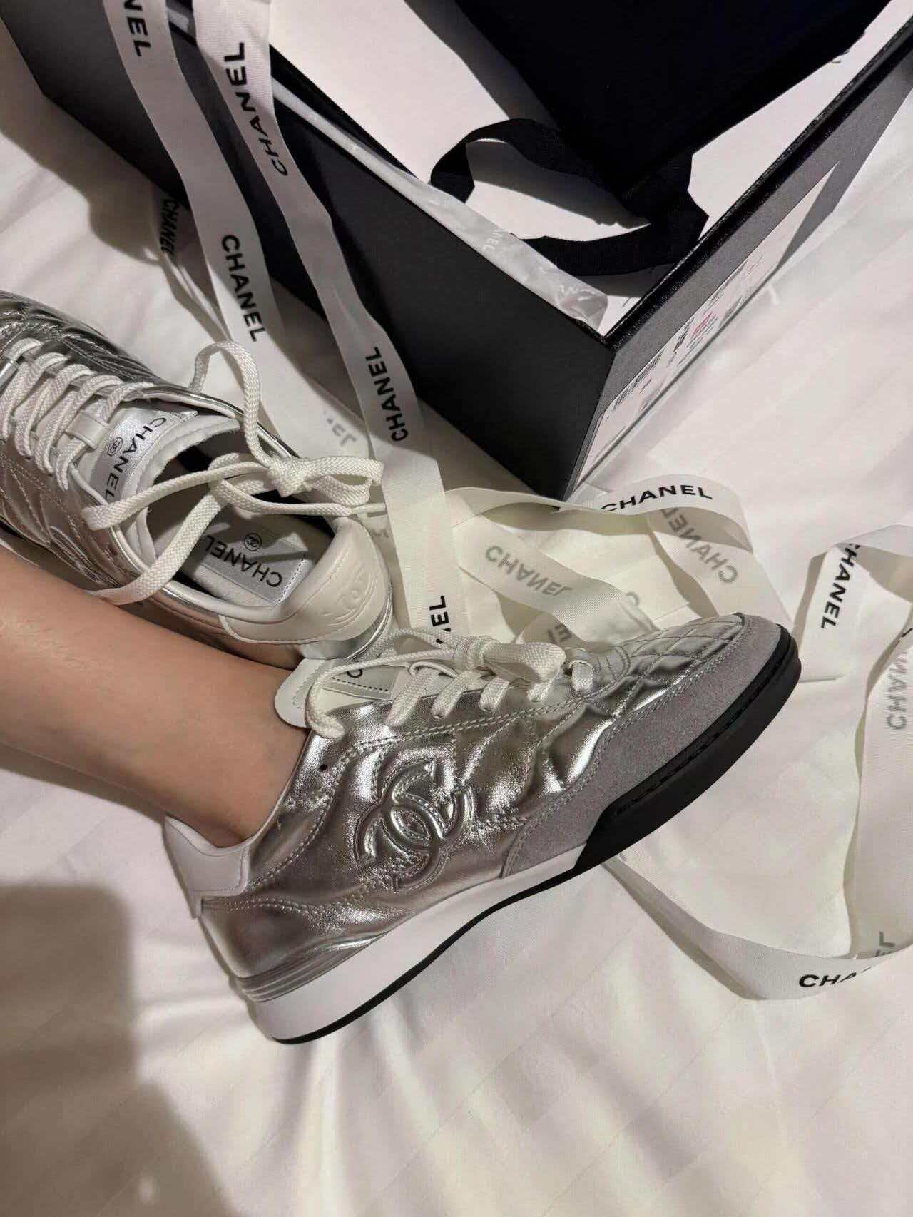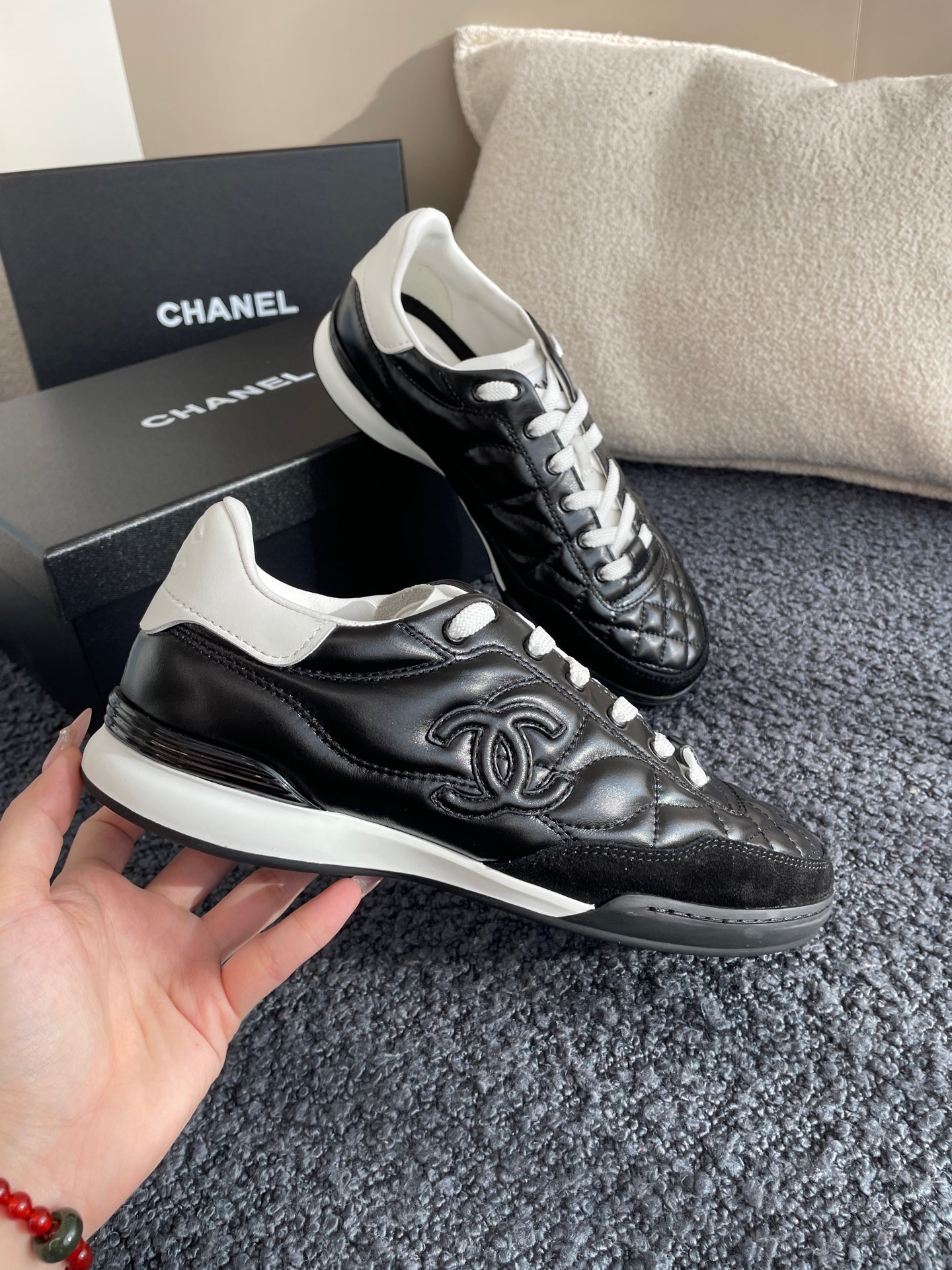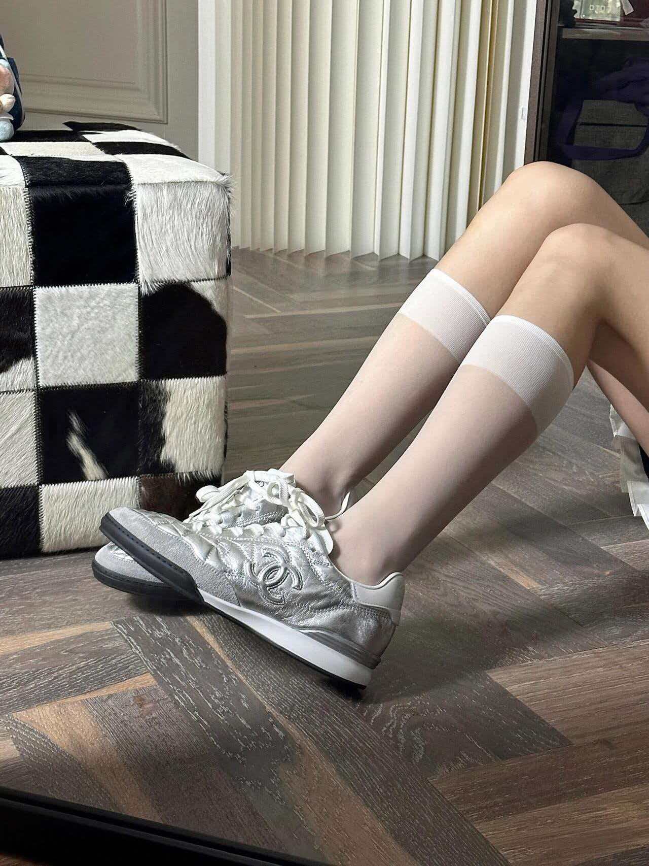 搭配小香经典的运动鞋垫,前脚掌是菱格纹路,加强摩擦力按摩防滑作用,后脚跟有小香的logo标,⚠️注意脚跟位置周边一圈黑色并不是平面拼接的,凸起于鞋垫与鞋子内侧连接防磨脚穿着更舒适!