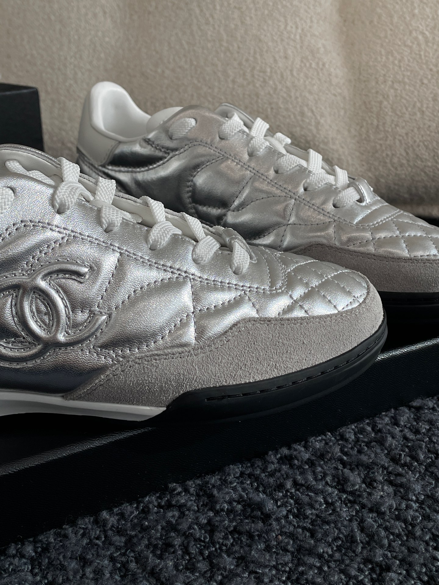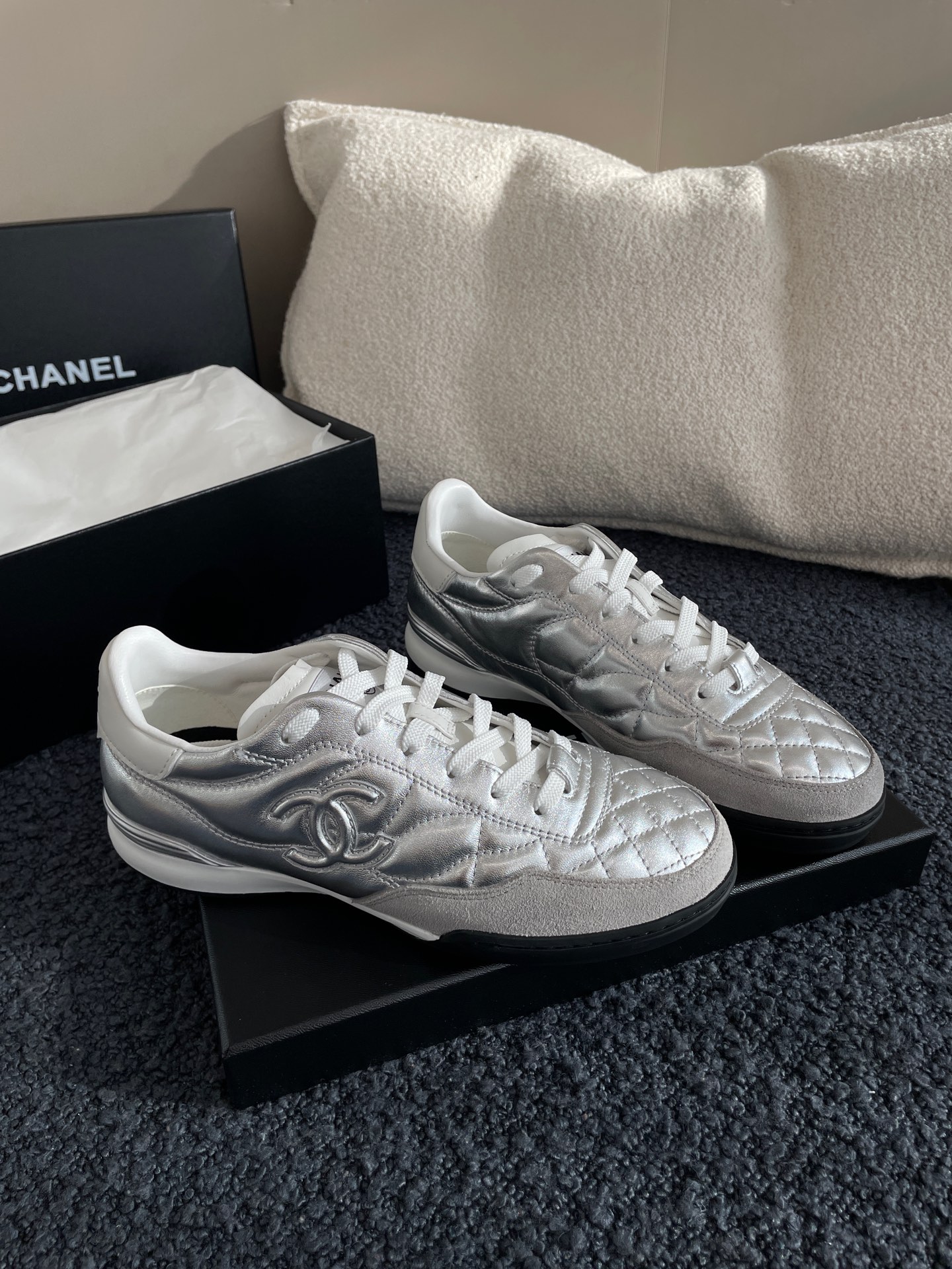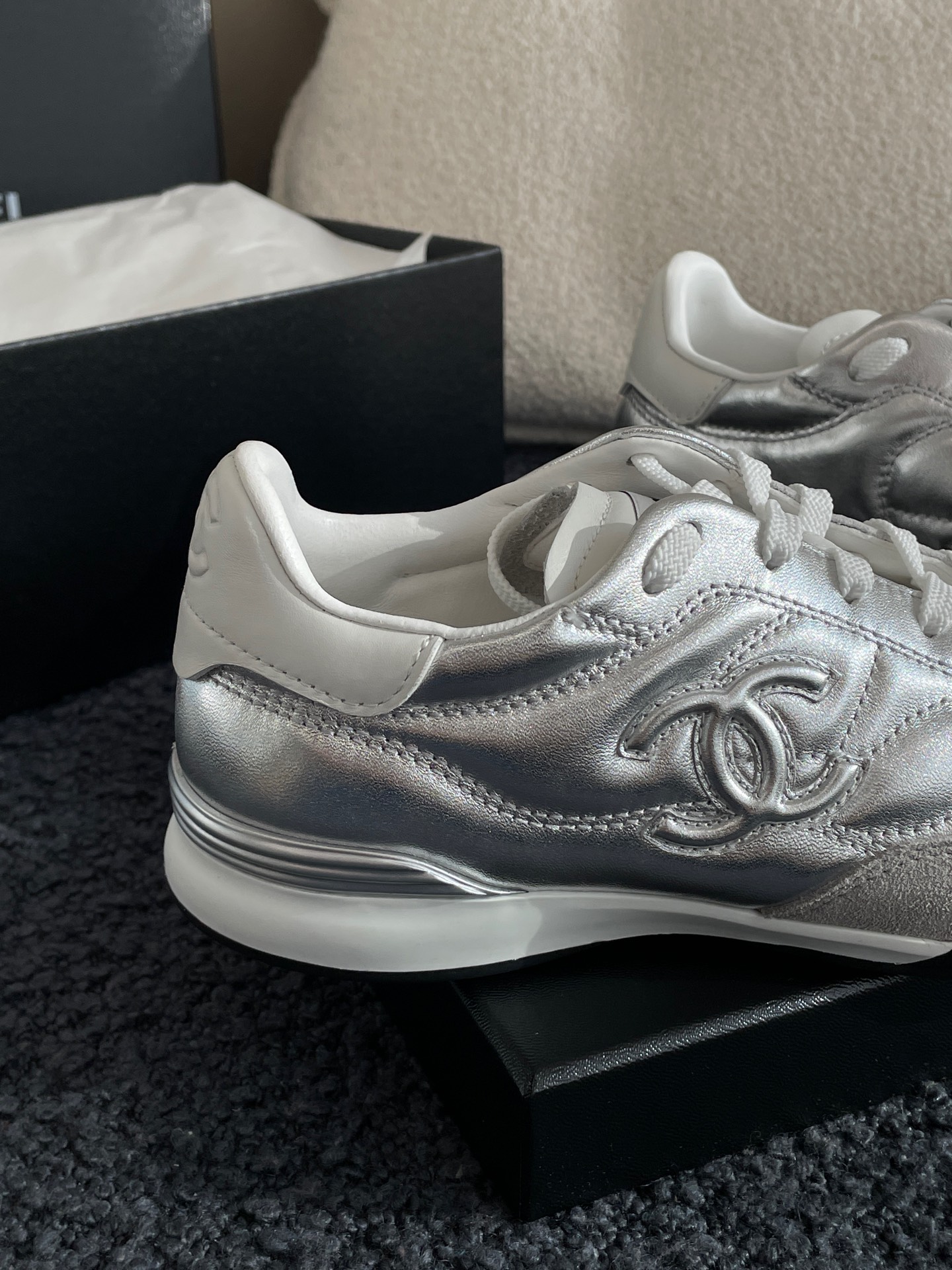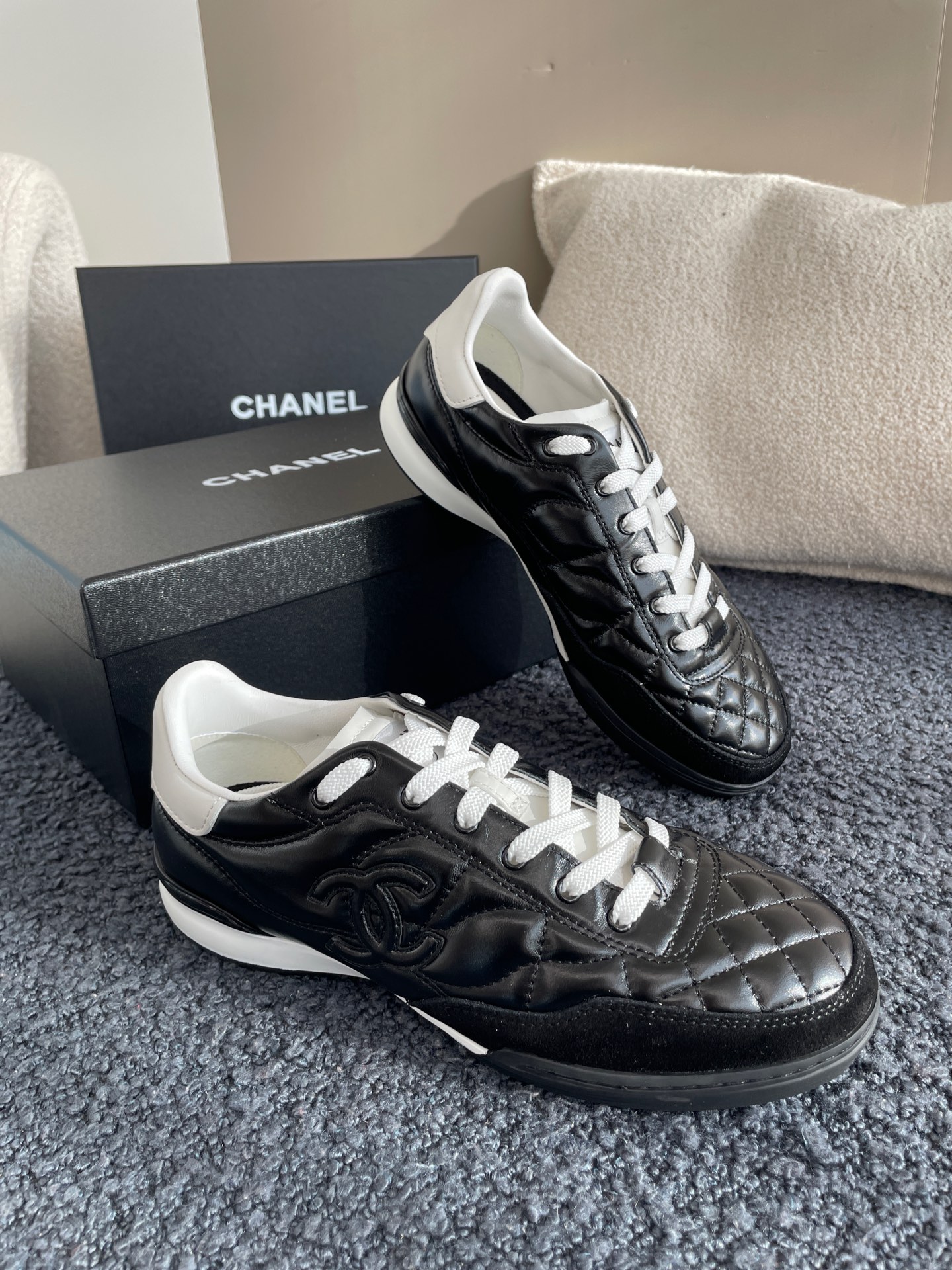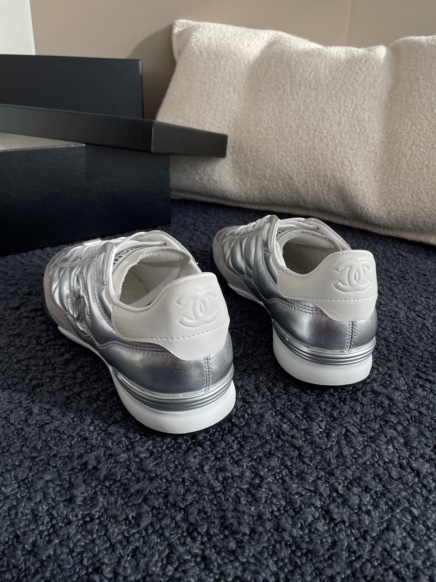 搭配小香经典的运动鞋垫,前脚掌是菱格纹路,加强摩擦力按摩防滑作用,后脚跟有小香的logo标,⚠️注意脚跟位置周边一圈黑色并不是平面拼接的,凸起于鞋垫与鞋子内侧连接防磨脚穿着更舒适!