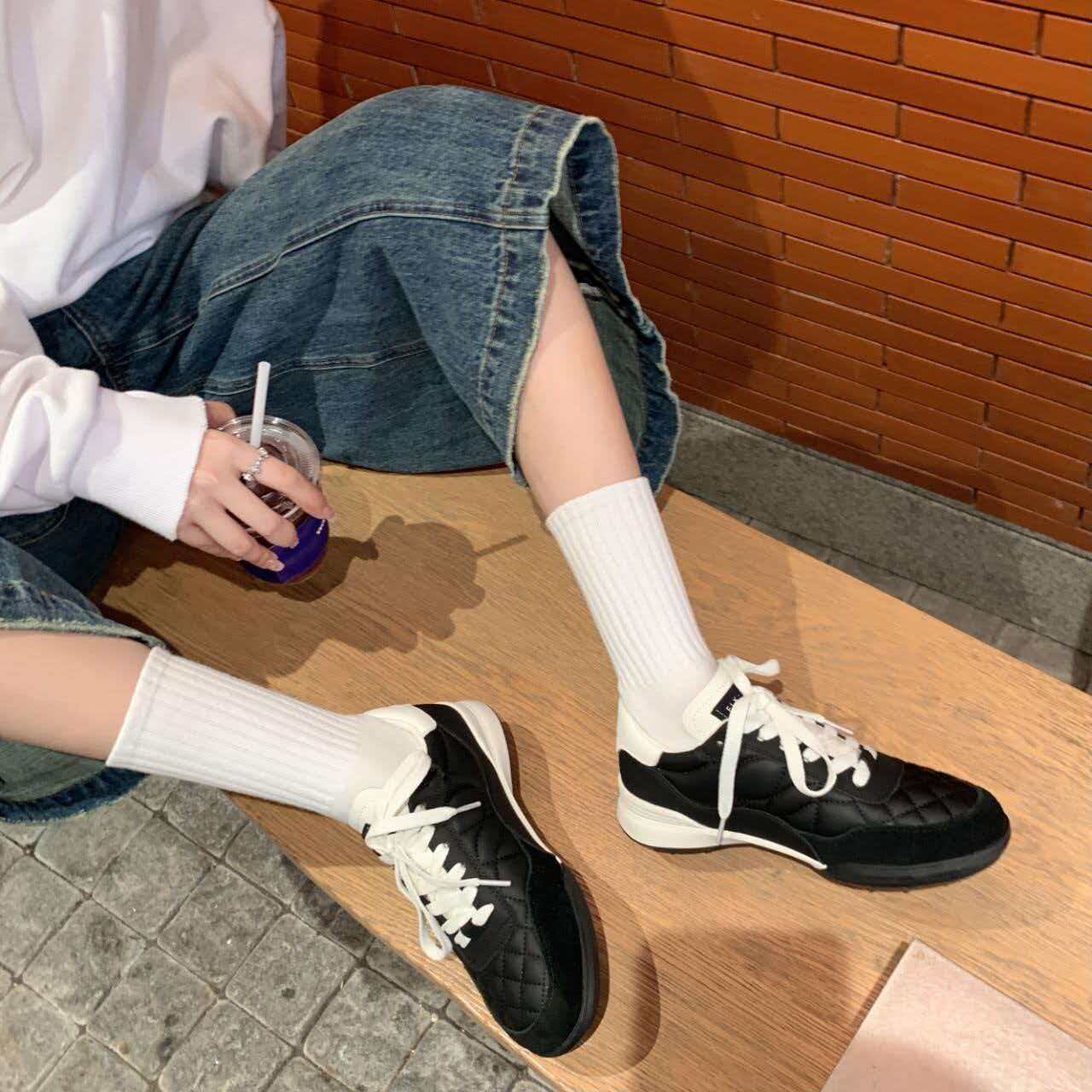💃优雅从不缺席,经典永远流传。小香圆头系带平底德训鞋带你继续前往时尚