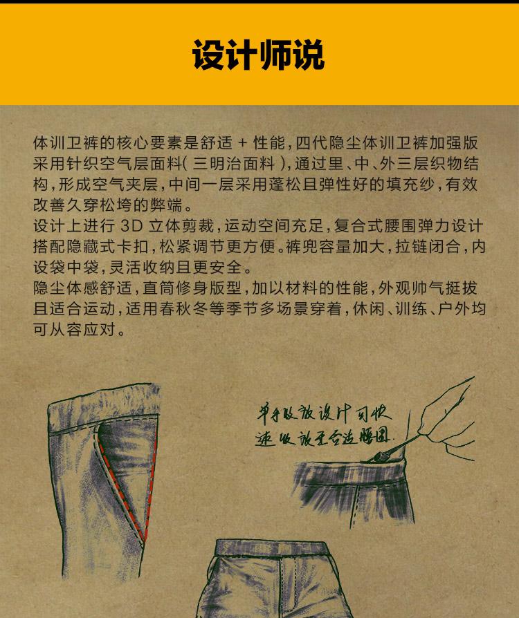 直筒加强版四代隐尘体训卫裤加强版透气直筒男舒适休闲百搭裤户外时尚