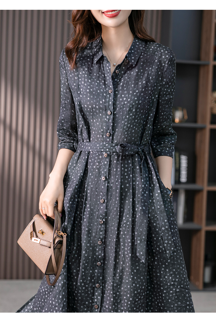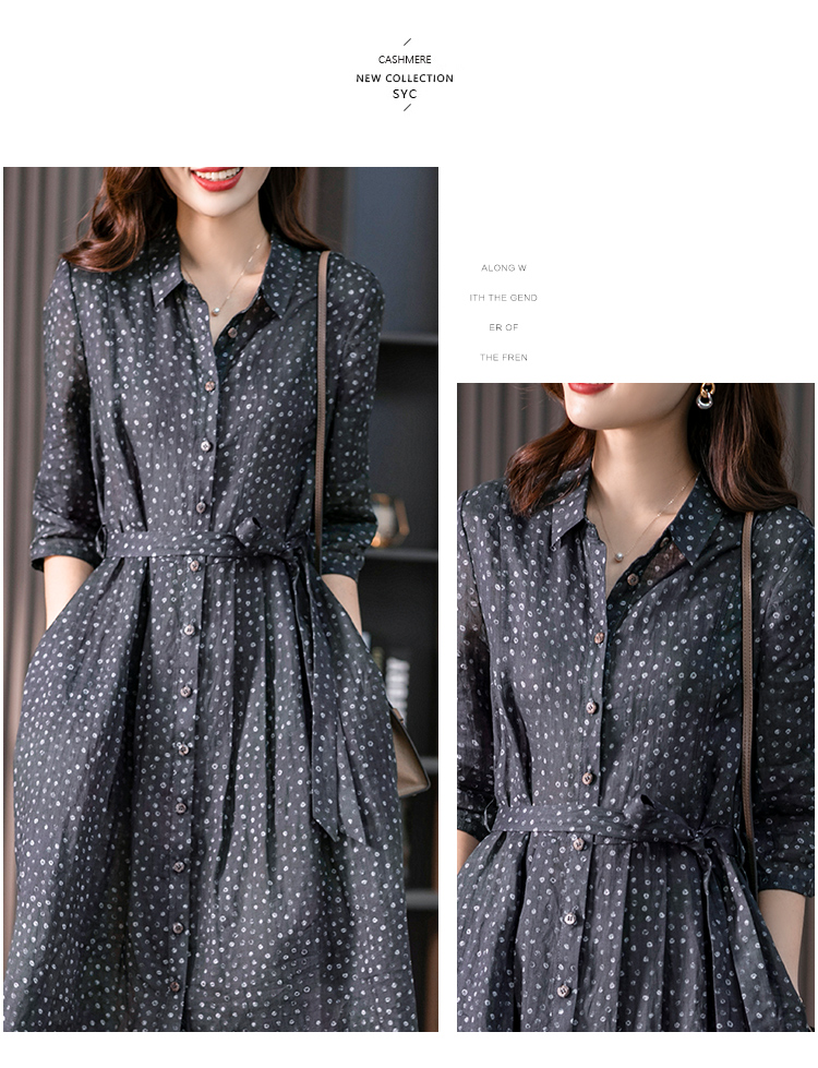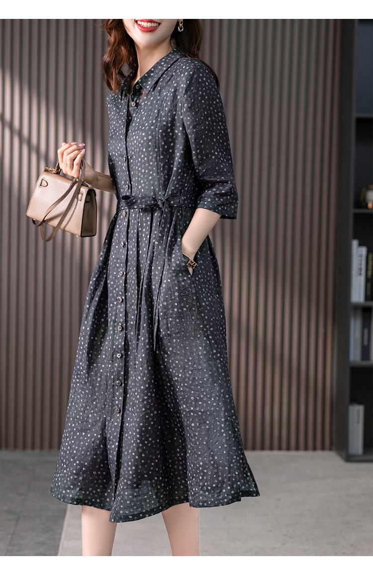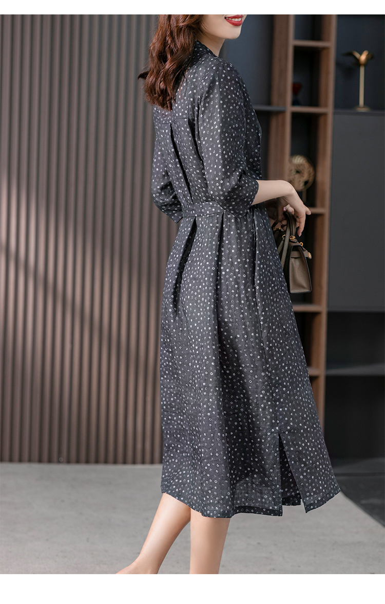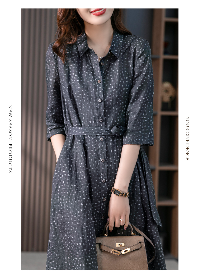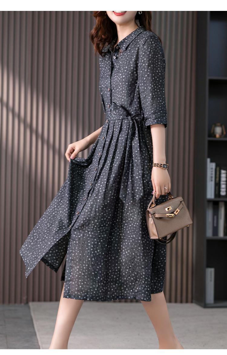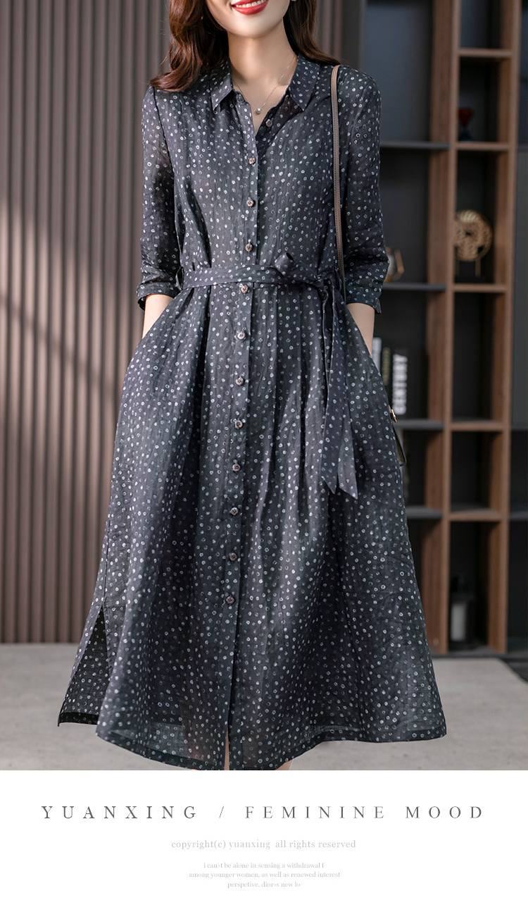 87030原形法式衬衫裙女中长款苎麻连衣裙高端2024春季新款韩版碎花裙子