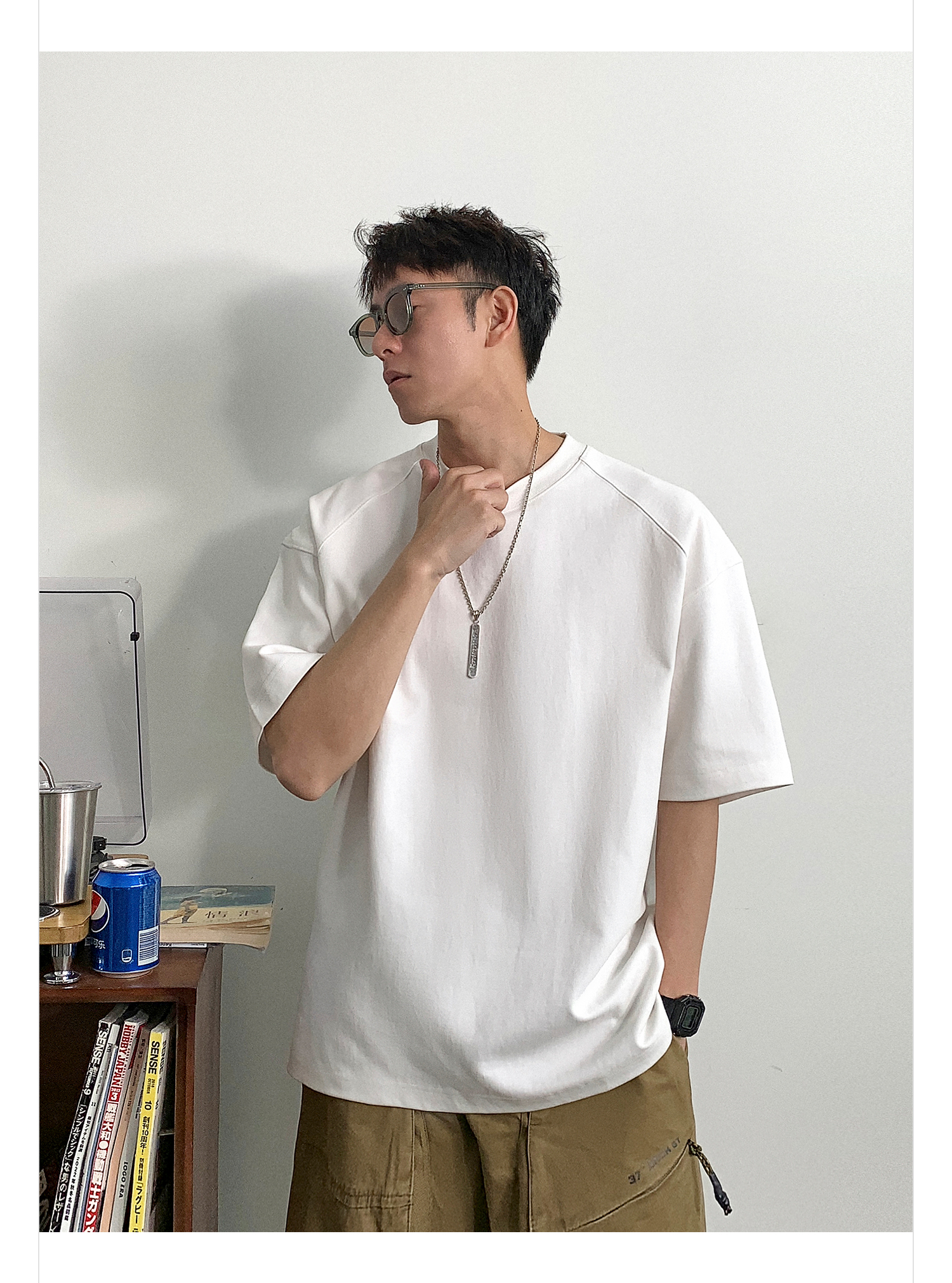 徐太浪夏季新款拼接重磅短袖T恤男韩版纯色青年休闲半袖打底衫潮
