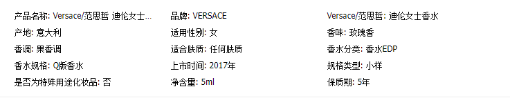 【保税仓】Versace范思哲迪伦女士浓香水edp5ml无喷头