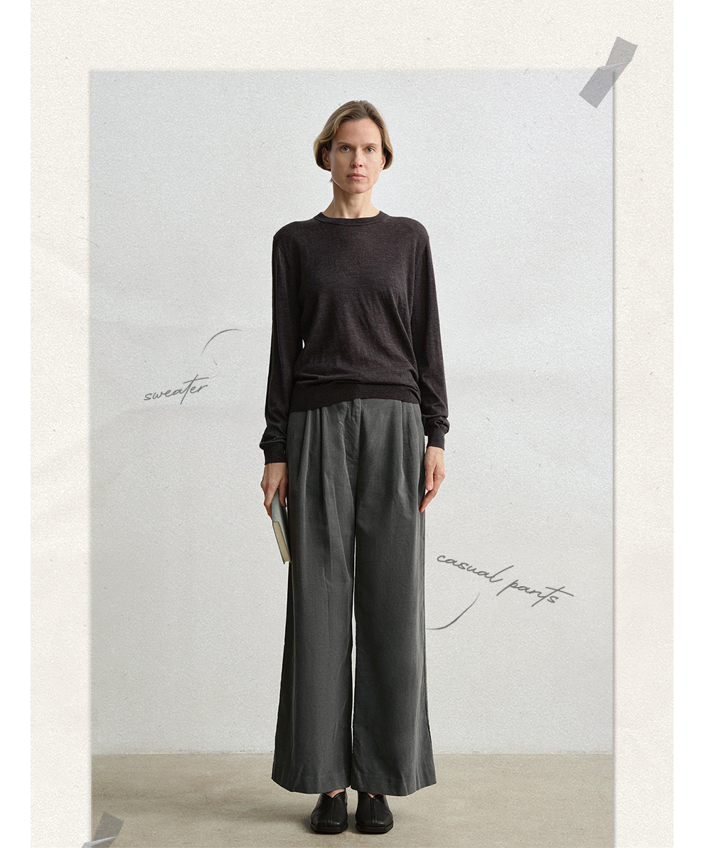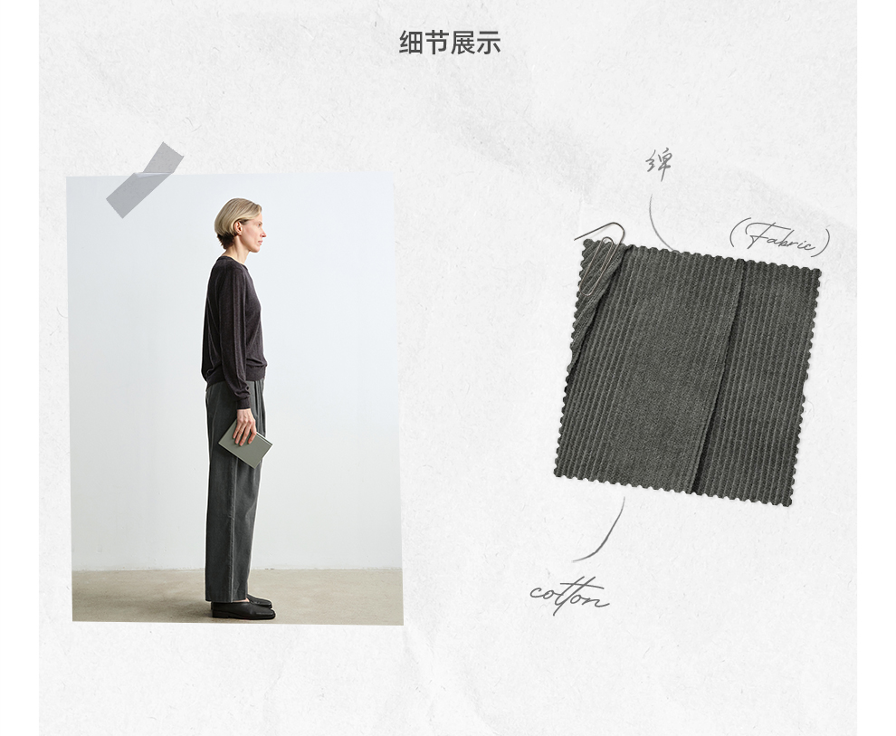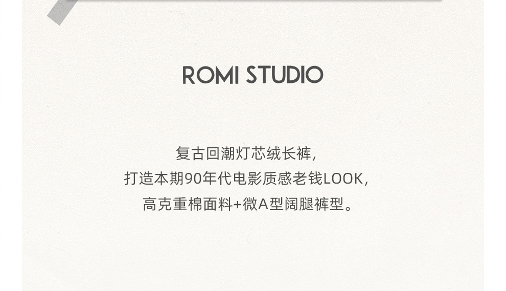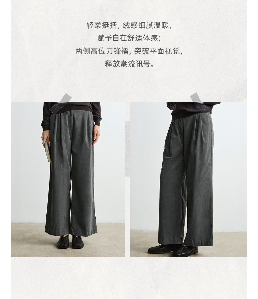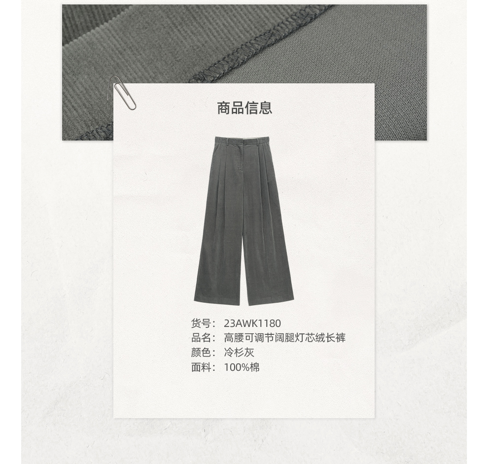 ROMI STUDIO“环保系列”100%棉高腰可调节阔腿灯芯绒长裤23AWK1180