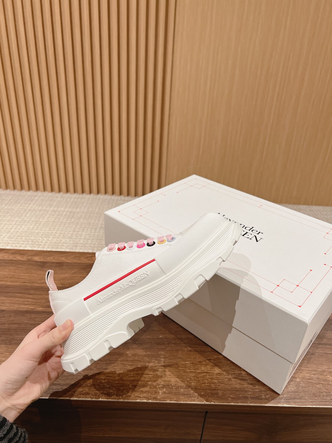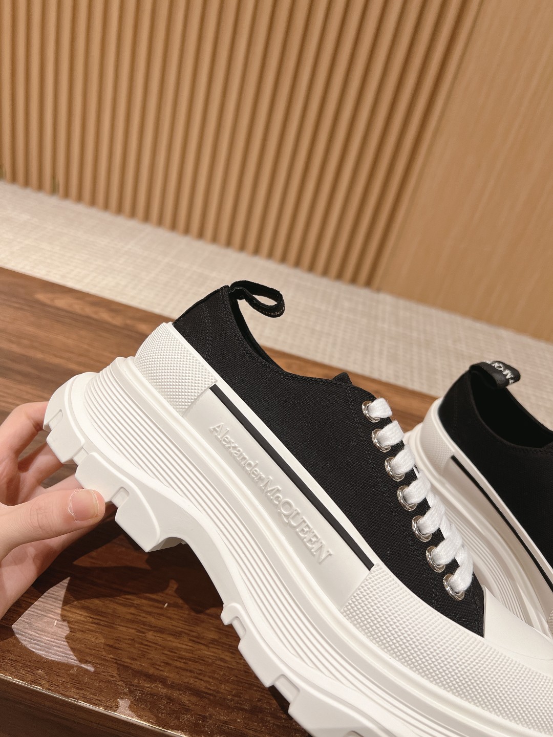 𝐀𝐥𝐞𝐱𝐚𝐧𝐝𝐞𝐫 𝐌𝐜𝐐𝐔𝐄𝐄𝐍#亚历山麦昆#帆布鞋 情侣款‼️ 终极版本 随意PK柜货 麦昆这鞋款一出来就爆了 要知道麦昆出这多款式 真正销量能够超越小白鞋的就这款鞋子 可见又一款经典“金典”货出现 而官家的一而再三的改版 最终确定版 只有我们才有哦 大底采用的是双层tpu橡胶组合大底 市面上的大底重量都比较重 是因为它们都是一体大底 二双层大底组合 相对于会轻很多 脚感更加舒服 鞋面布料 这种都是山冈定制布料超级有质感 原盒包装 哪怕里面的一个干燥剂都是原厂订制 材质:山冈布鞋面 内里小羊皮+小羊皮垫脚 双层tpu大底