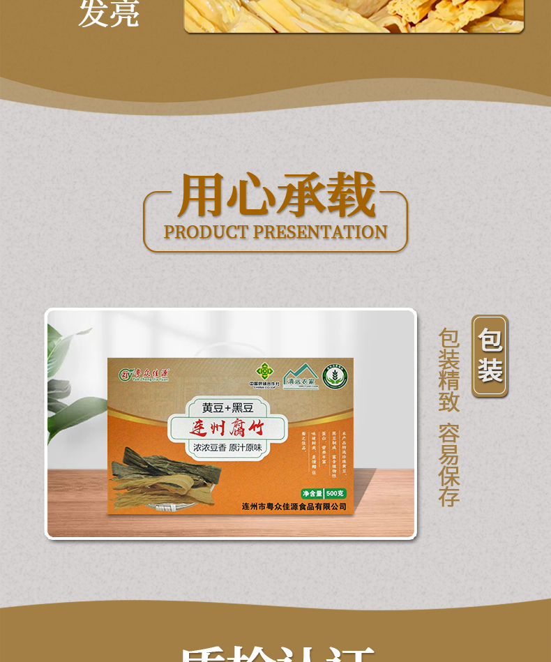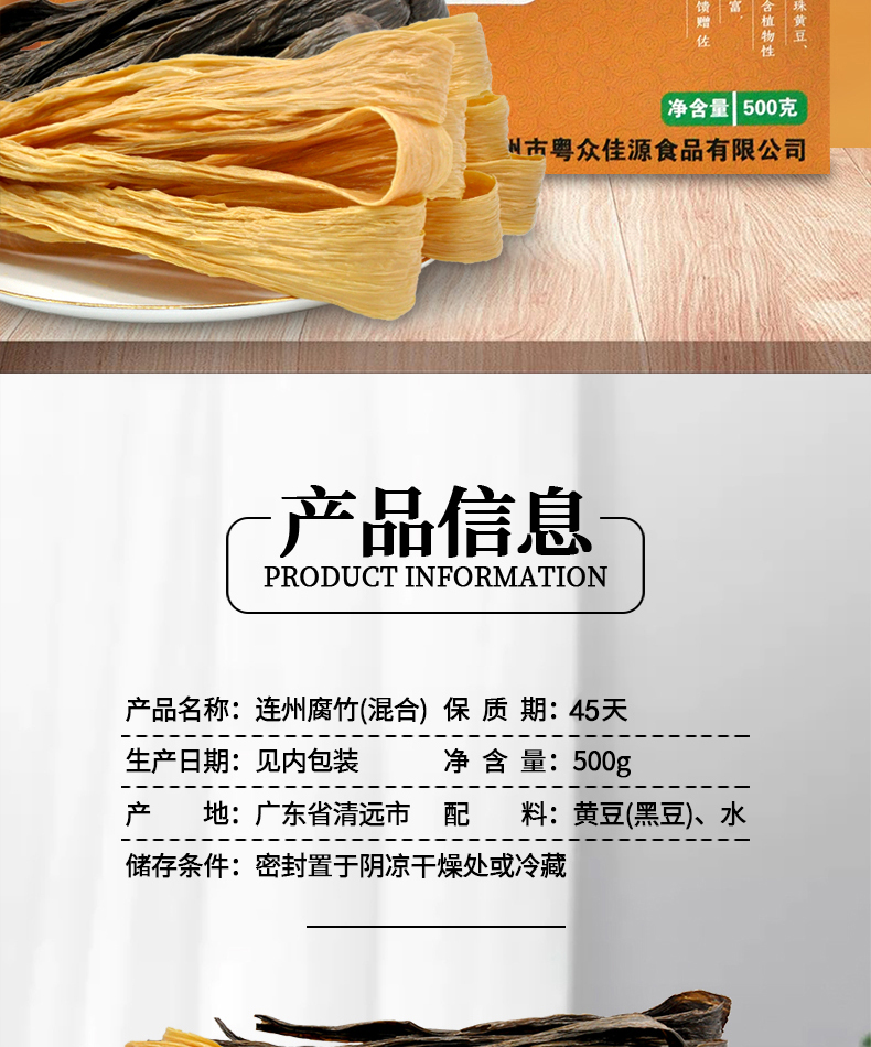 广东清远连州市粤众佳源黑黄豆混合腐竹礼盒 500g/盒