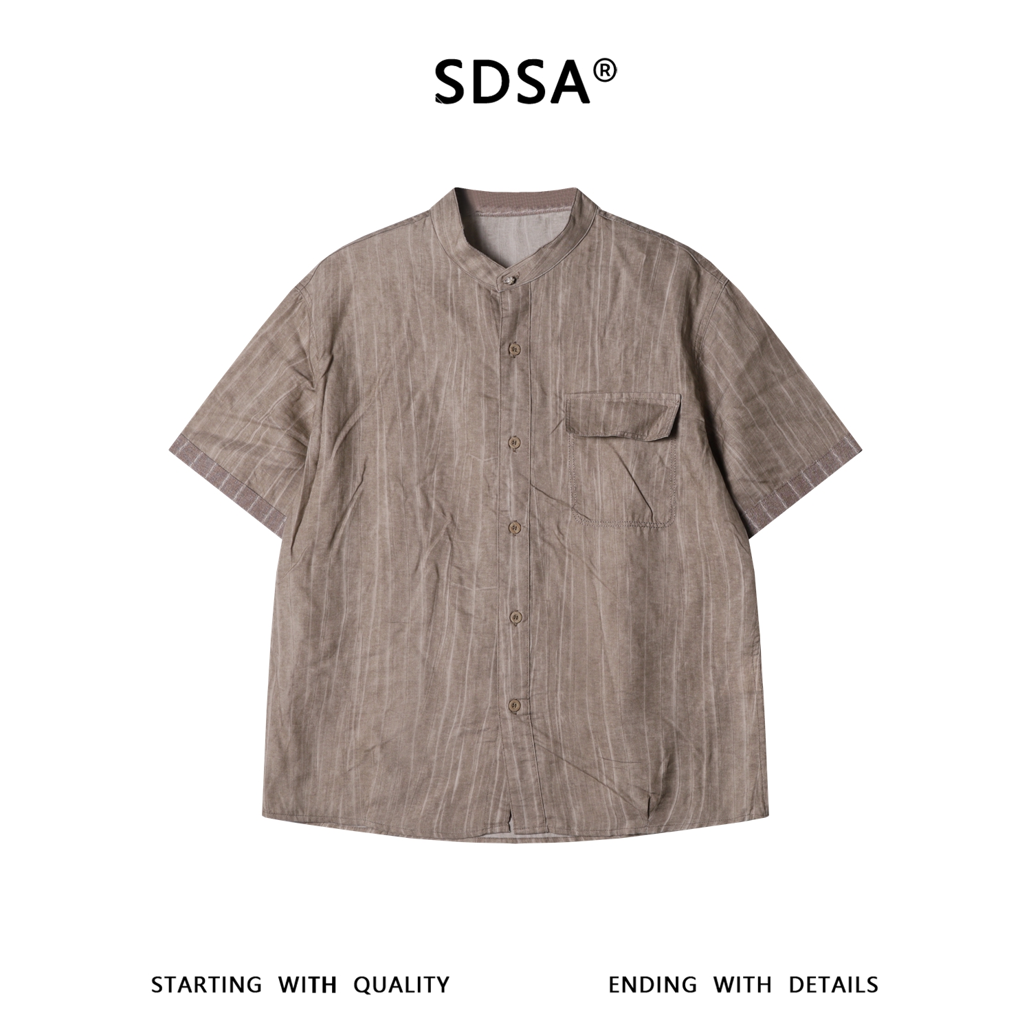 KDK-616SDSA男装2026新款高贵轻奢简约复古竖纹立领短袖衬衫百搭时尚上衣