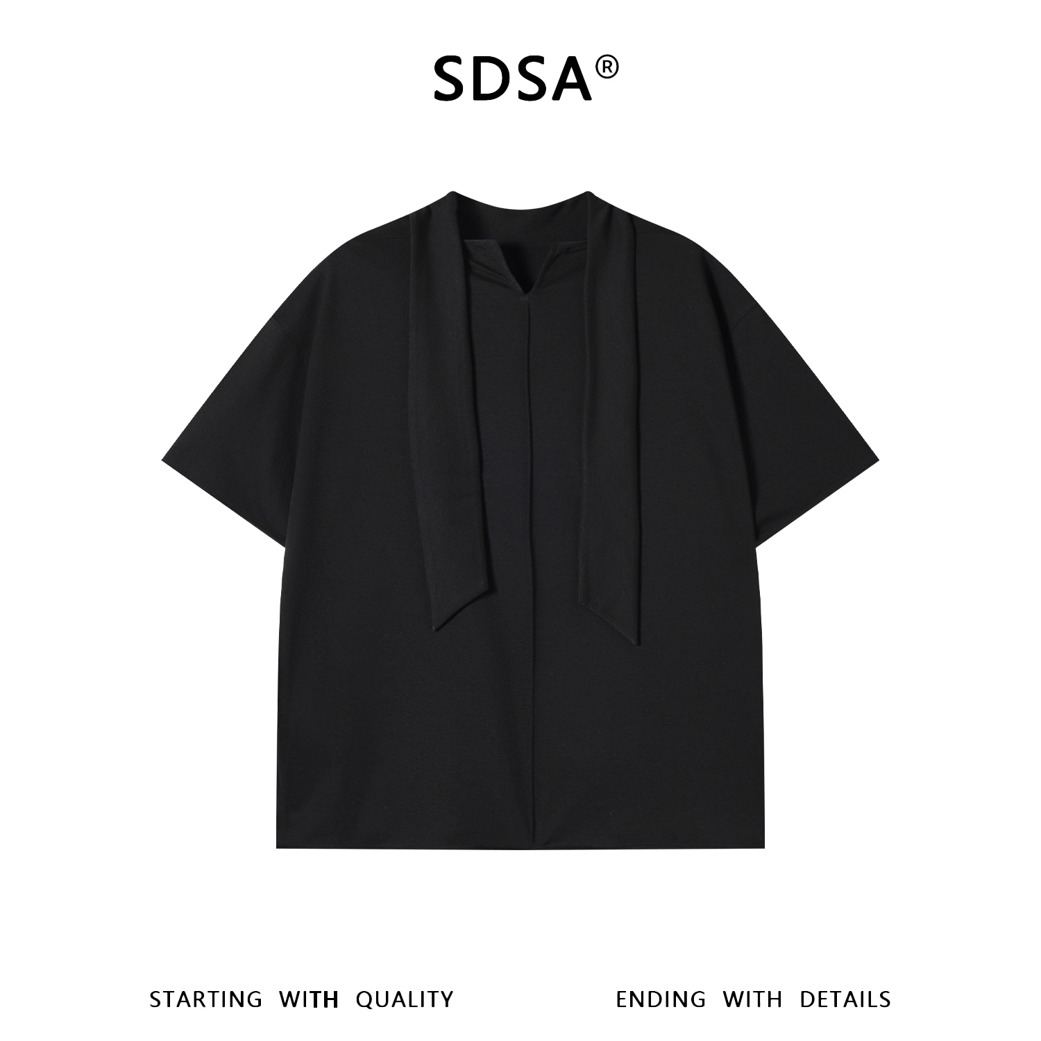 SDSA男装2026新款高贵轻奢高级感小众设计感飘带T恤V领短袖上衣