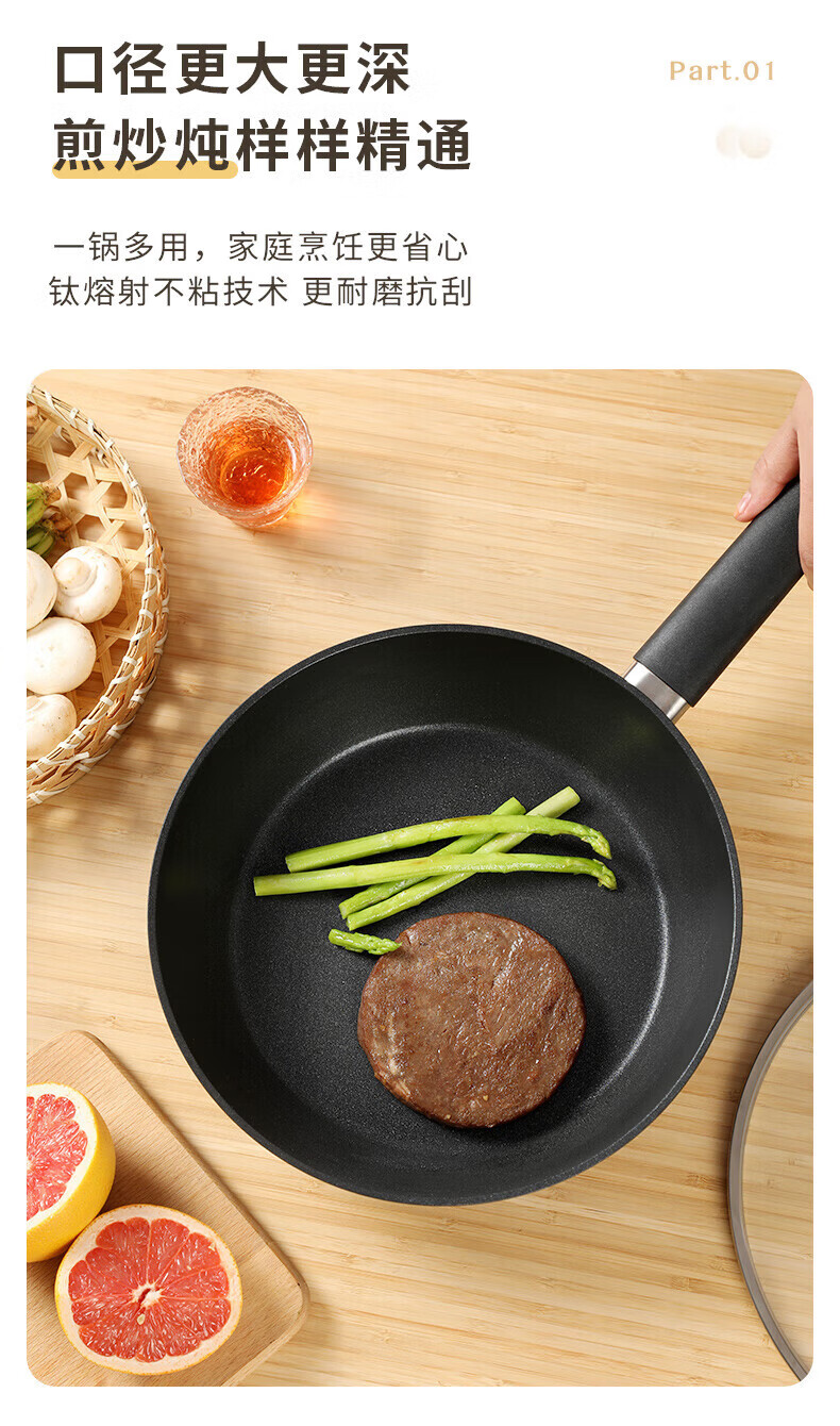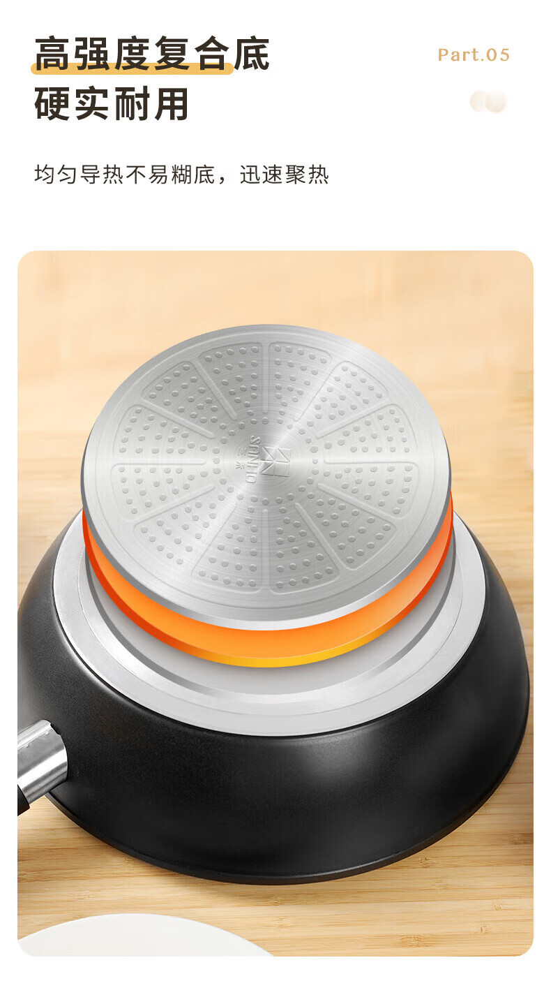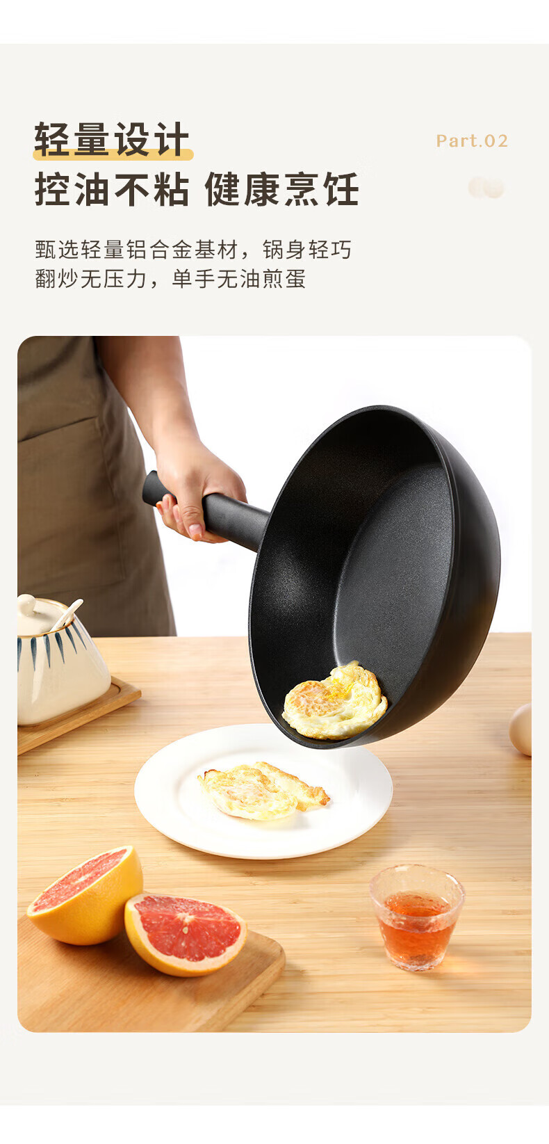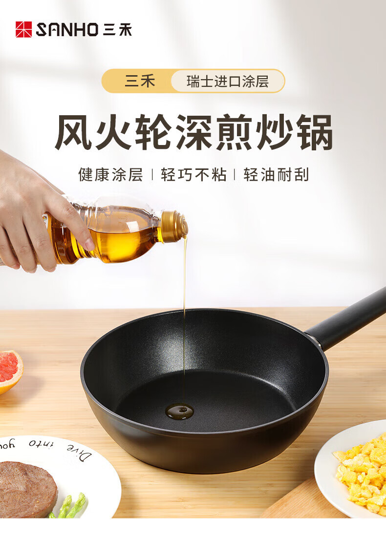三禾锅具风火轮系列不粘煎炒锅家用炒菜锅平底煎锅电磁炉燃气通用 LC32P2 32cm