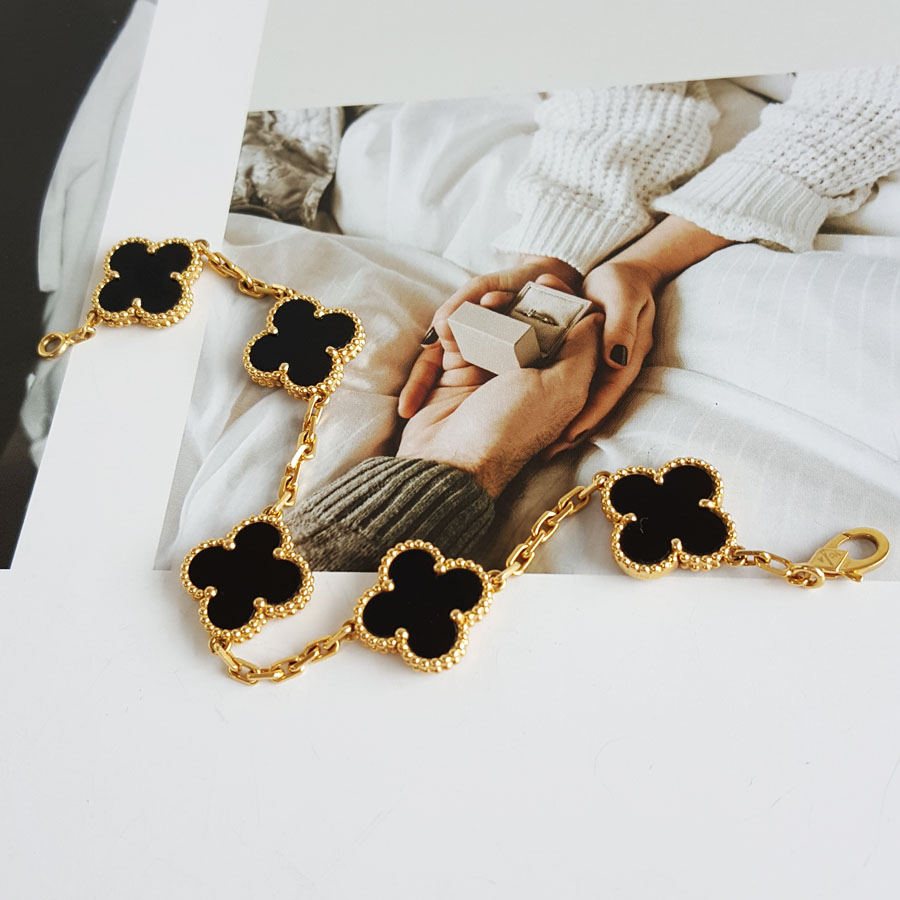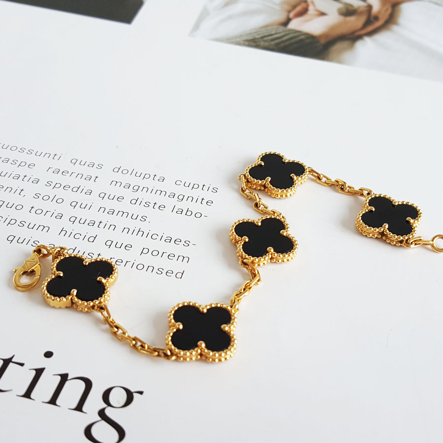 款式 | 18K黄金镶黑玛瑙四叶草黑五花手链 |