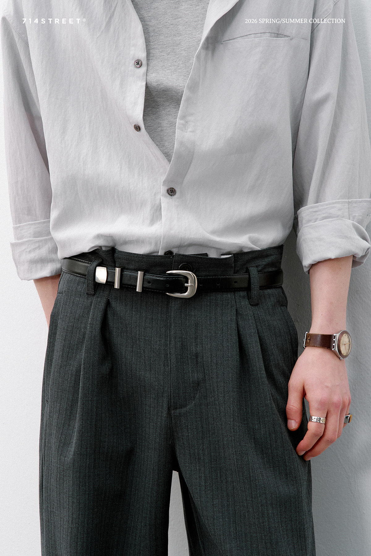 714street复古极简老钱风牛皮腰带2026潮牌cleanfit皮带男女同款