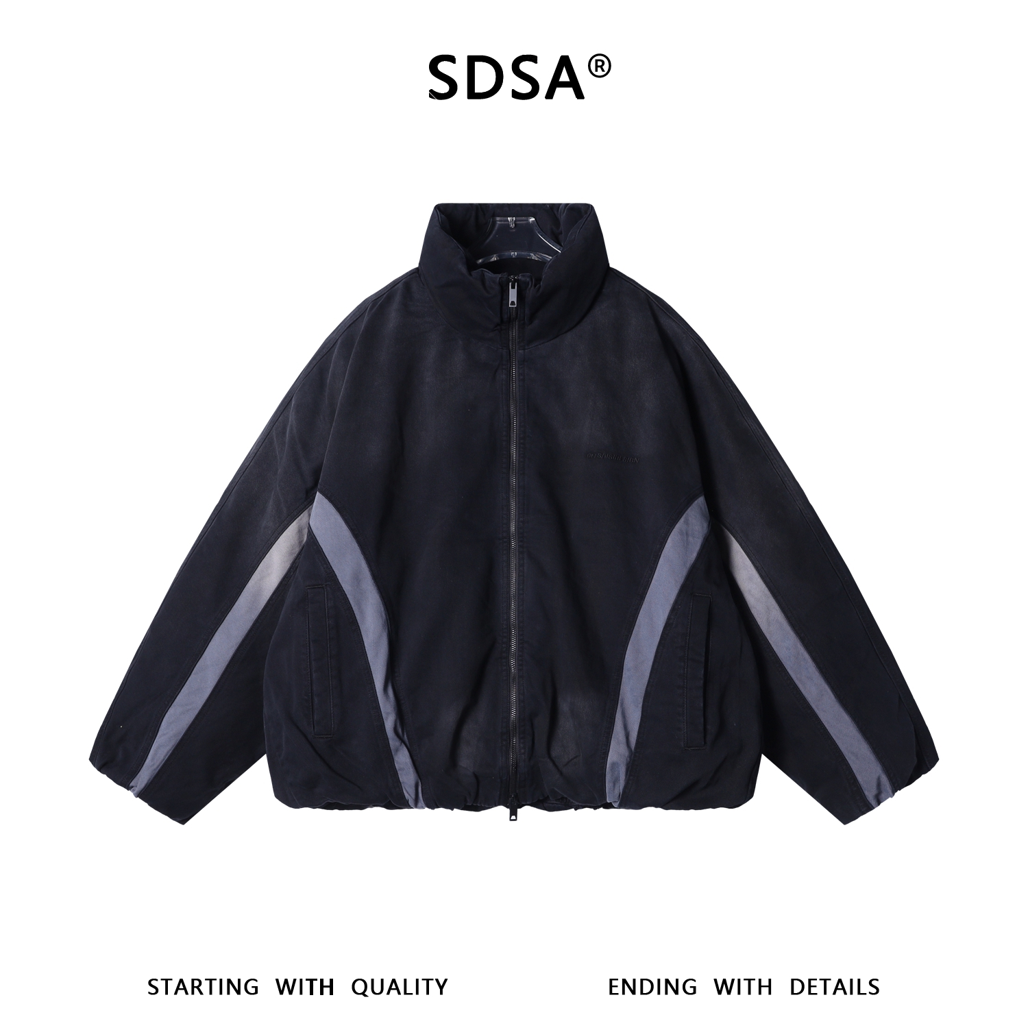 SDSA男士秋冬新款痞帅男装复古立领撞色牛仔羽绒服外套百搭时尚