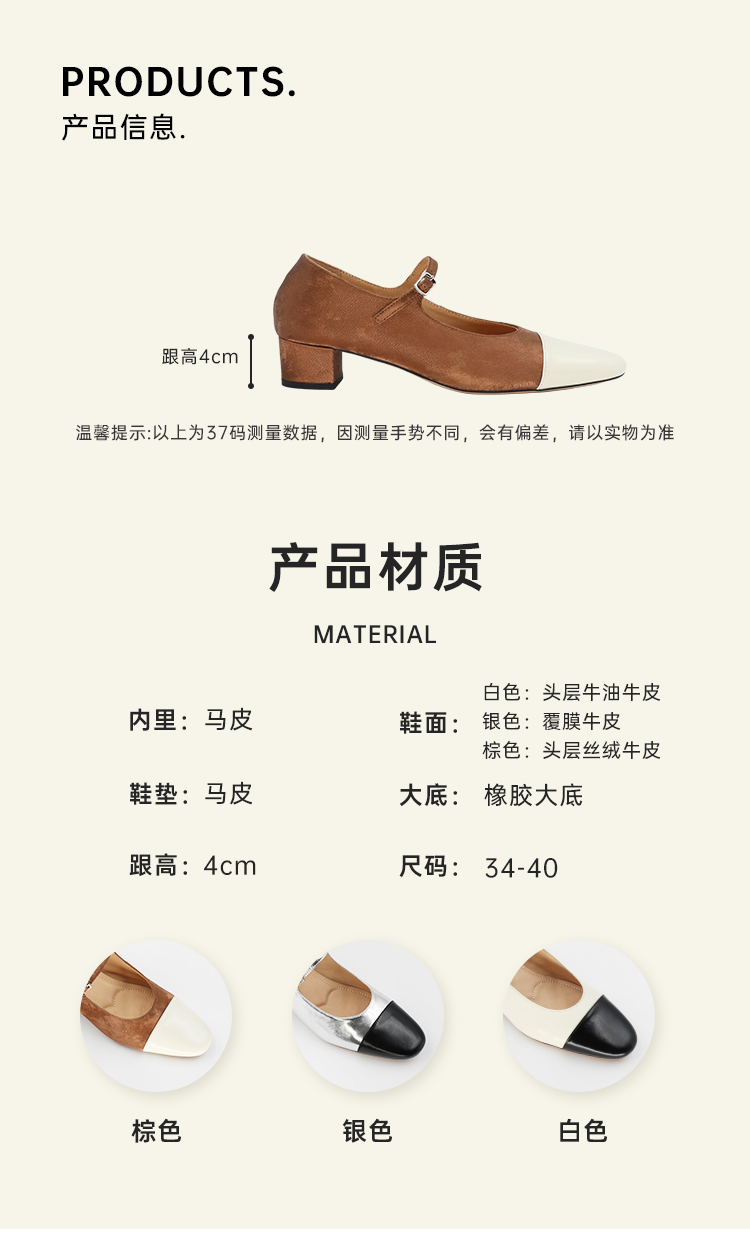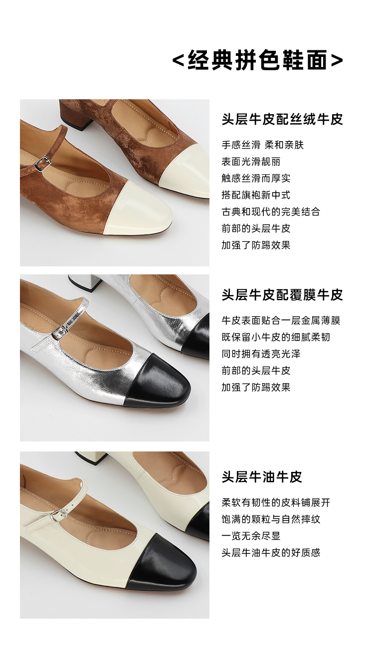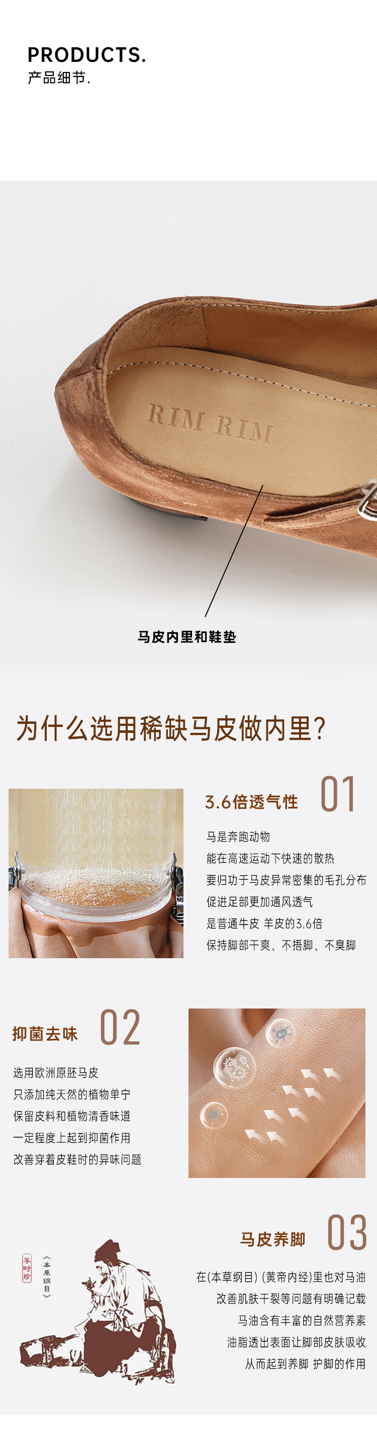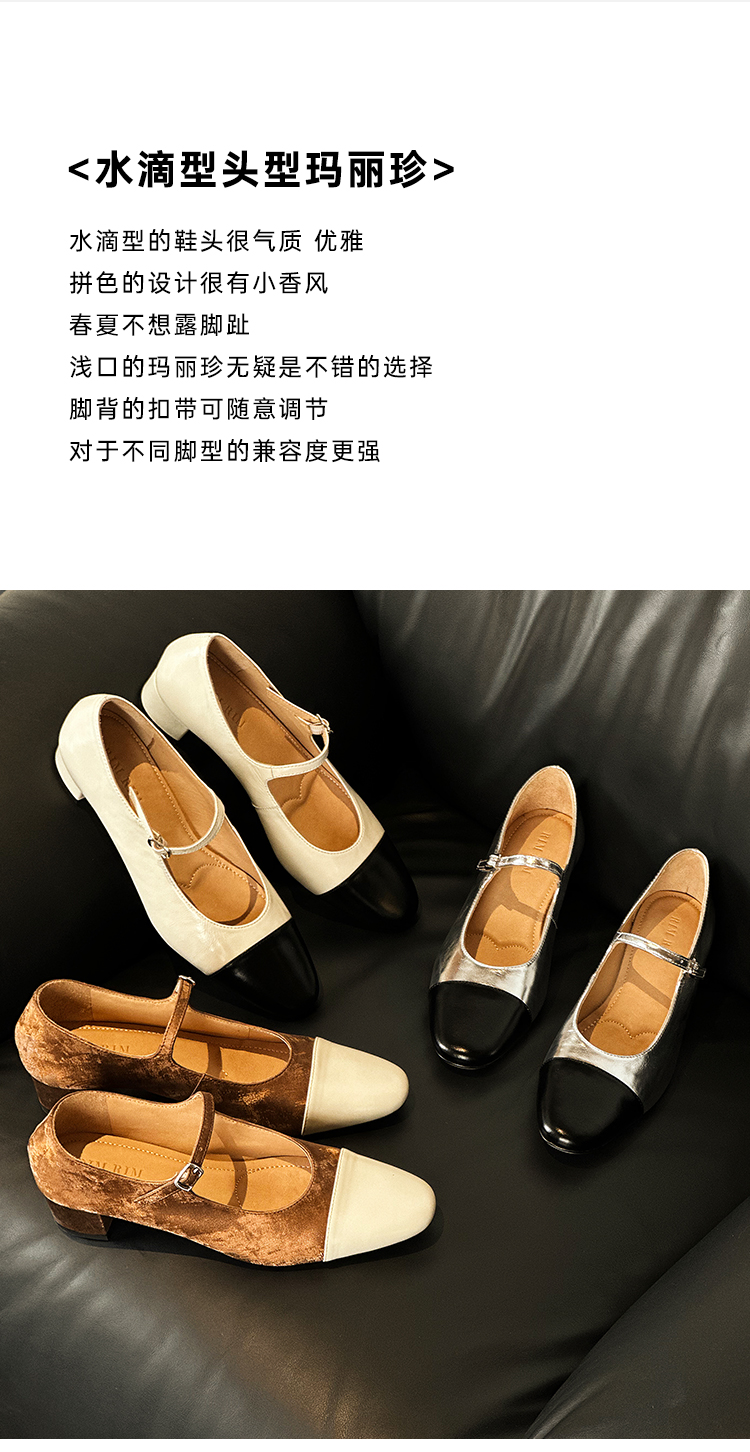 RIMRIM塑型马皮鞋新中式复古浅口单鞋新款圆头中跟玛丽珍鞋软底2388