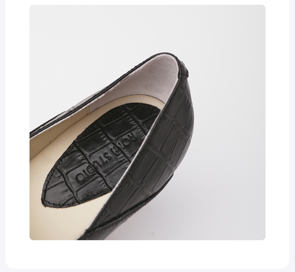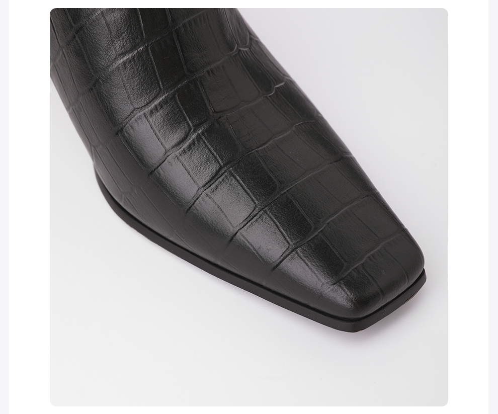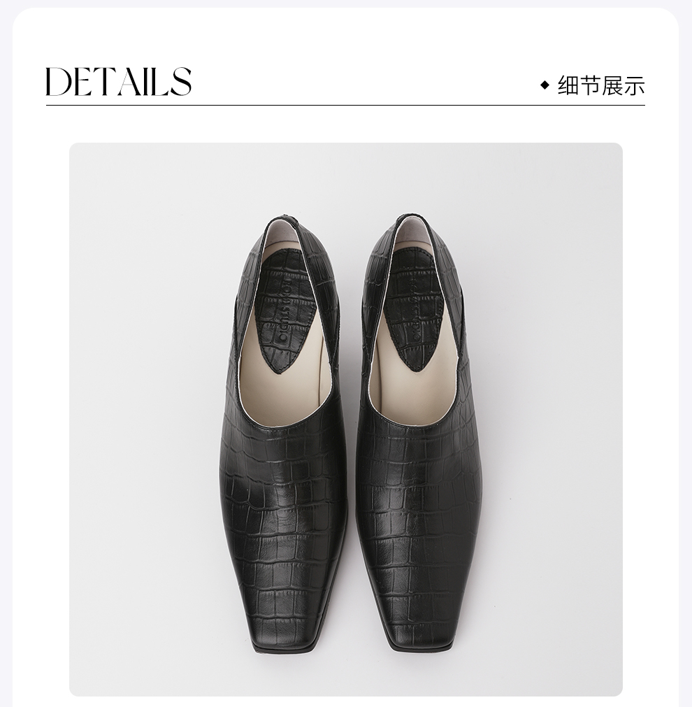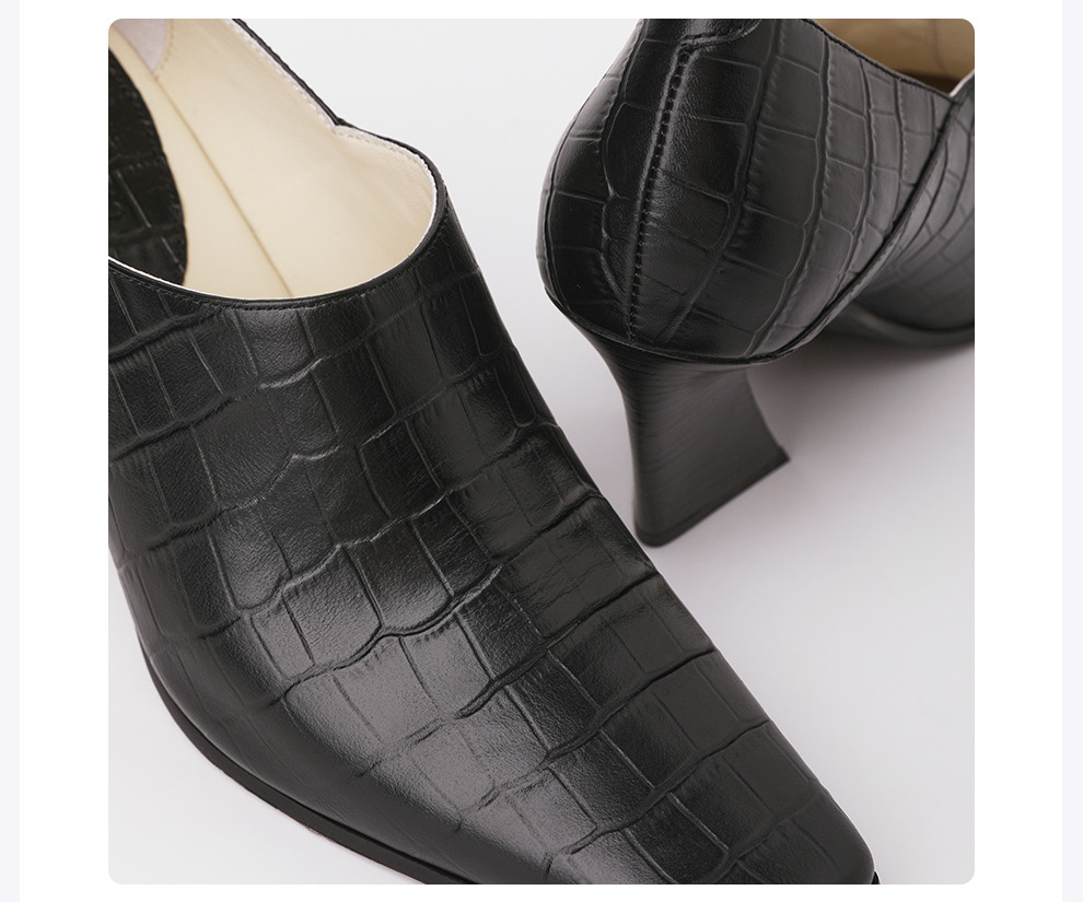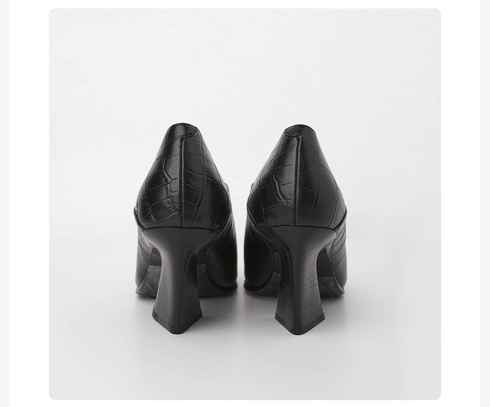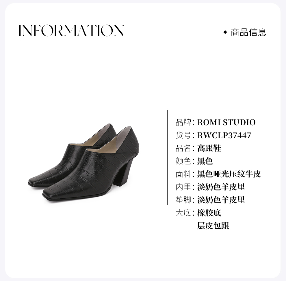 ROMI STUDIO牛皮压鳄鱼纹时尚黑色哑光粗跟高跟鞋RWCLP37447