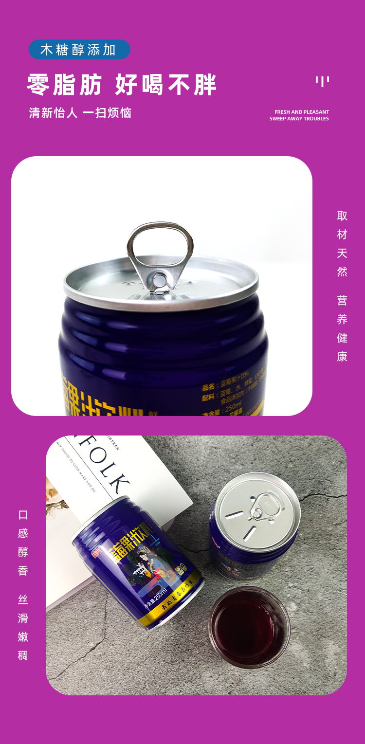 贵州黔东南蓝笑蓝莓果汁(原汁含量≥68%)250ml*8罐 礼盒装