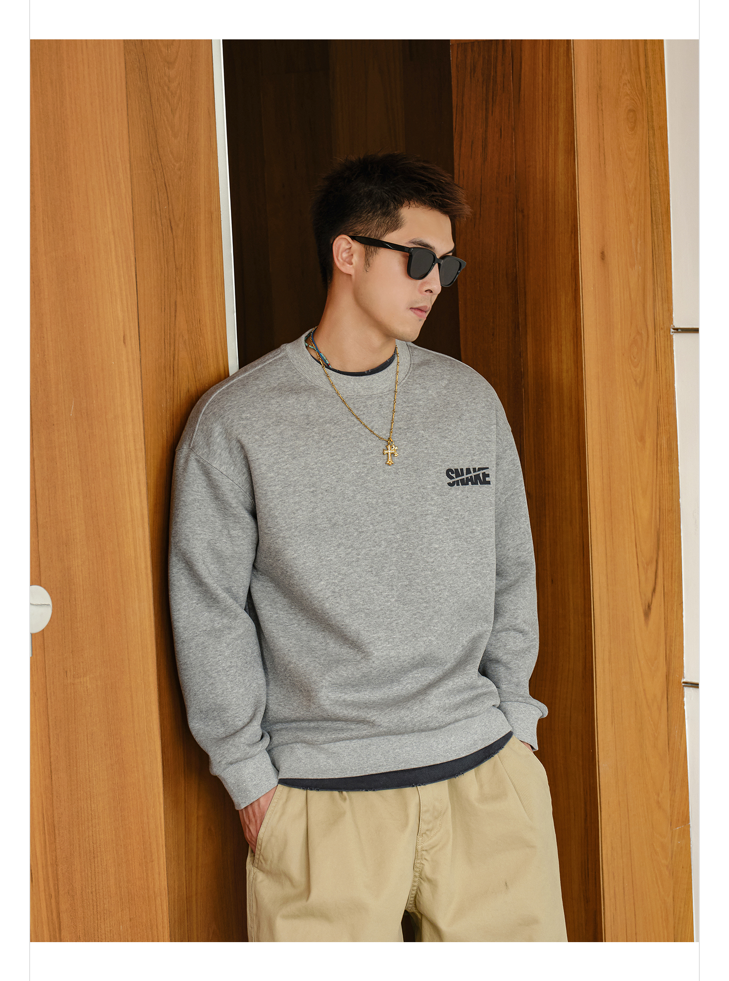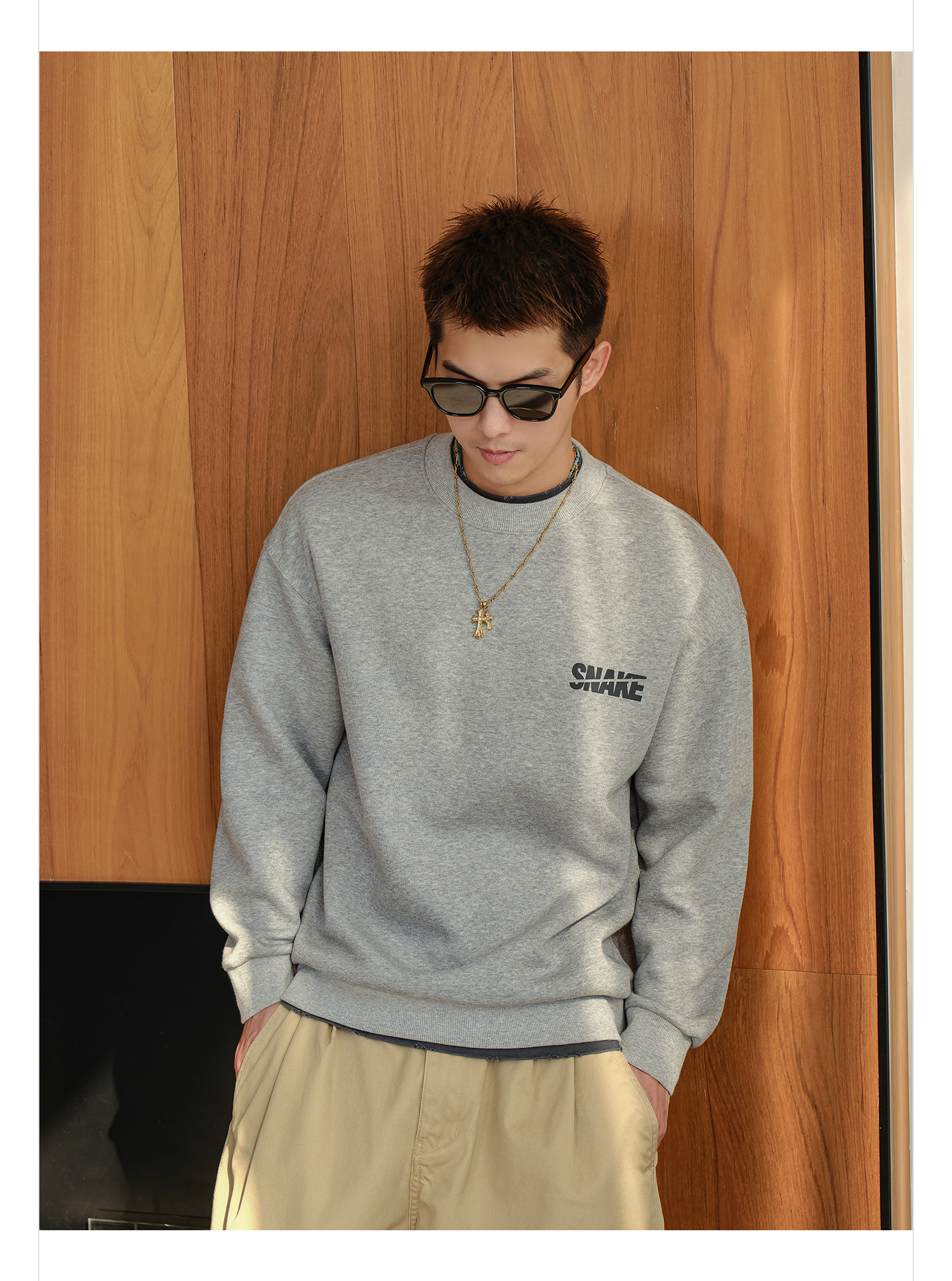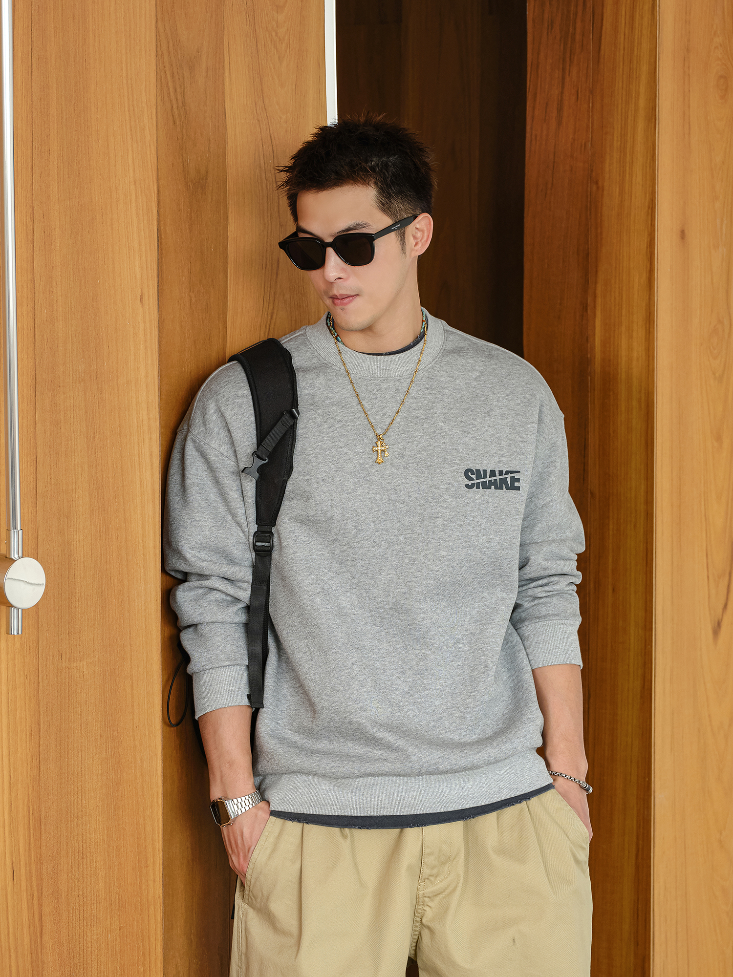 徐太浪【擦色 字母印花】灰色大码卫衣男秋季男装高级感内搭上衣
