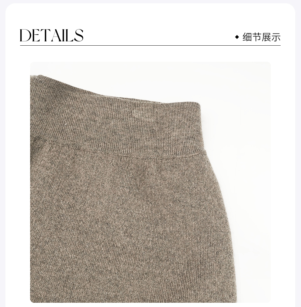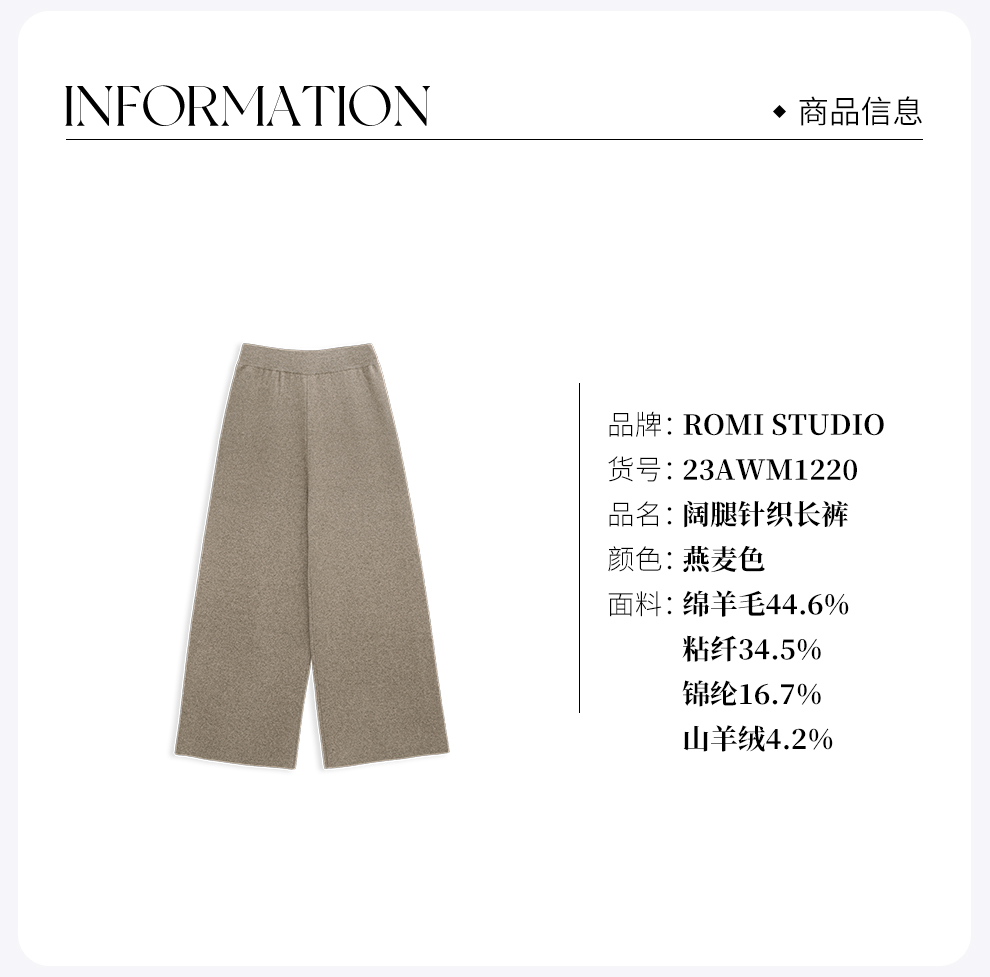 ROMI STUDIO“贵妇老钱”精纺羊绒羊毛燕麦色阔腿针织长裤23AWM1220