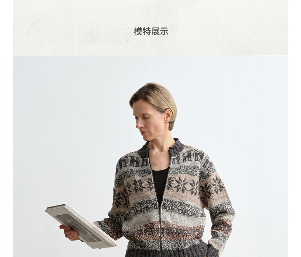 ROMI STUDIO“冬日氛围”绵羊毛费尔岛提花厚款开衫外套 RWBWS01660