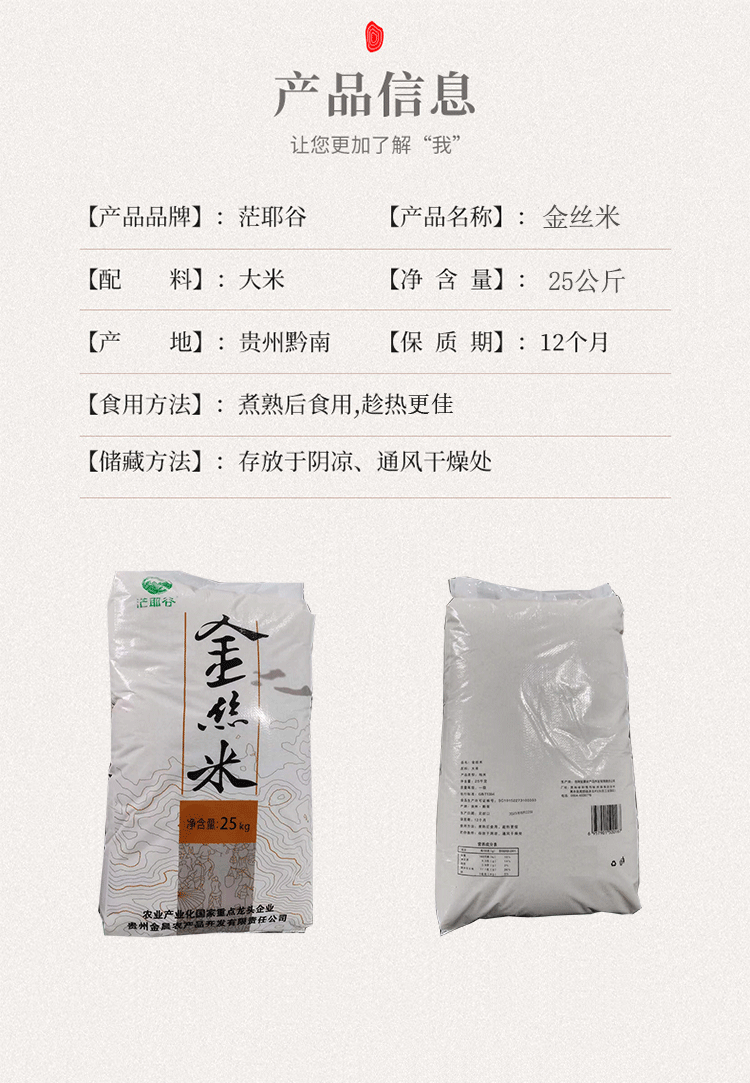 【集采专享】贵州黔南州惠水县茫耶谷惠水金丝米(编织袋)25kg/袋