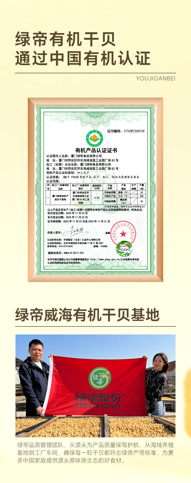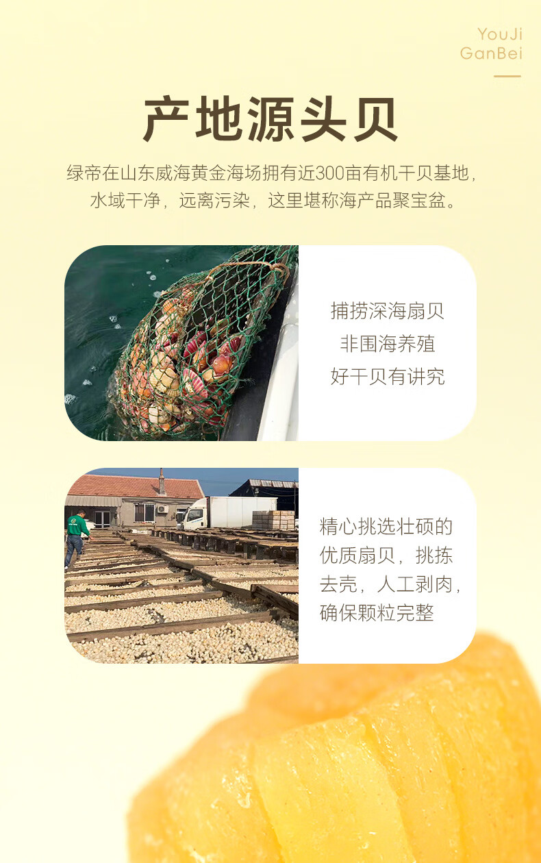 【绿帝】干贝瑶柱淡干淡晒扇贝肉特产元贝宝宝辅食罐装盒装
