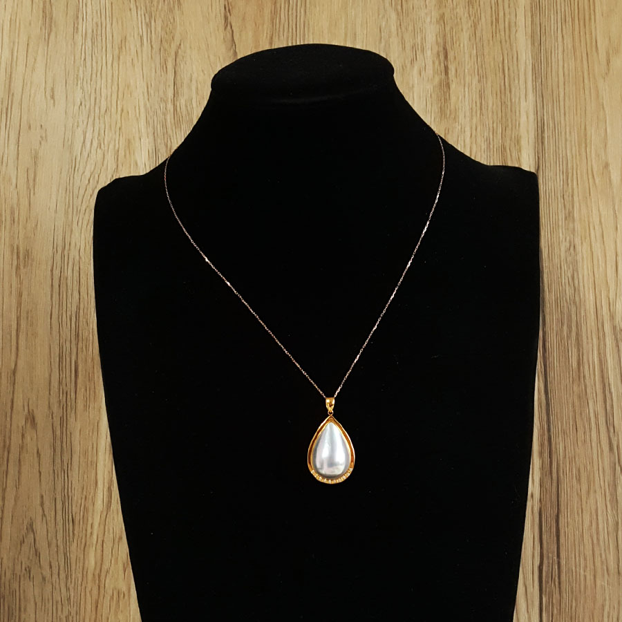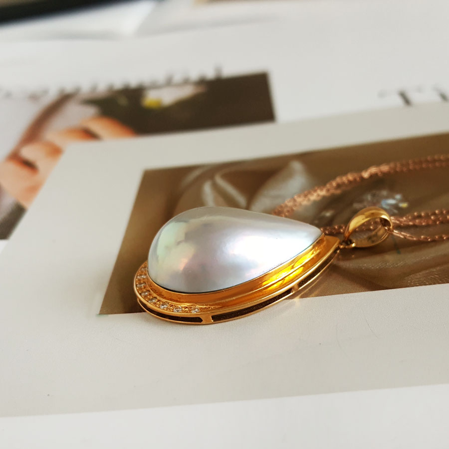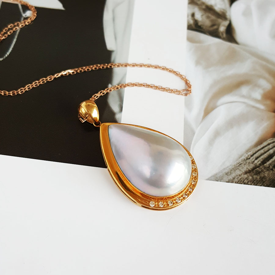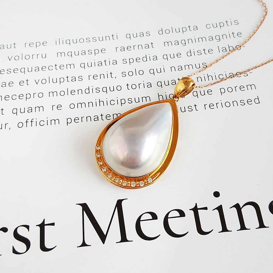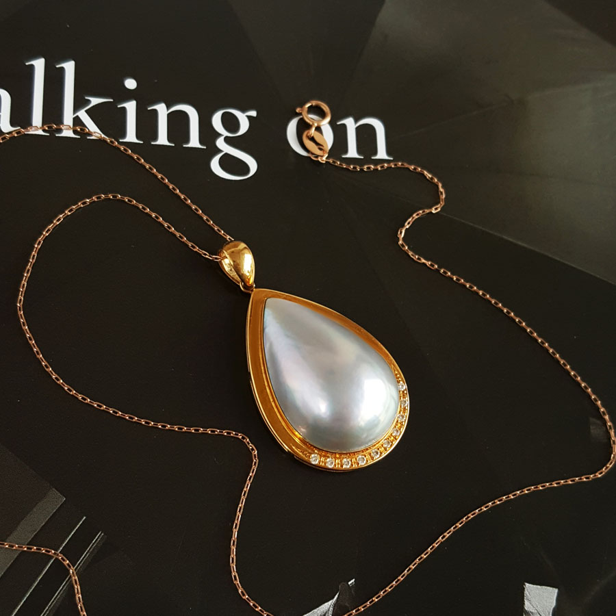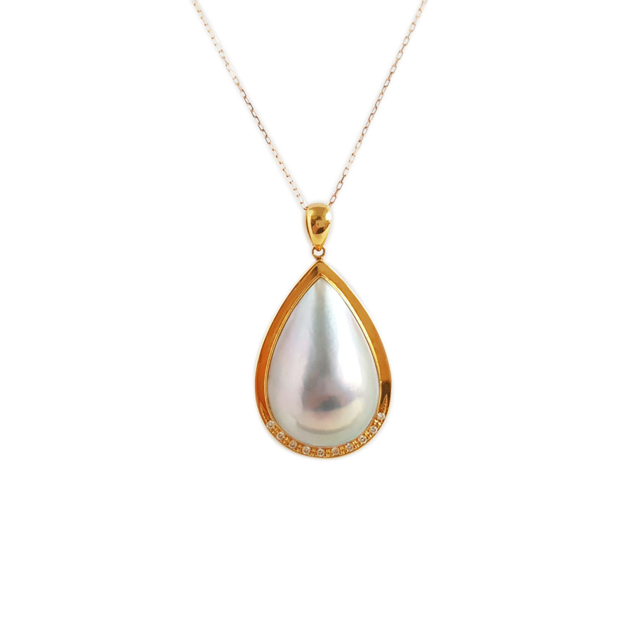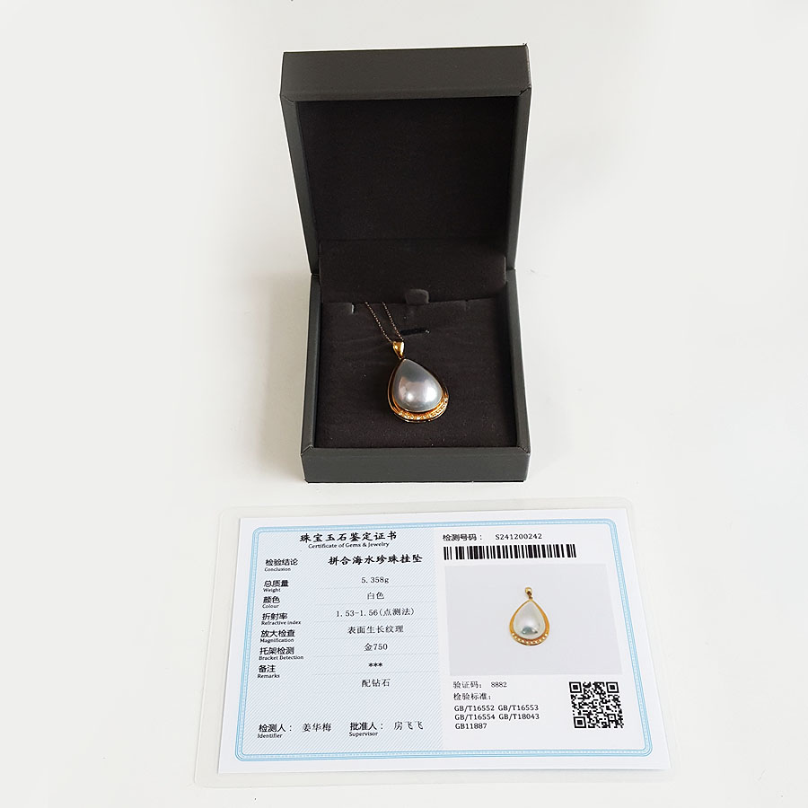 名称 | AU750黄金镶钻镶天然水滴形拼合海水珍珠吊坠项链 |