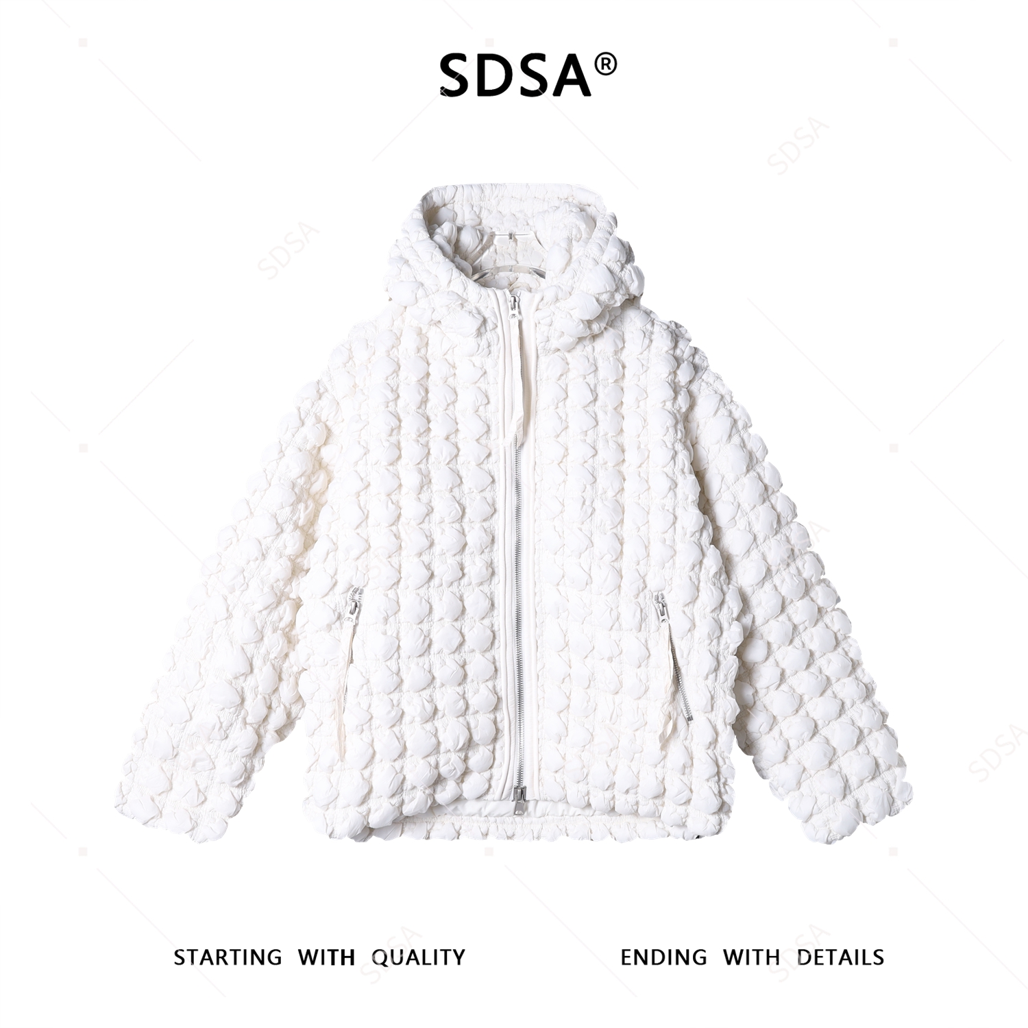 SDSA男士秋冬新款痞帅男装老钱风纯色格纹拉链连帽白鹅绒服外套