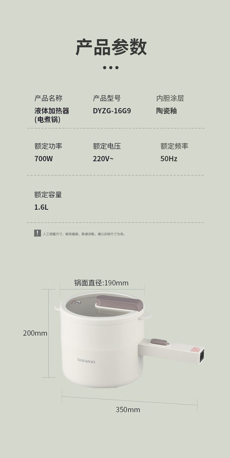 大宇(DAEWOO)多功能宿舍学生泡面小电锅迷你电煮锅DYZG-16G9