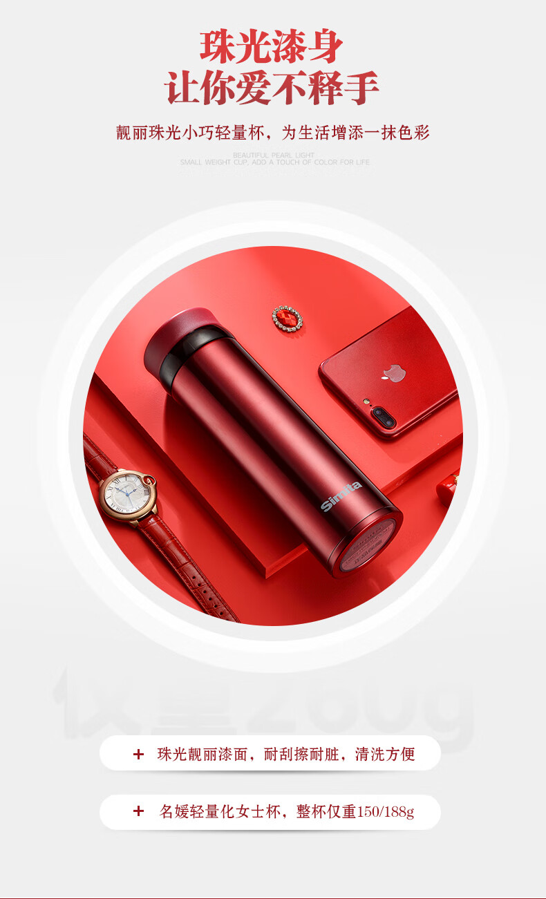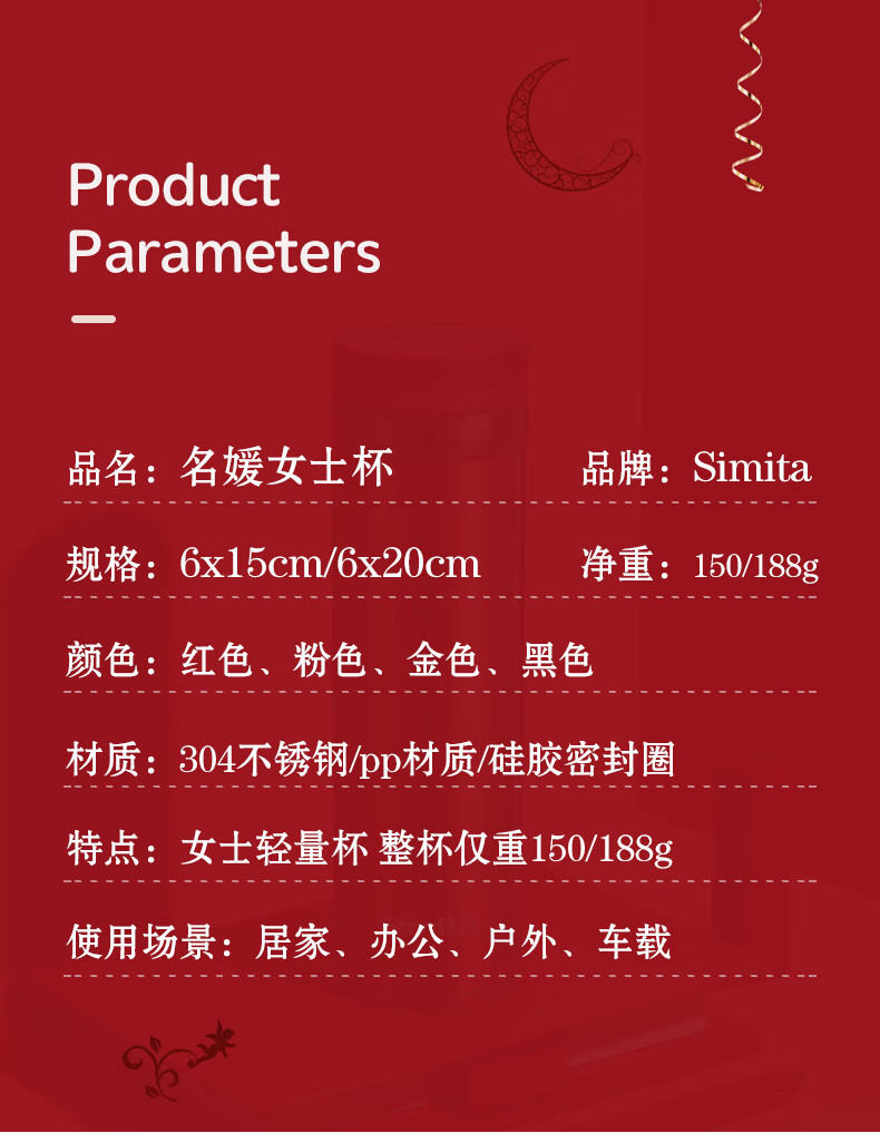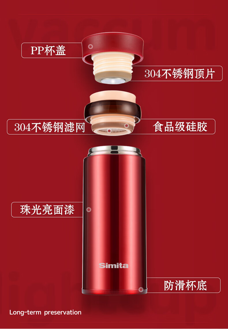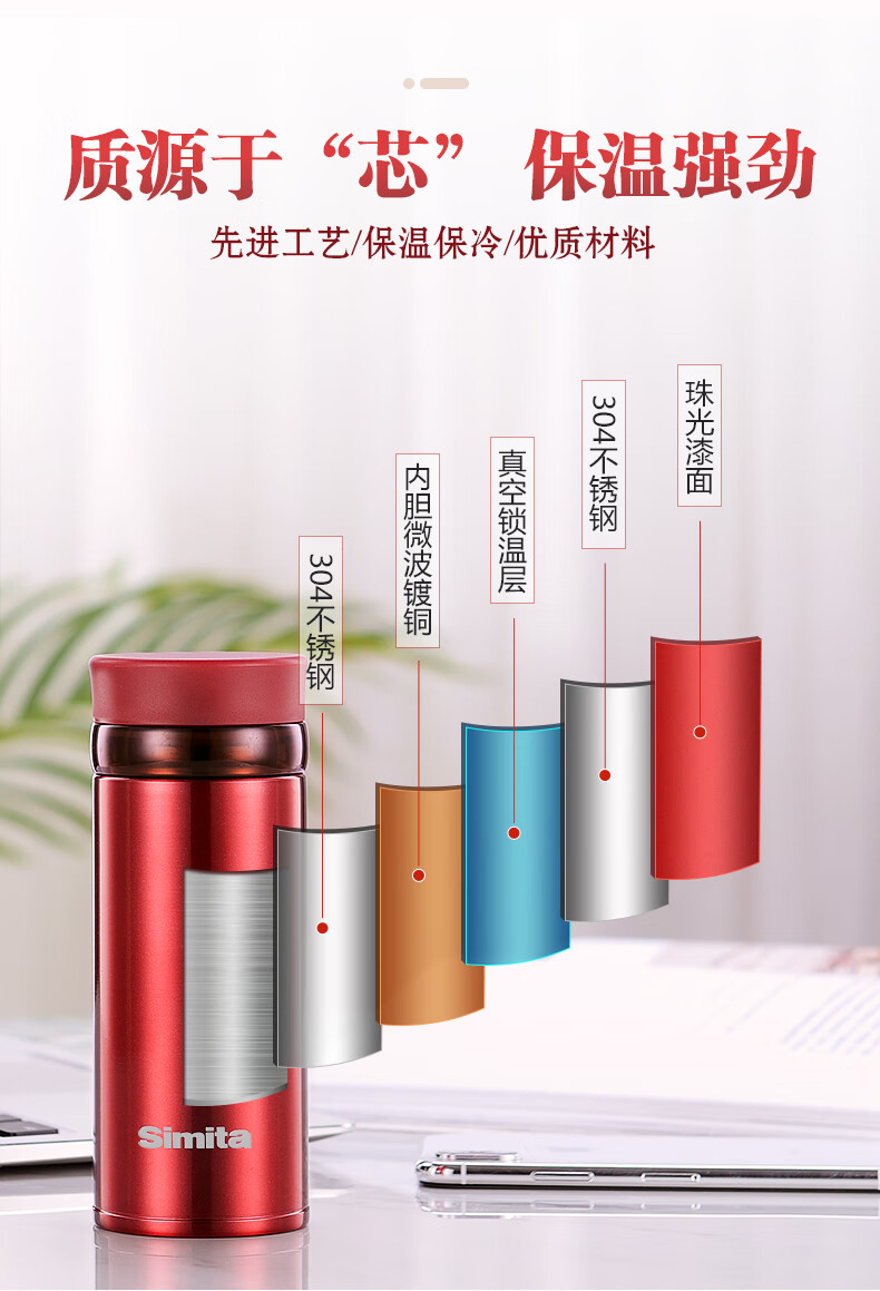 施密特(Simita)保温杯保冷杯304不锈钢车载水杯男女学生杯子名媛时尚女性水杯子 MBW6002-032A