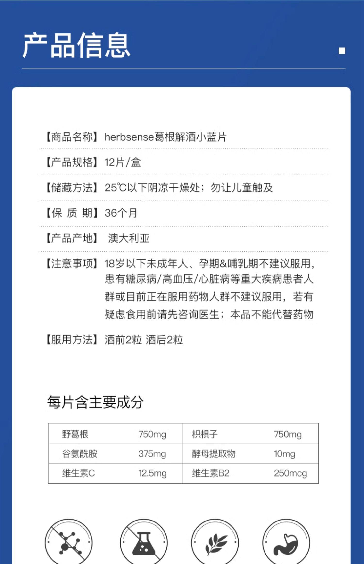 Herbsense贺柏圣解酒药小蓝盒快速醒酒防宿醉应酬聚会解酒神器