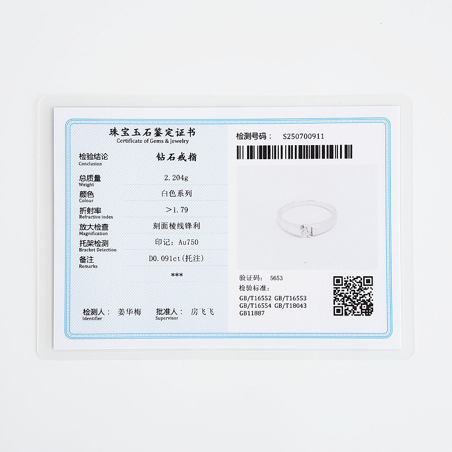 是否镶钻 | 共1颗明亮式切割钻石共计0.091克拉 |