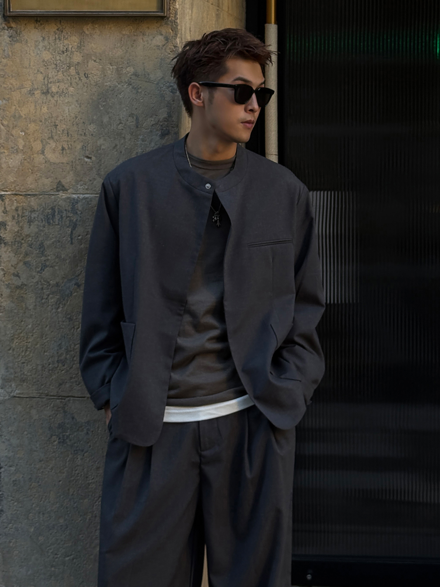 徐太浪【cleanfit 百搭垫肩】270g行政夹克男春秋深灰色西装外套