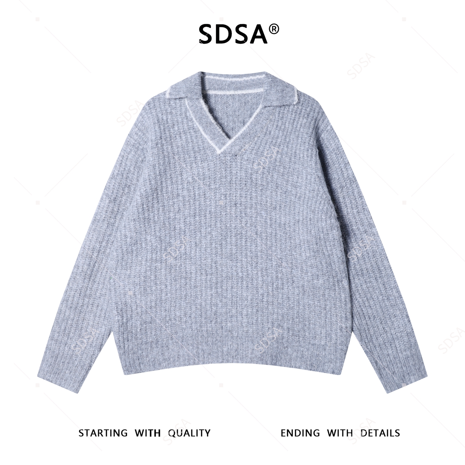 72507SDSA男士秋冬新款痞帅男装潮牌简约小V翻领毛衣慵懒风套头针织衫
