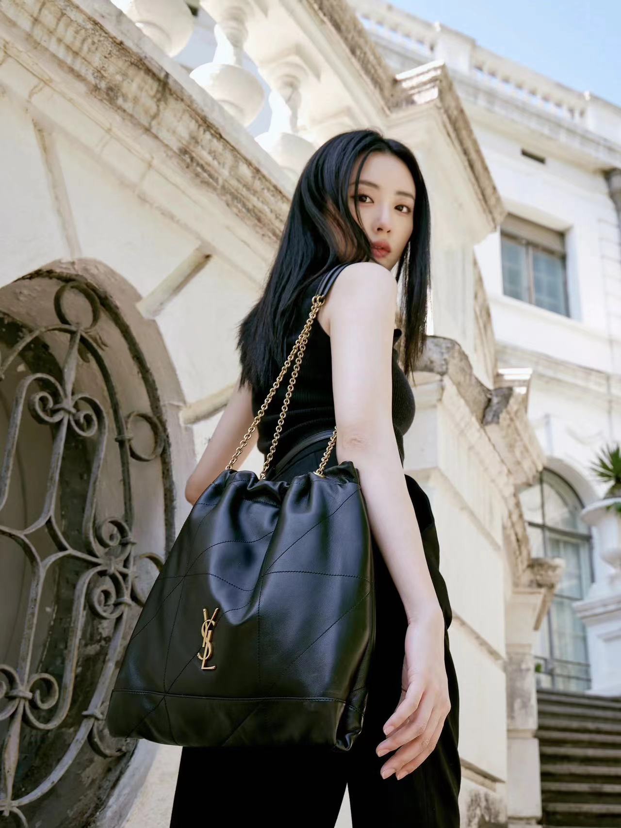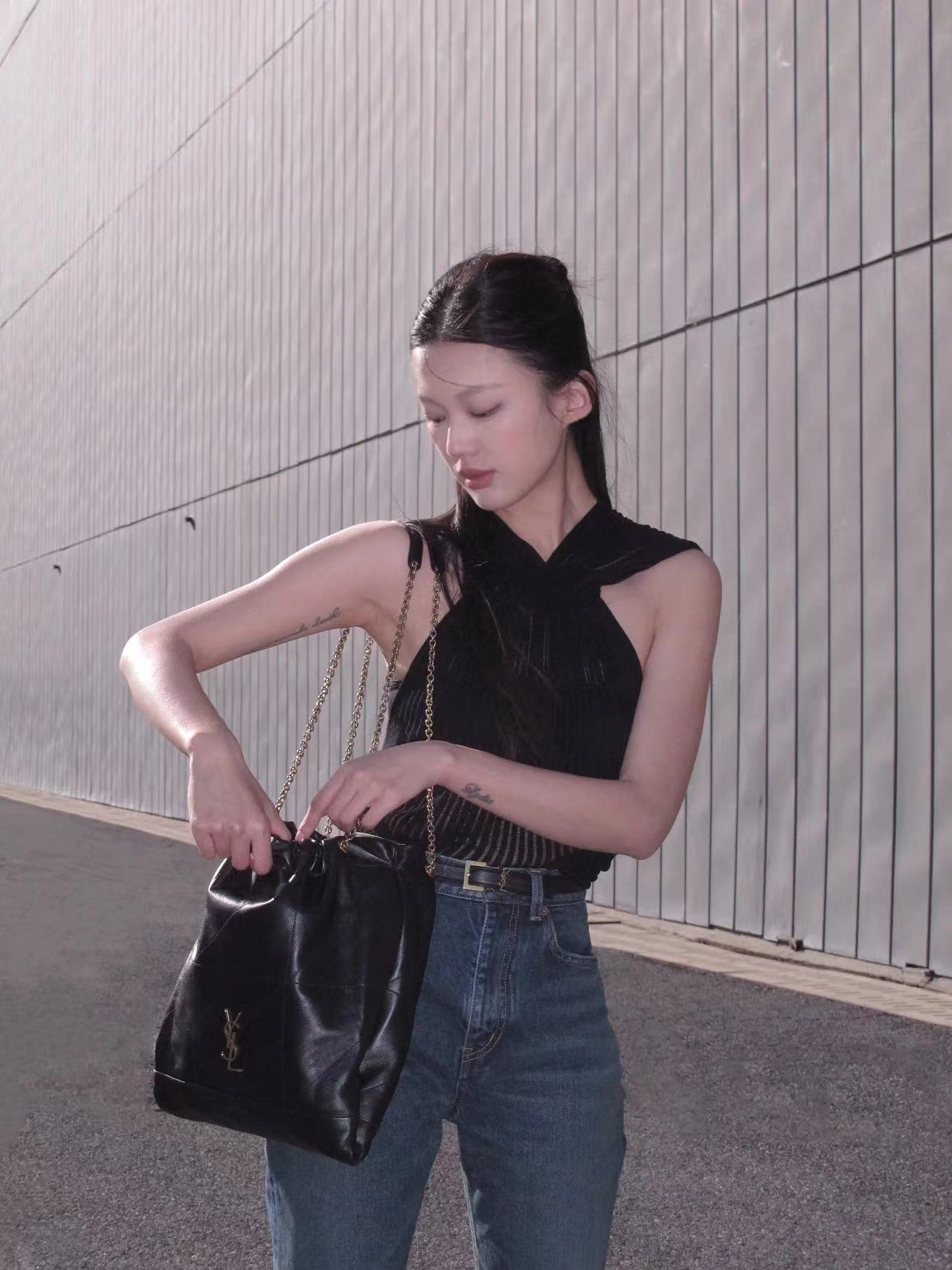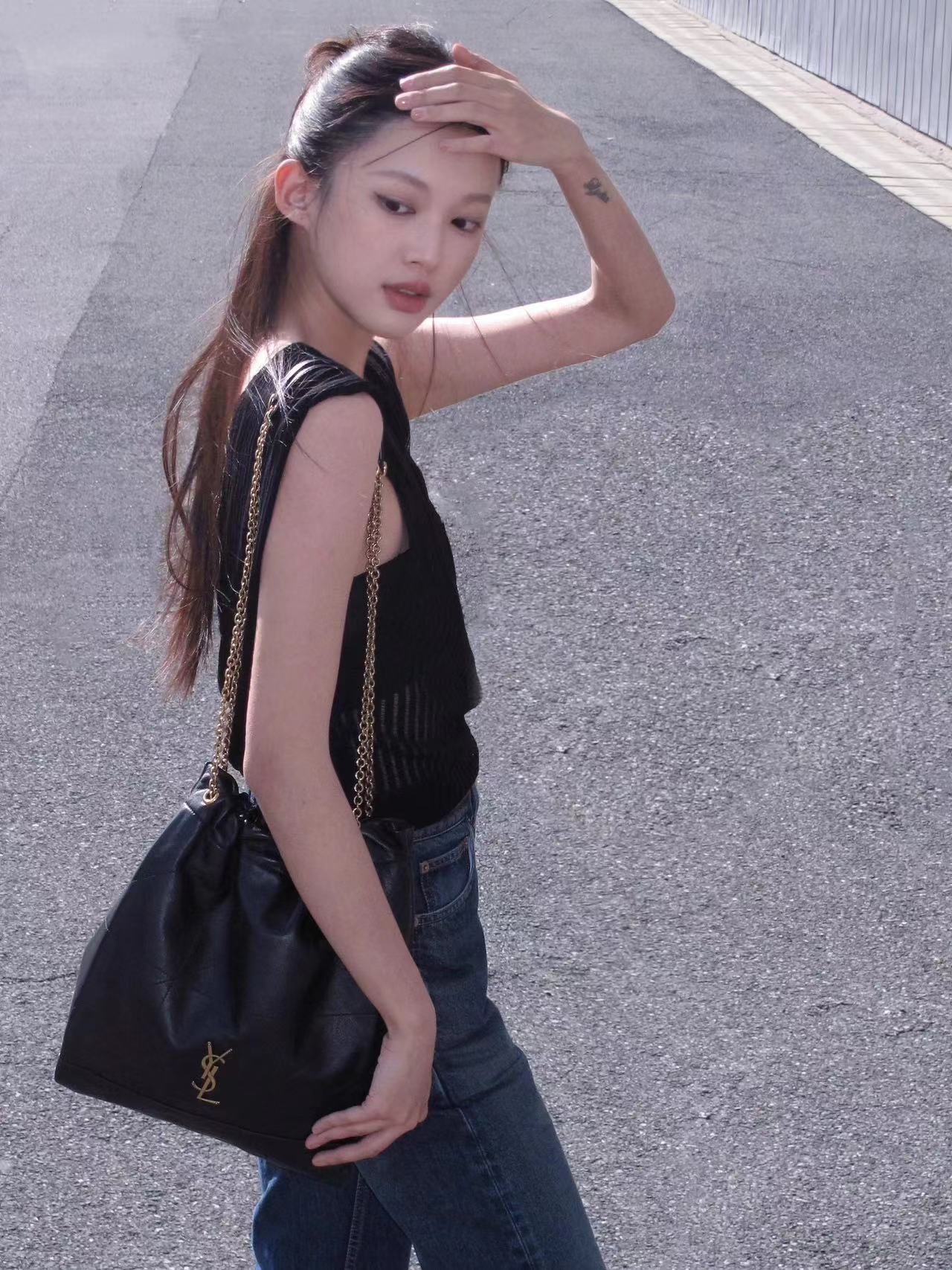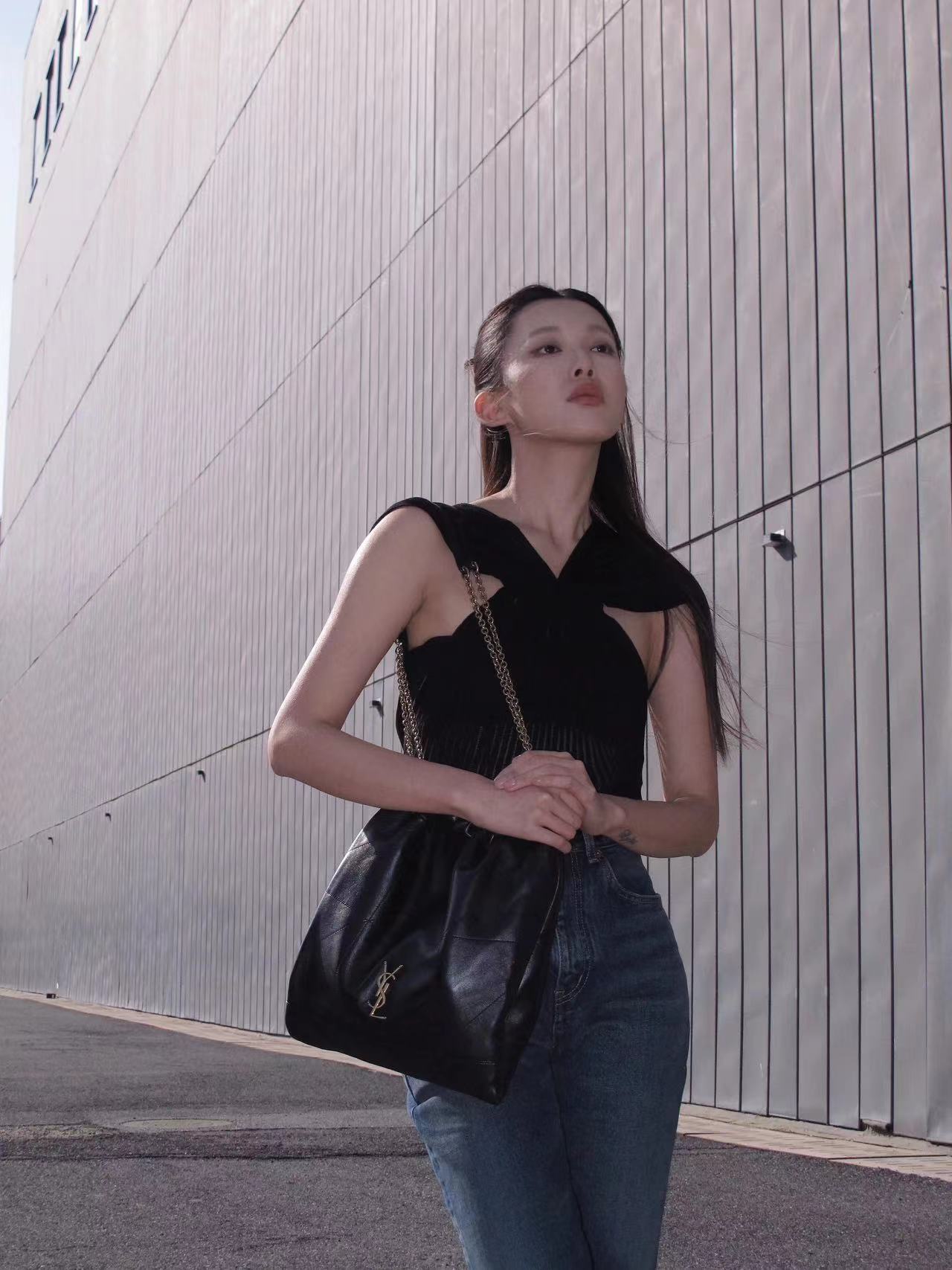 圣罗兰 Jamie 24 新款垃圾袋 小羊皮材质搭配金色五金 又高级又耐看!ysl之前一直是贵气又禁欲的克制又性感,能驾驭得住她家的给我的感觉都是瘦溜溜的美女但近几年的设计越发的慵懒可能跟大环境有关吧 尤其是这只jamie 是近几年兴起的垃圾袋款包包里最中意的一只了因为上身真的太好看了!