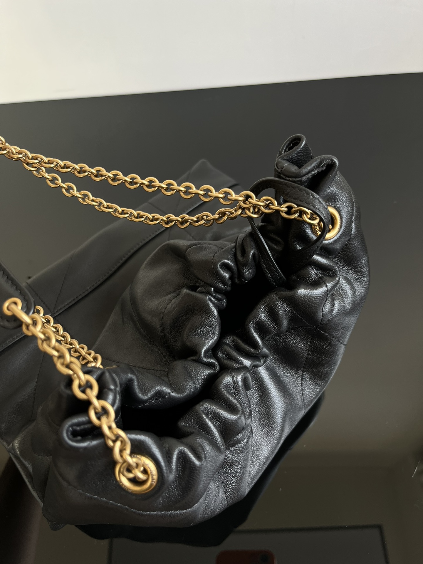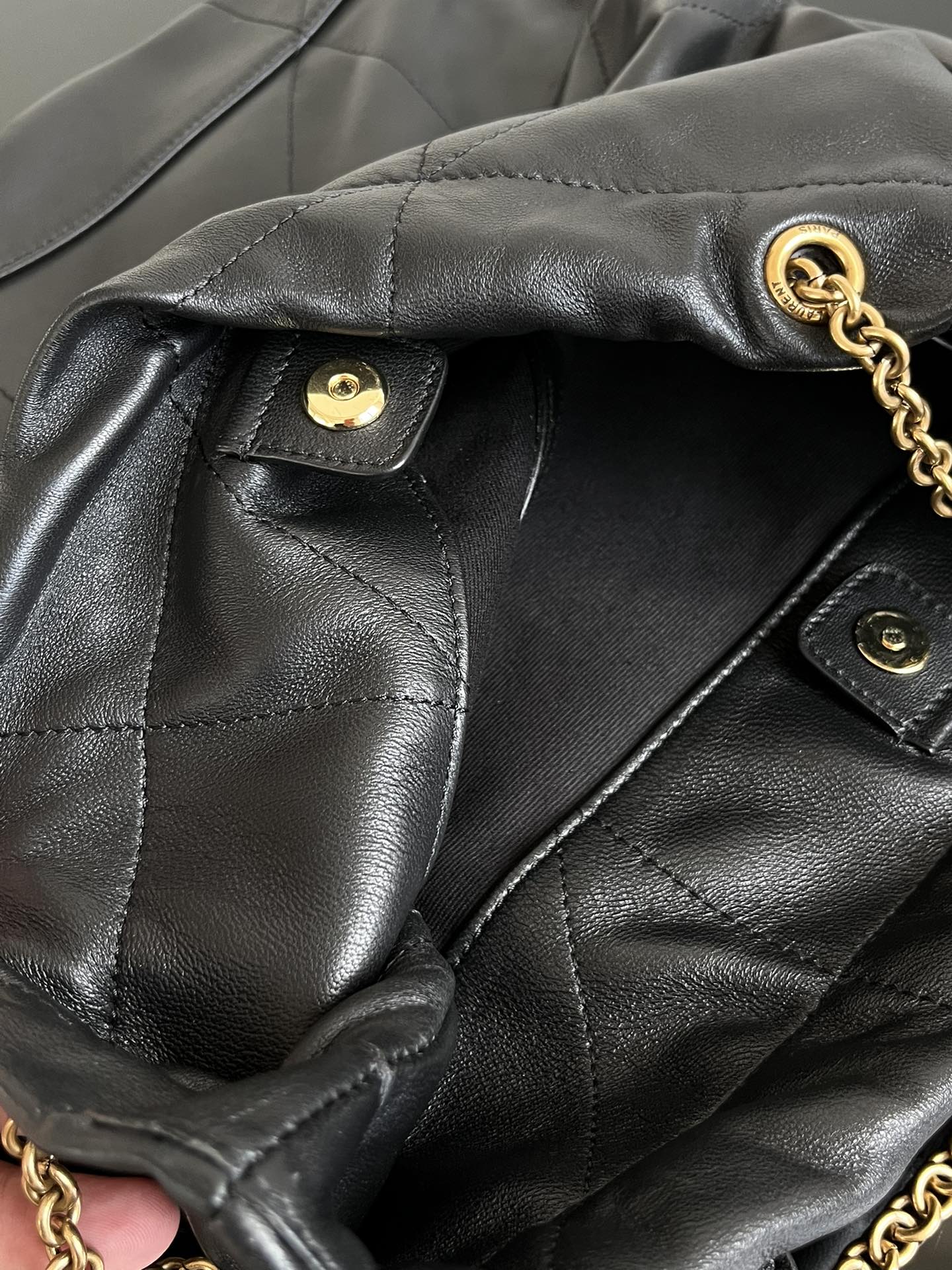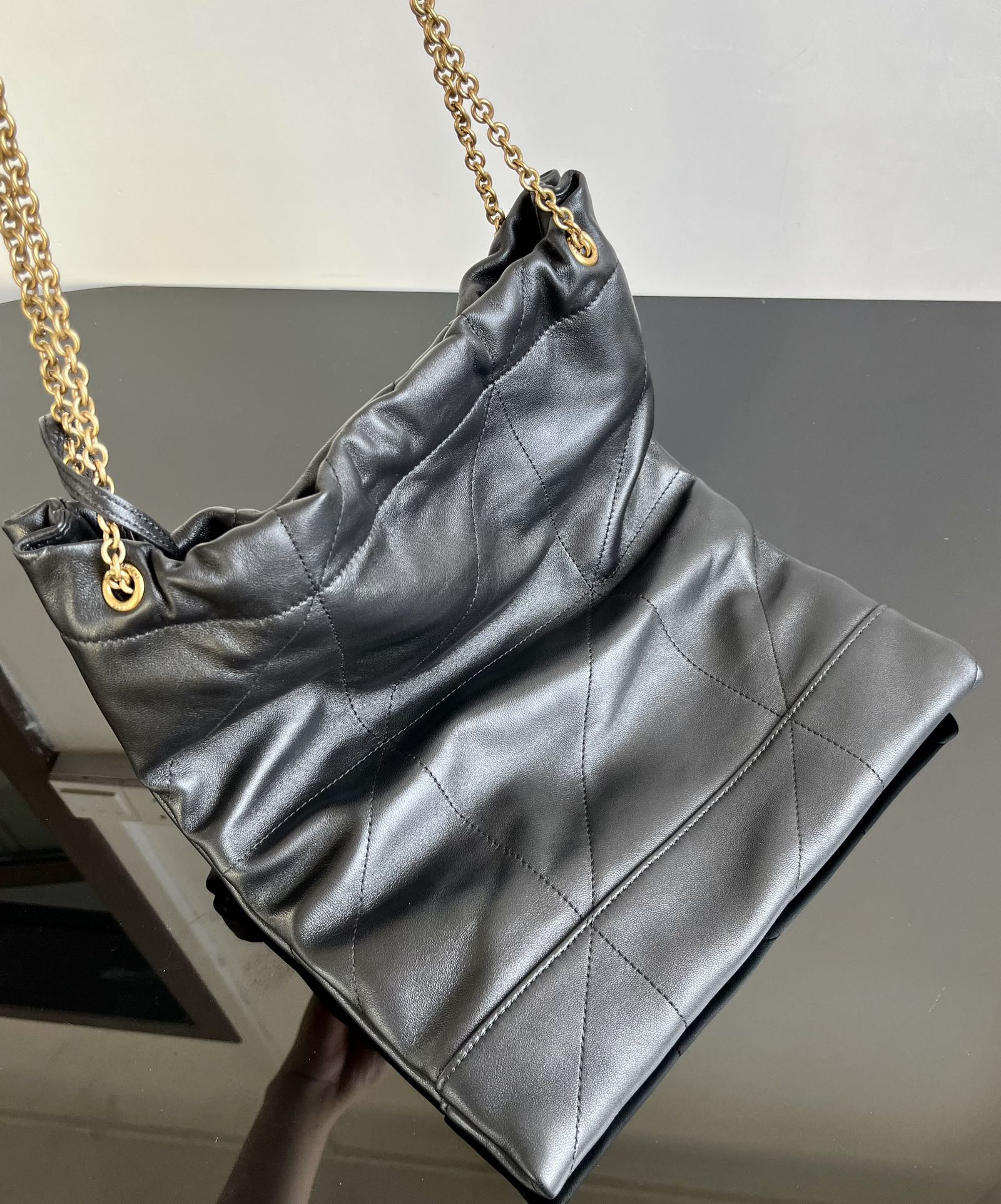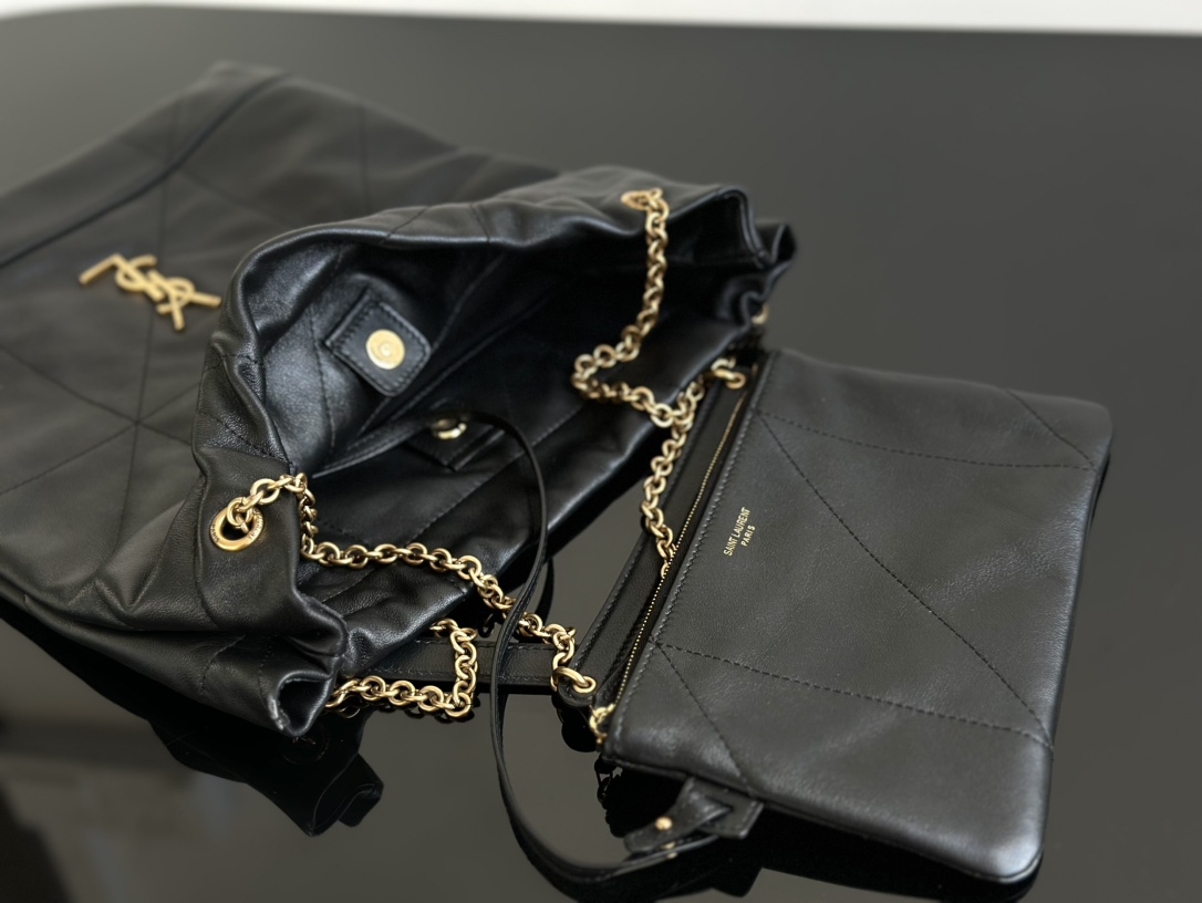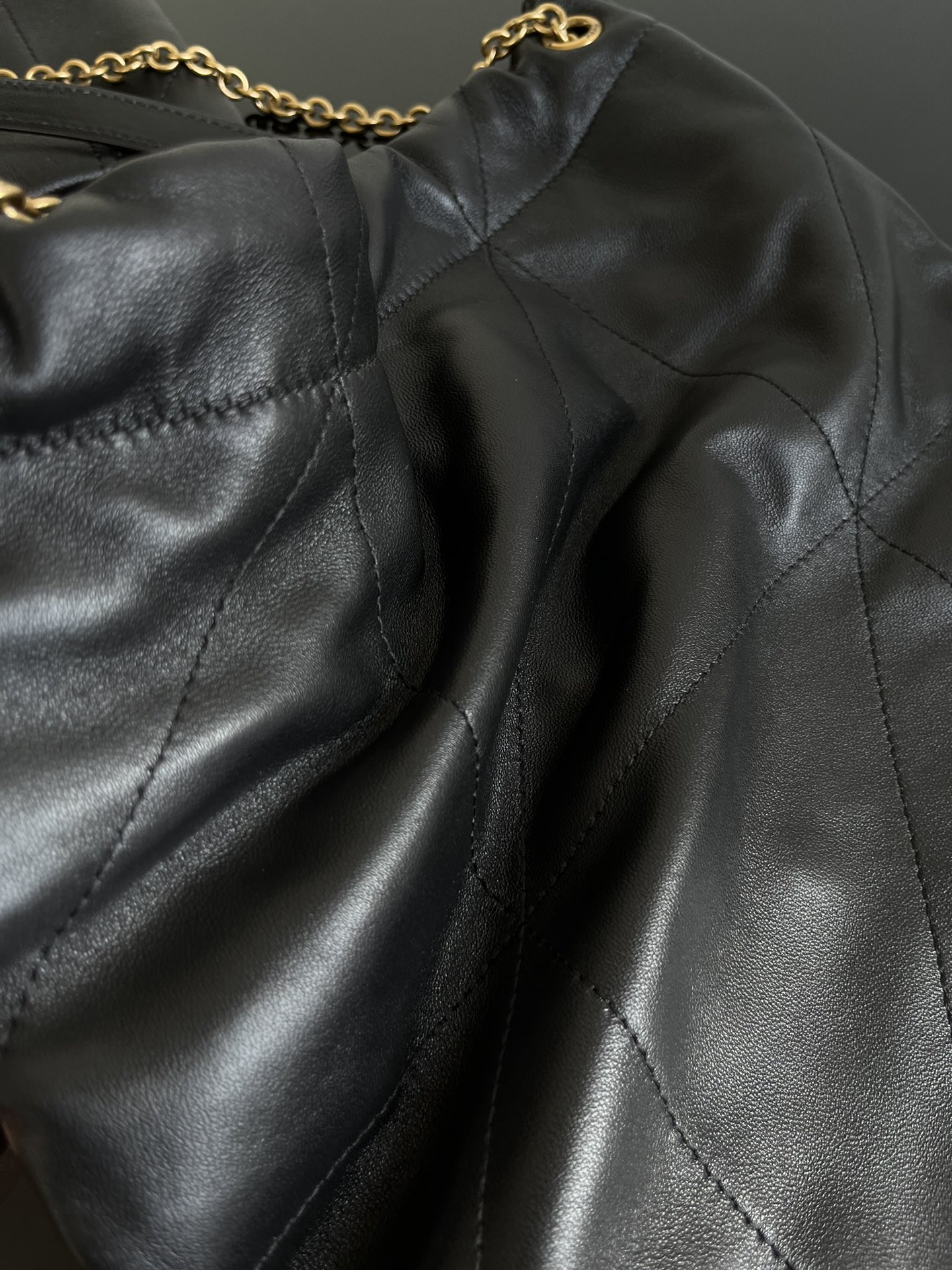圣罗兰 Jamie 24 新款垃圾袋 小羊皮材质搭配金色五金 又高级又耐看!ysl之前一直是贵气又禁欲的克制又性感,能驾驭得住她家的给我的感觉都是瘦溜溜的美女但近几年的设计越发的慵懒可能跟大环境有关吧 尤其是这只jamie 是近几年兴起的垃圾袋款包包里最中意的一只了因为上身真的太好看了!