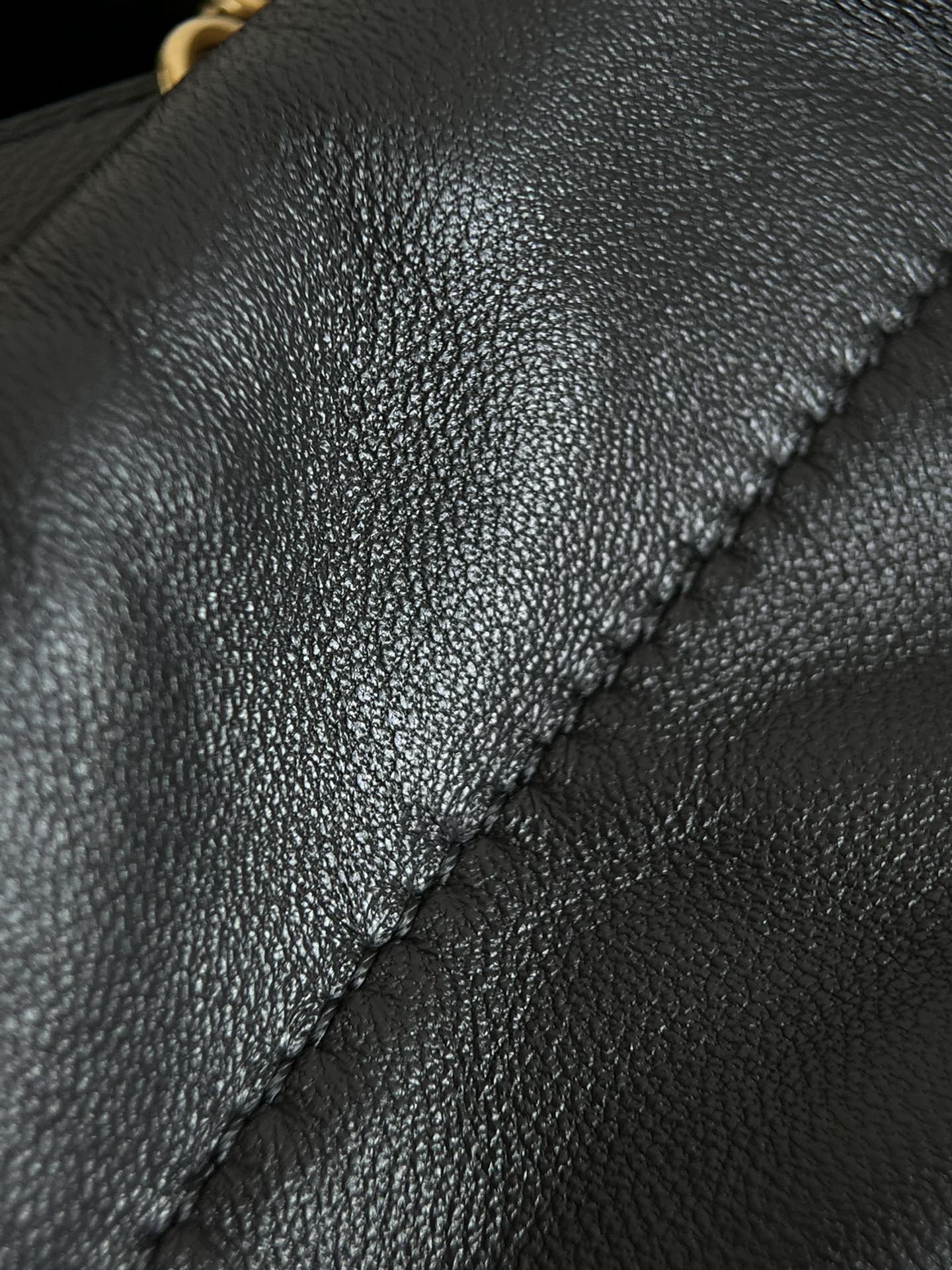 来感受一下羊皮质感!柔软细腻软绵绵的舒适感一上手就感觉出来!进口原版小羊皮覆盖整个包包每一个角落!而且背起来就是软塌塌的 不会有固定的形状!慵懒到极致的风格~