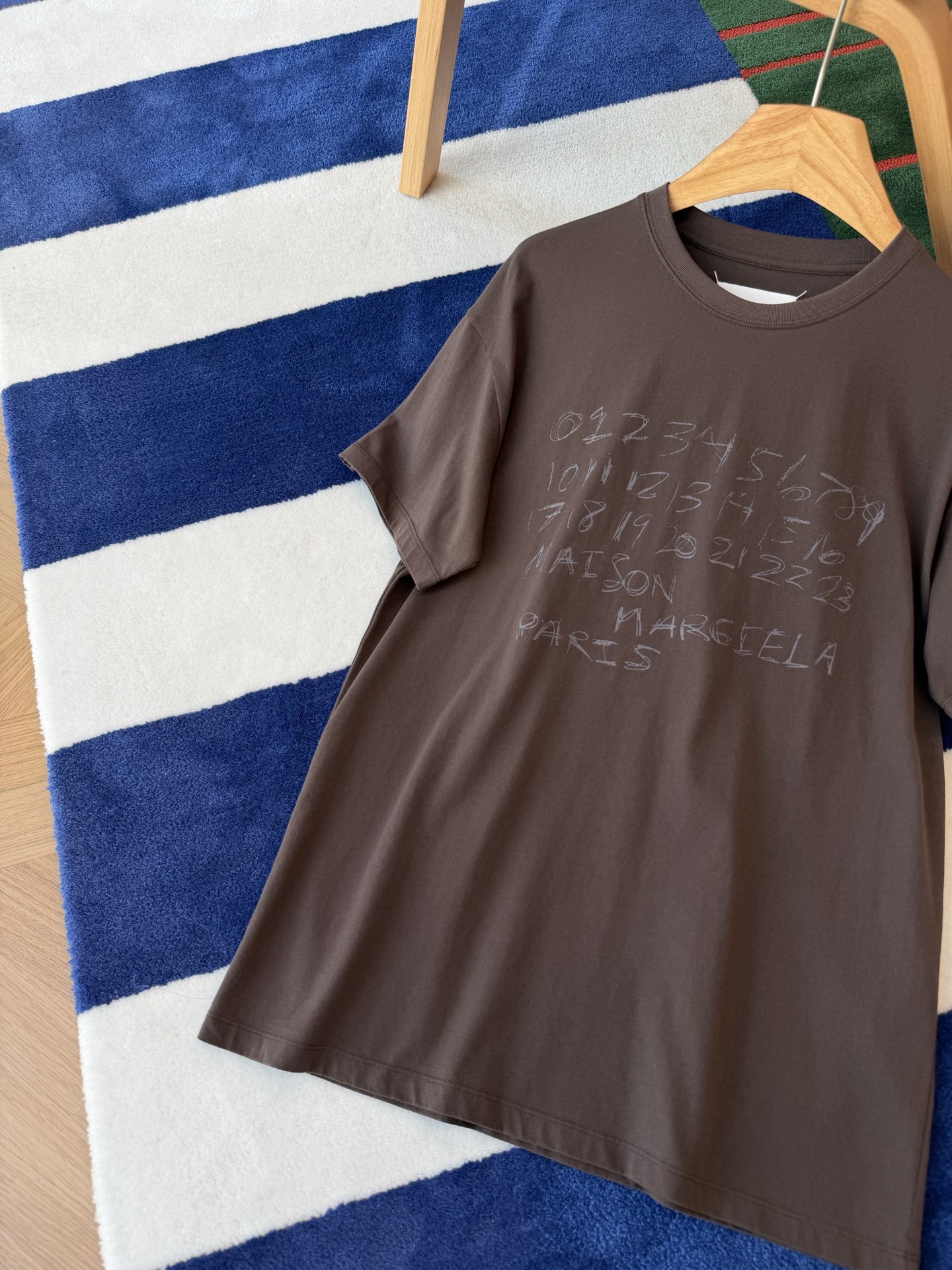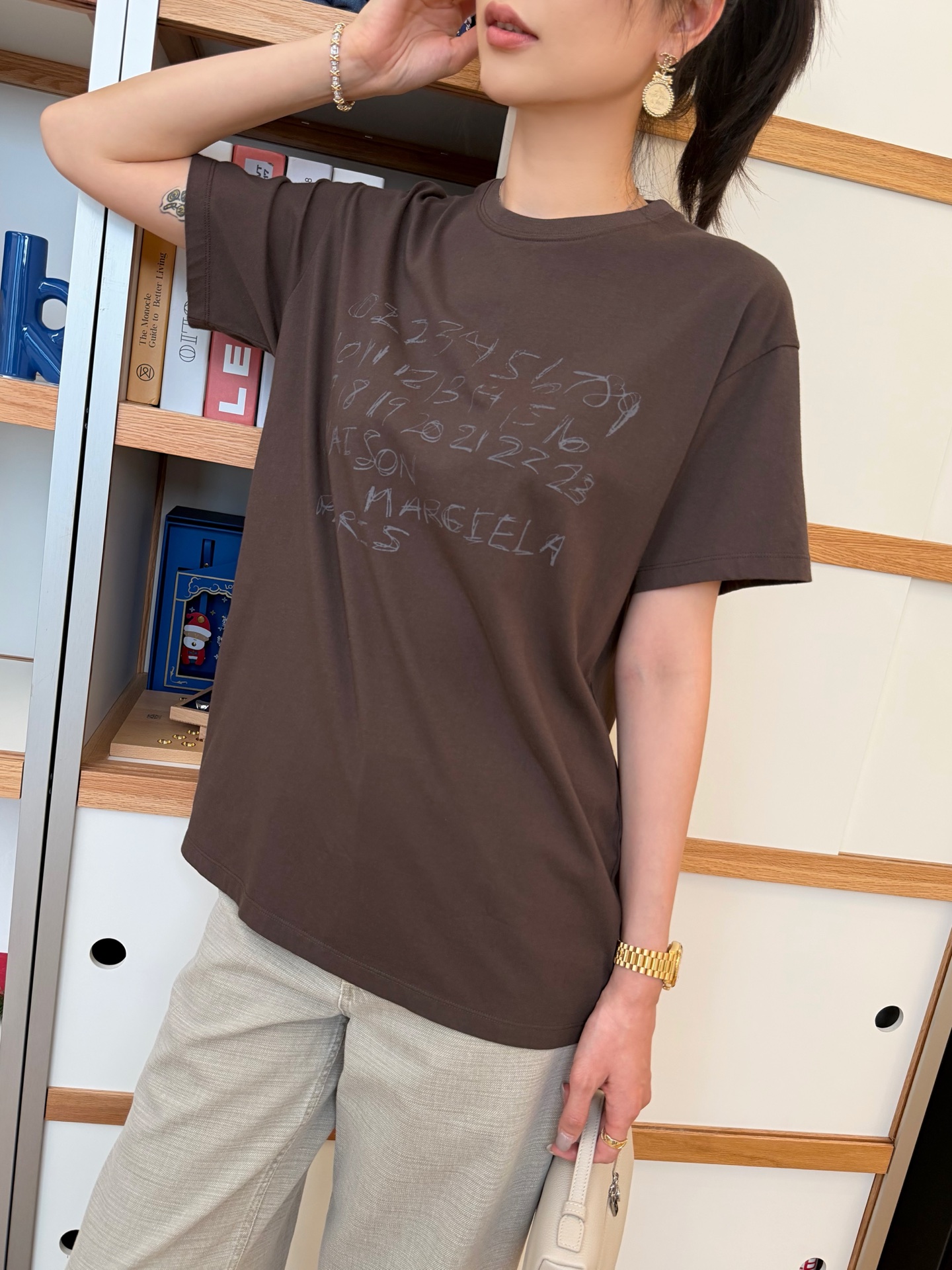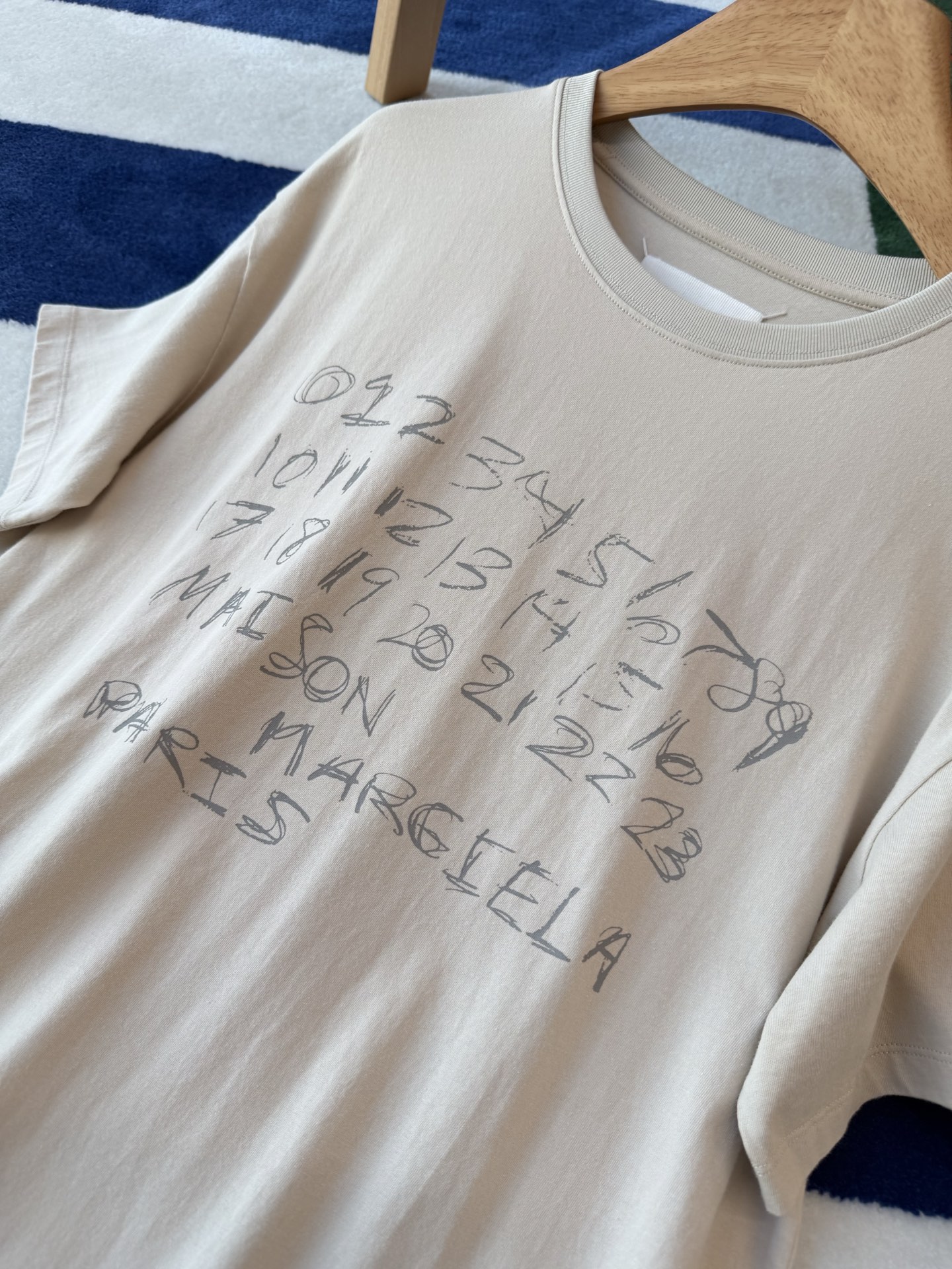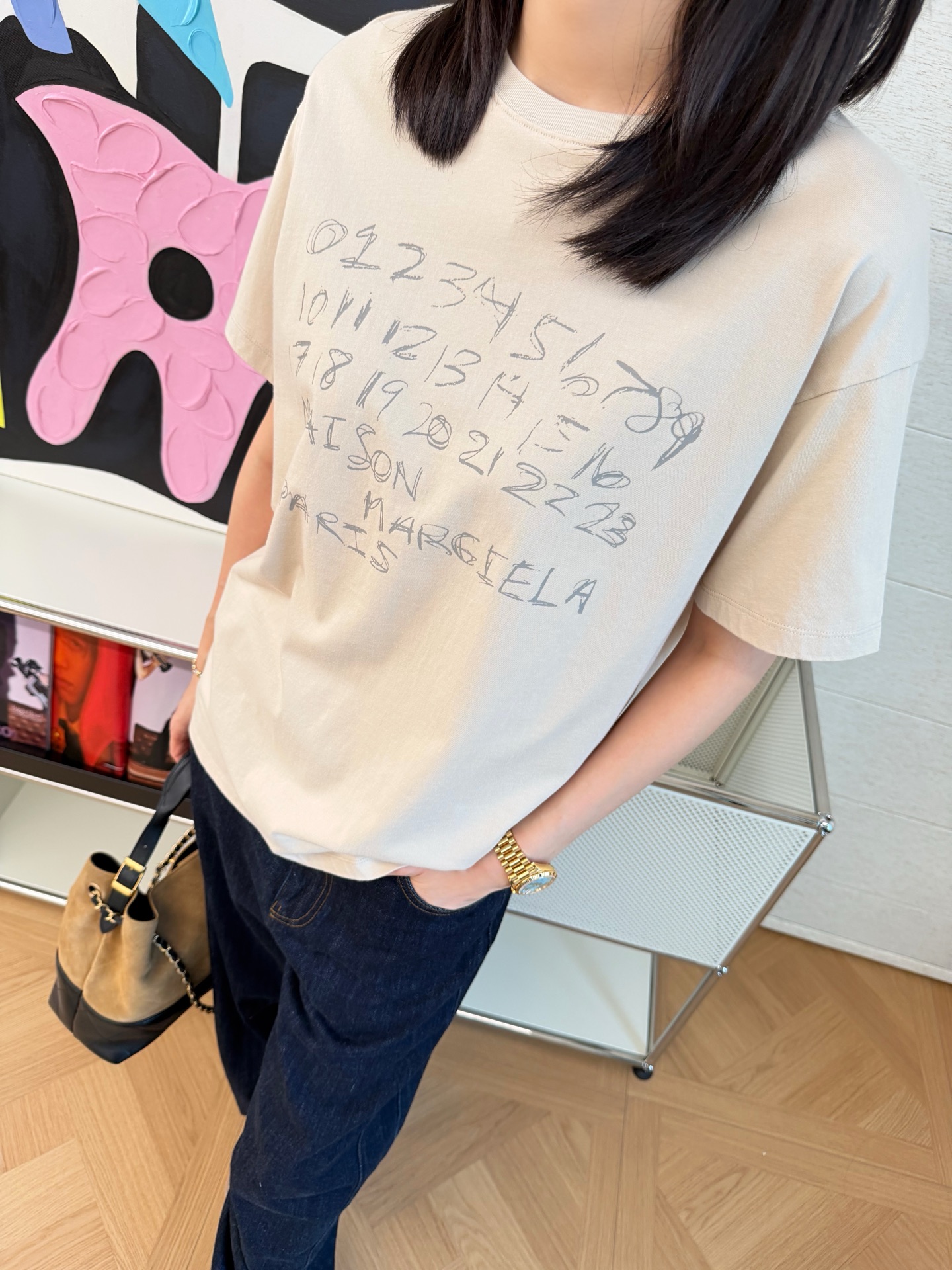 【新款现货发售】新款🆕印花T恤 自然随性的手写效果重新诠释了 maison 的数字标识涂鸦风格的数字与字母组合打破纯色T的单调看似简约的T恤🎶藏着设计师的小心思真的洋气到爆高支棉面料软糯透气,高支棉面料兼具亲肤感与挺括度,宽松版型无束缚感低调中尽显巧思🌠杏/咖两个色码数SML