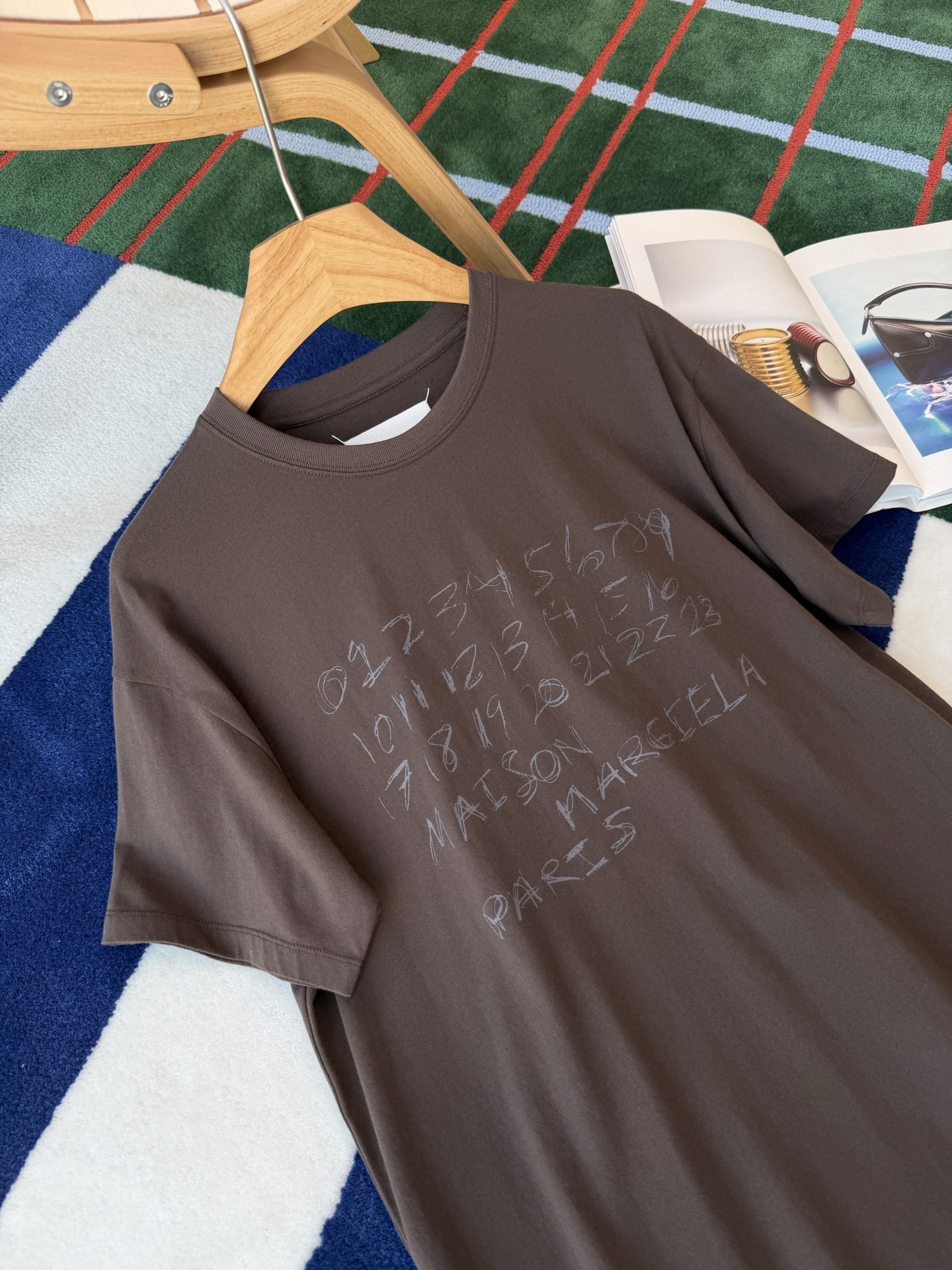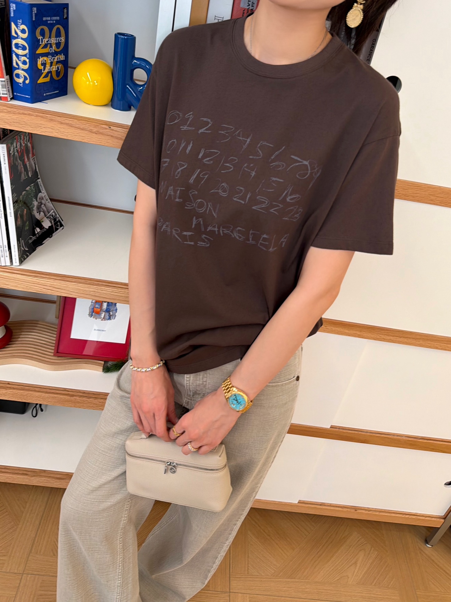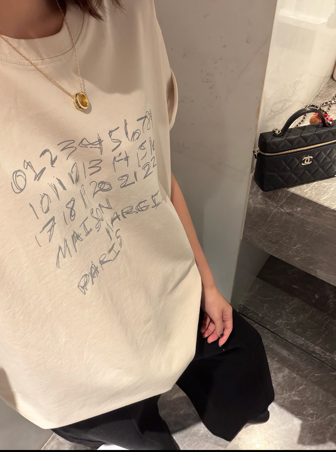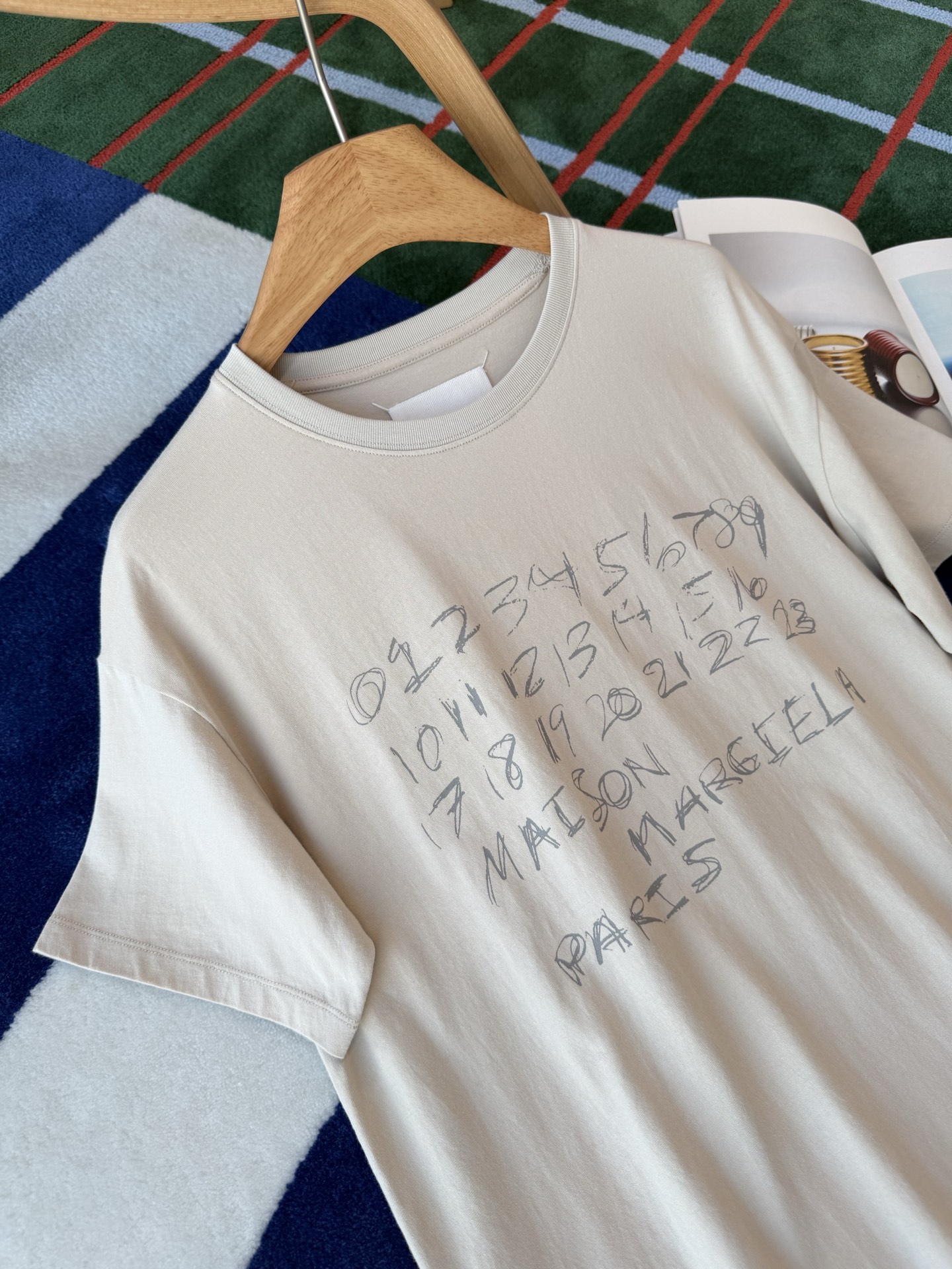 【新款现货发售】新款🆕印花T恤 自然随性的手写效果重新诠释了 maison 的数字标识涂鸦风格的数字与字母组合打破纯色T的单调看似简约的T恤🎶藏着设计师的小心思真的洋气到爆高支棉面料软糯透气,高支棉面料兼具亲肤感与挺括度,宽松版型无束缚感低调中尽显巧思🌠杏/咖两个色码数SML