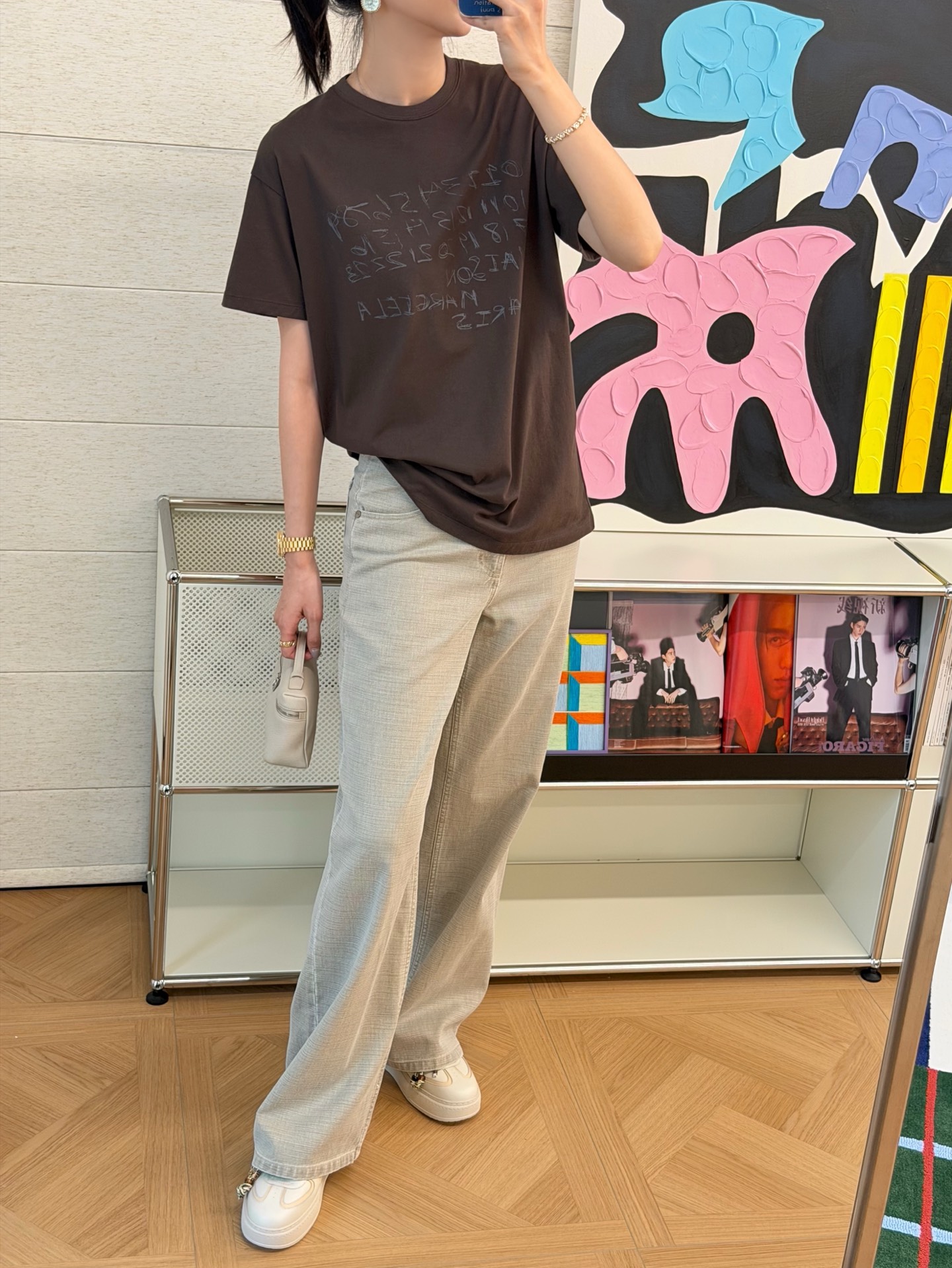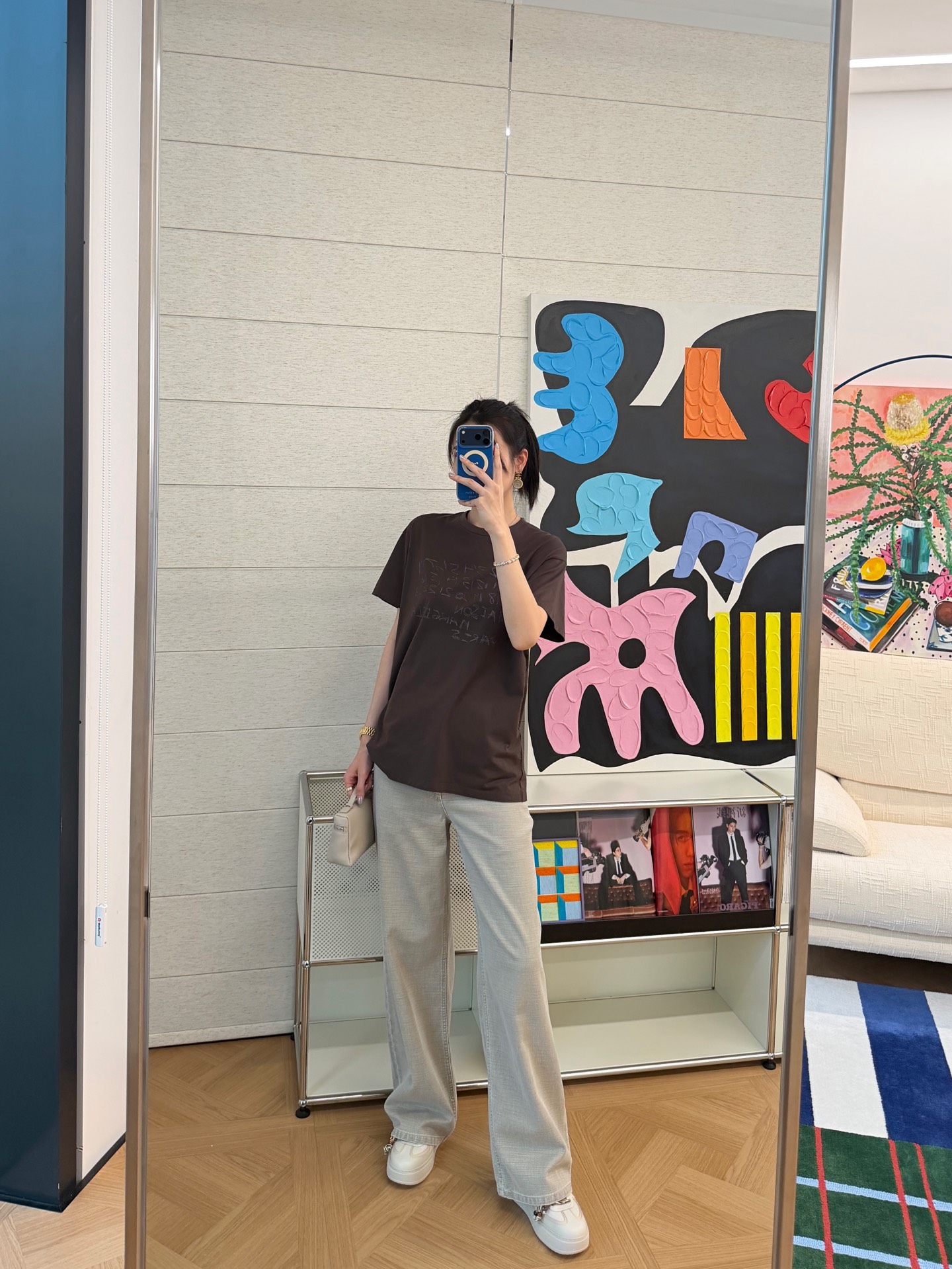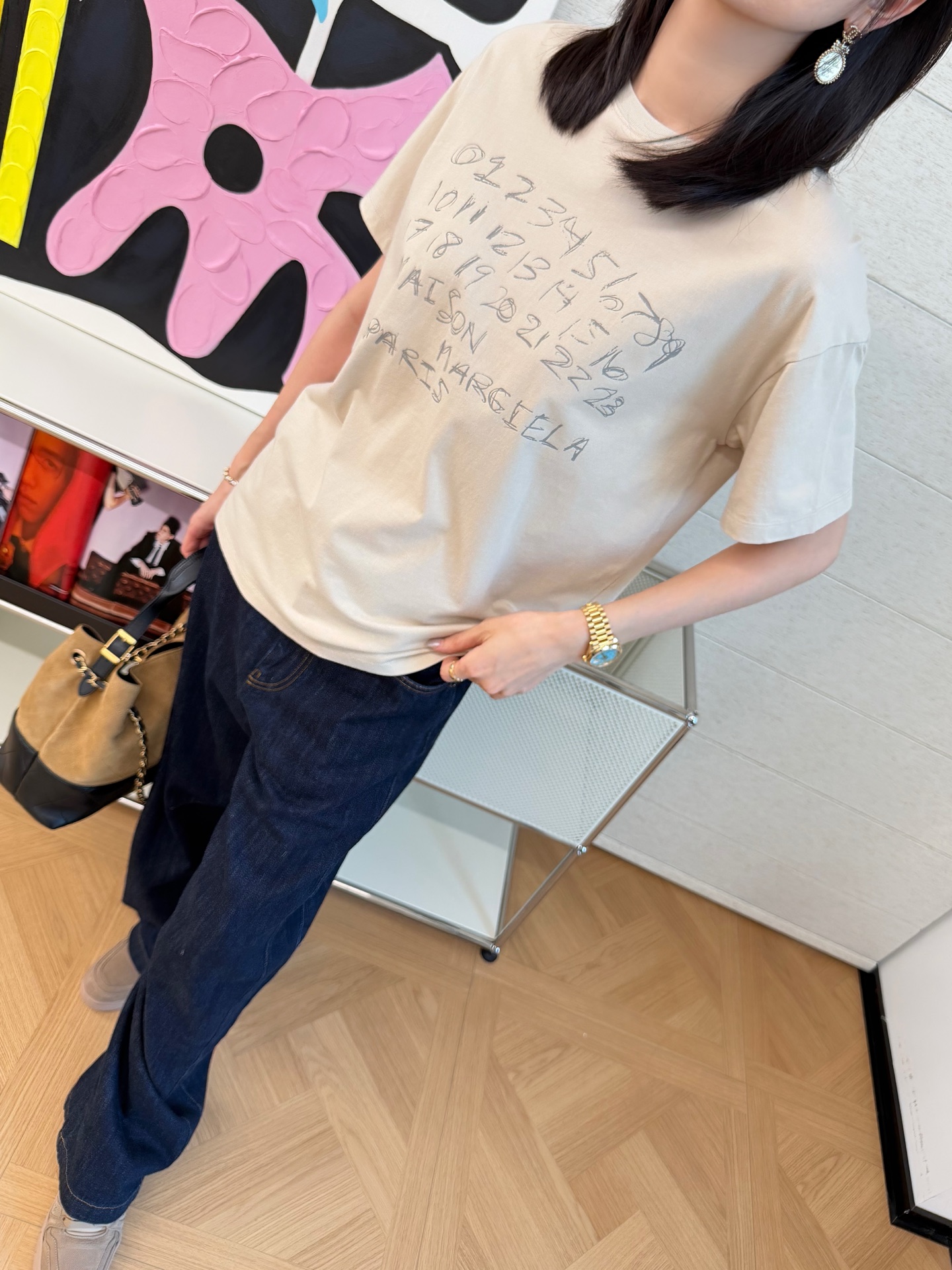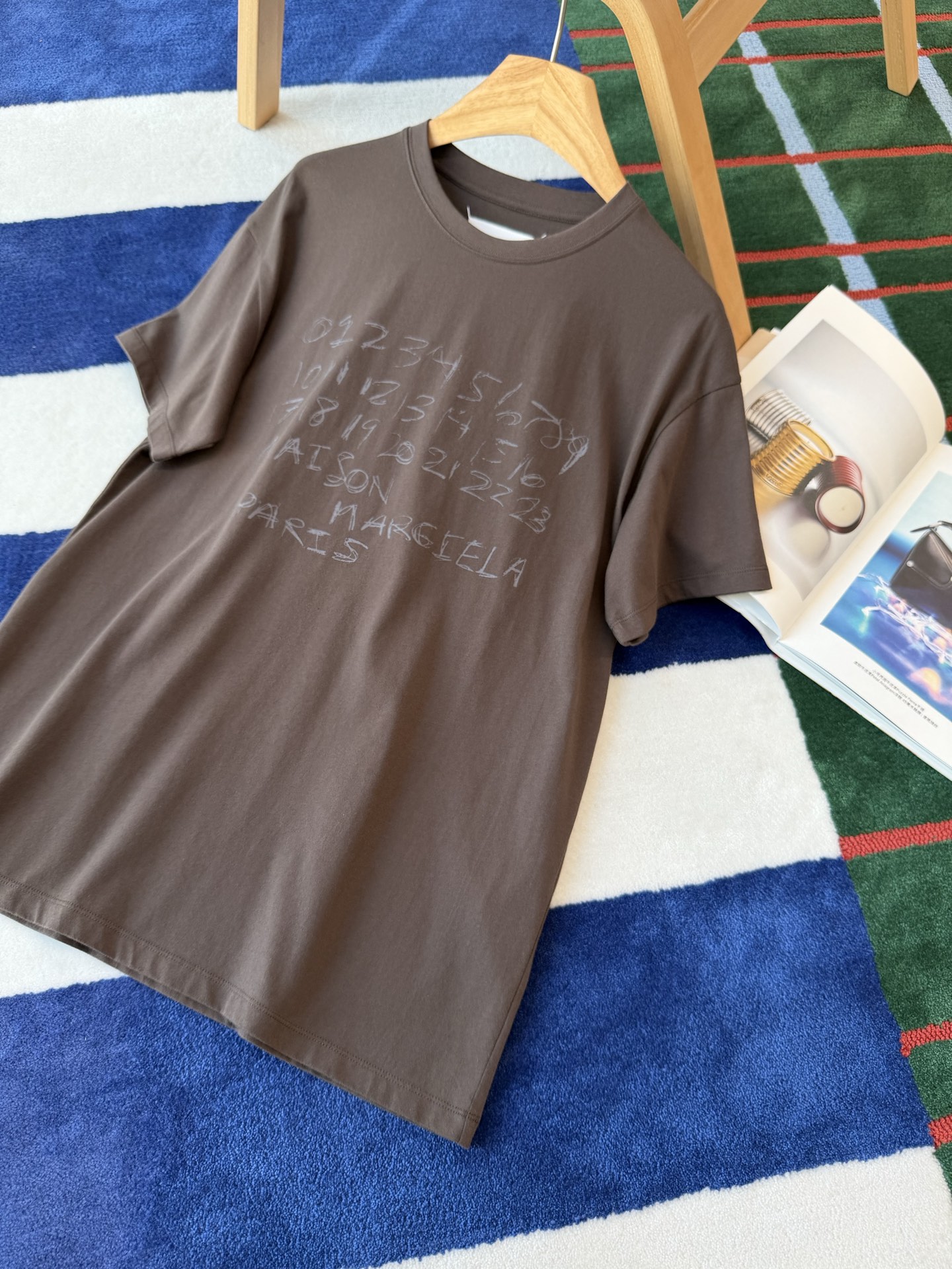 【新款现货发售】新款🆕印花T恤 自然随性的手写效果重新诠释了 maison 的数字标识涂鸦风格的数字与字母组合打破纯色T的单调看似简约的T恤🎶藏着设计师的小心思真的洋气到爆高支棉面料软糯透气,高支棉面料兼具亲肤感与挺括度,宽松版型无束缚感低调中尽显巧思🌠杏/咖两个色码数SML