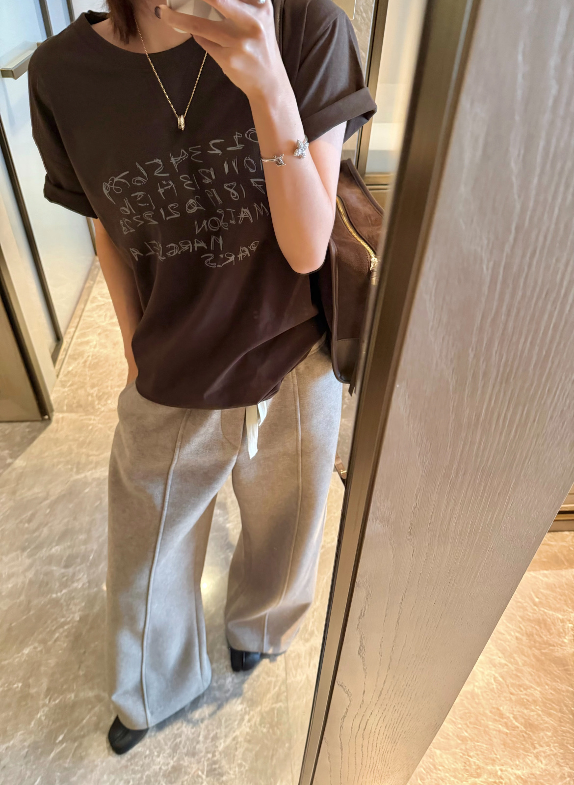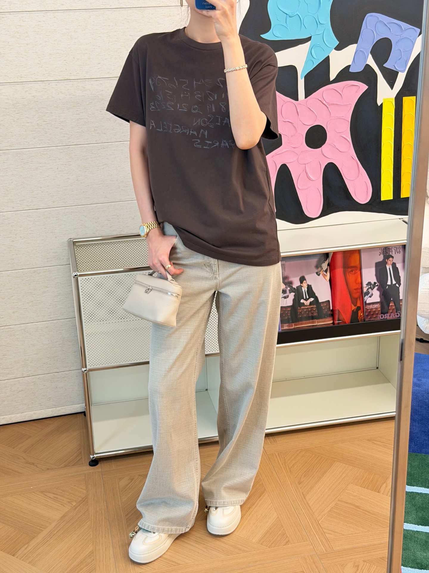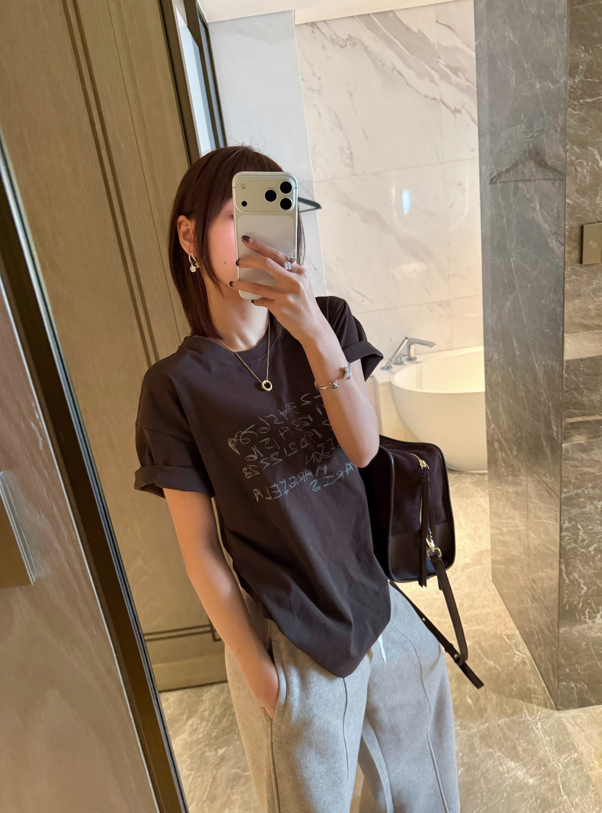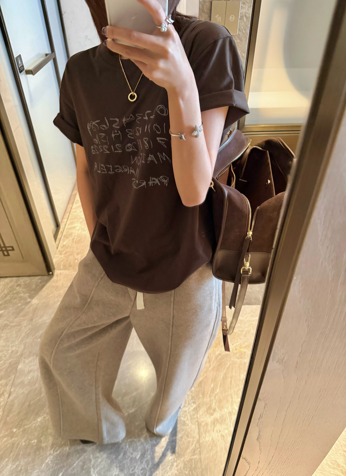 【新款现货发售】新款🆕印花T恤 自然随性的手写效果重新诠释了 maison 的数字标识涂鸦风格的数字与字母组合打破纯色T的单调看似简约的T恤🎶藏着设计师的小心思真的洋气到爆高支棉面料软糯透气,高支棉面料兼具亲肤感与挺括度,宽松版型无束缚感低调中尽显巧思🌠杏/咖两个色码数SML