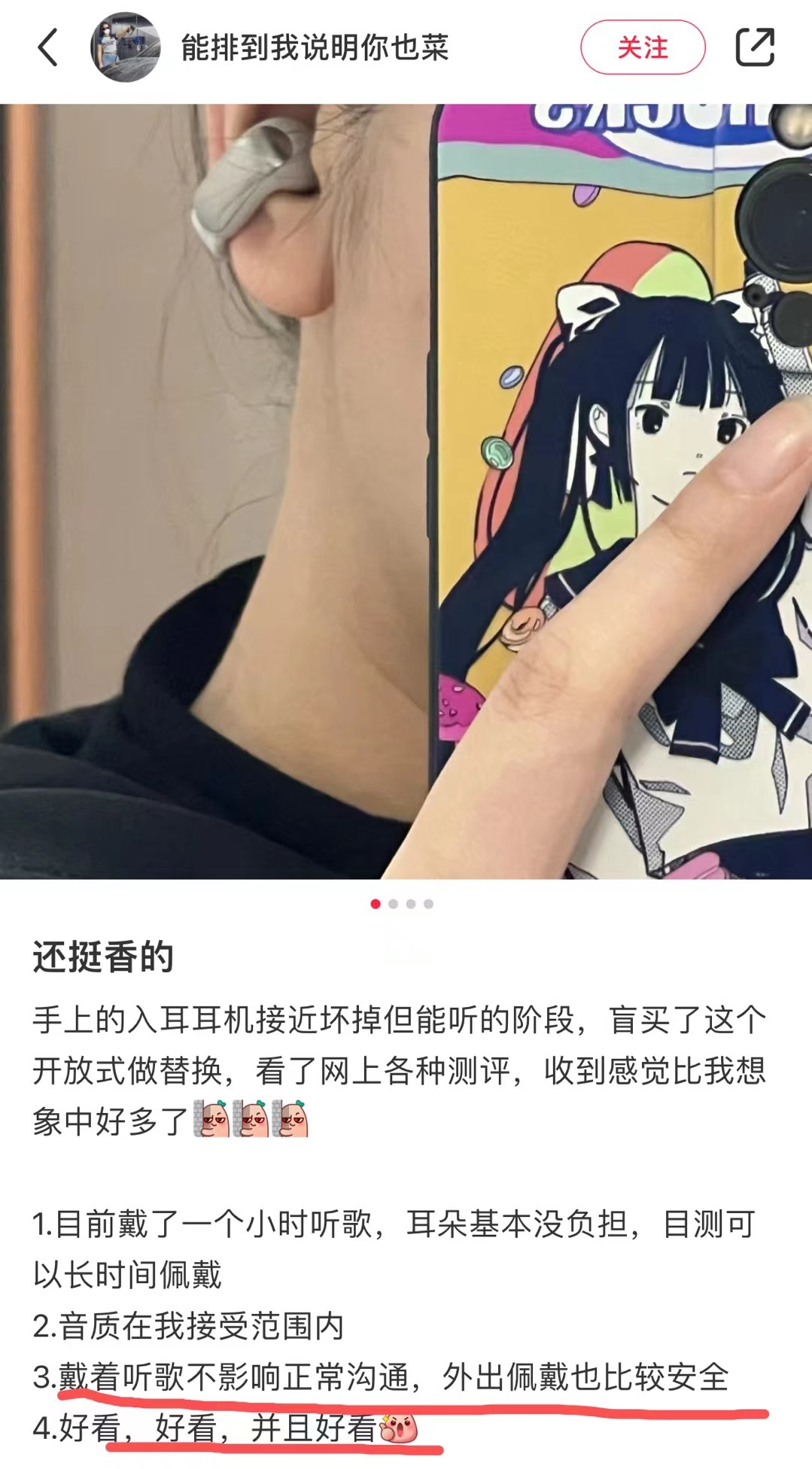 1⃣️它不仅不挑耳形,超轻且更符合人性化的设计,可以长久佩戴不易累的设计,对肉肉耳也无敌友好!!!