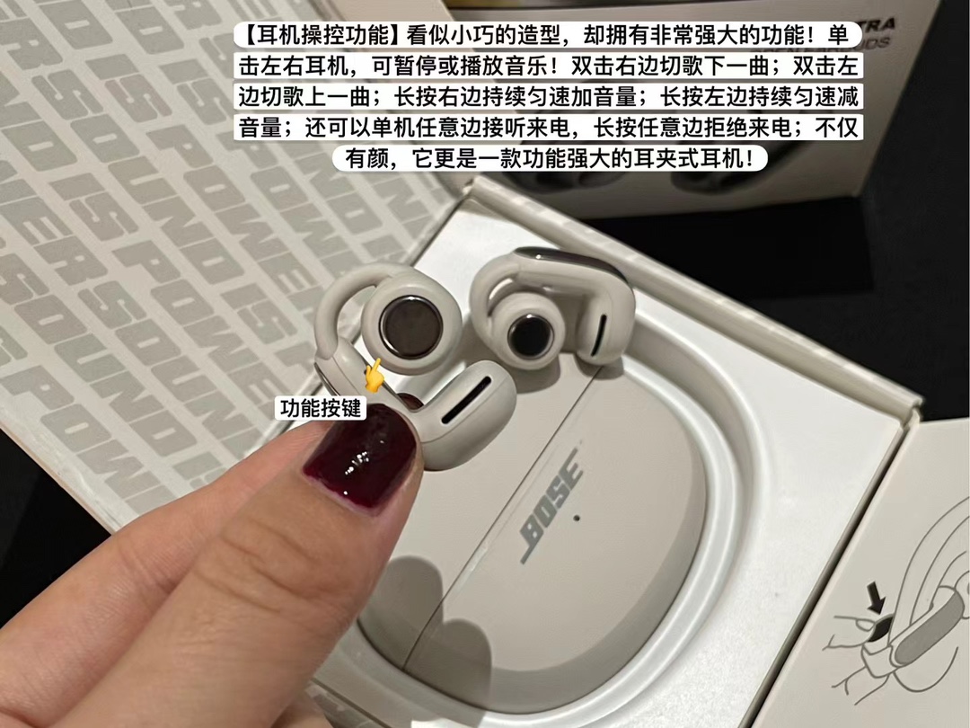 看是那句老话,我们不仅要戴,更要花最少的钱,戴的大大方方!!!无论自留还是送人,它,会是你过几年都会心心念念的白月光科技改变生活方式!是耳机?还是耳饰?史上最完美的一款运动挂耳蓝牙耳机,没有之一!Bose ultra开放式无线蓝牙耳机,不只是耳机,更是可以“一心二用”的沟通神器